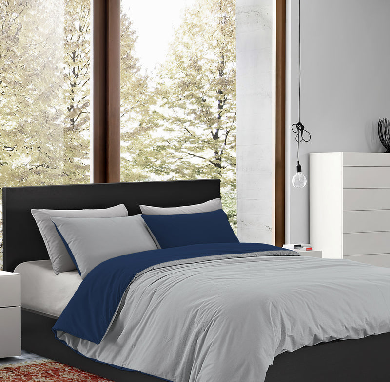 Parure Copripiumino in Flanella Felpato Bicolore Sacco e Federe Double Face 100% Cotone