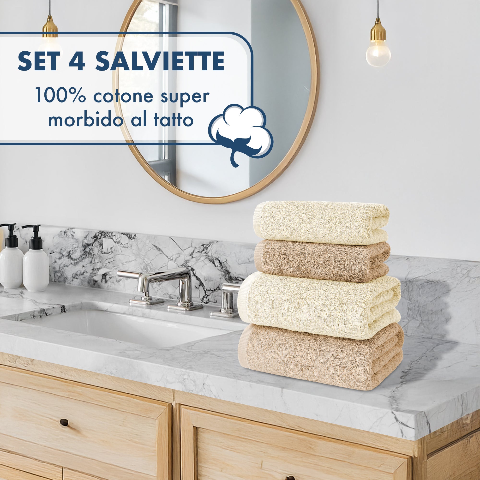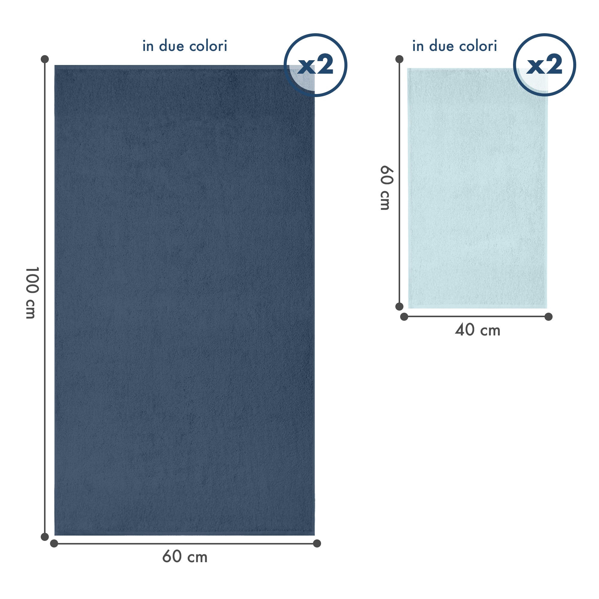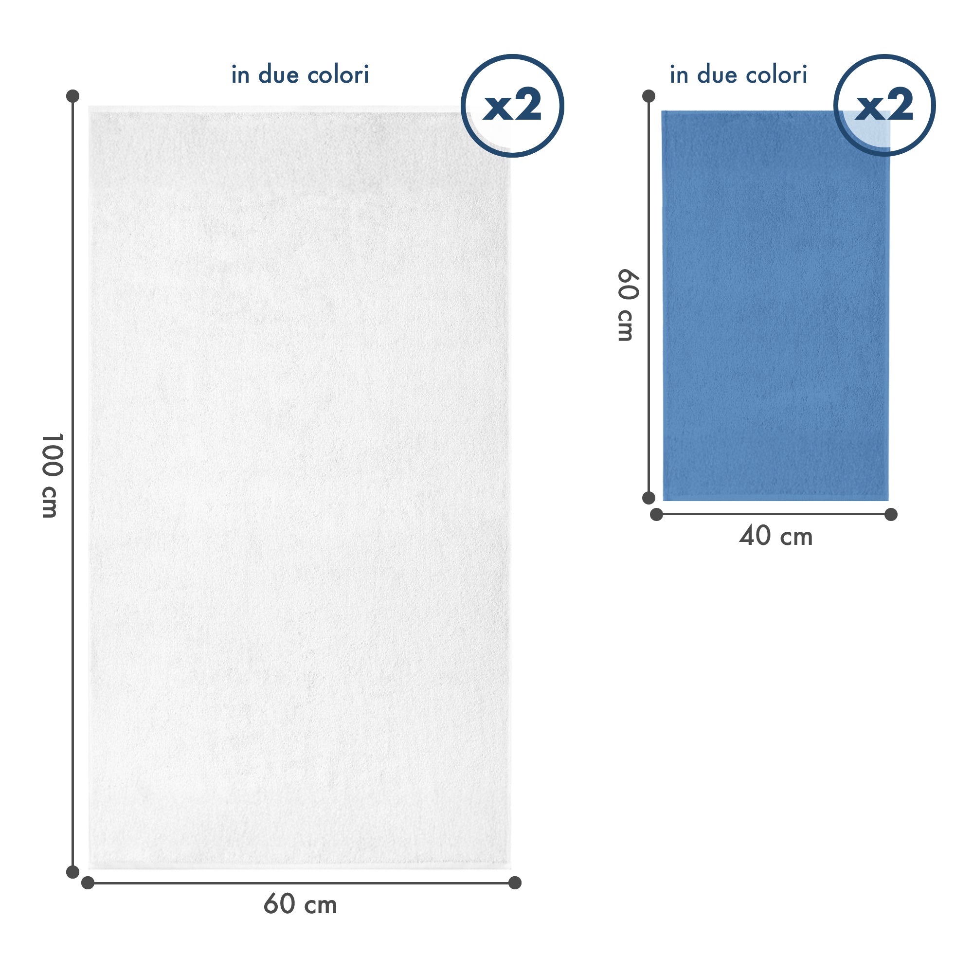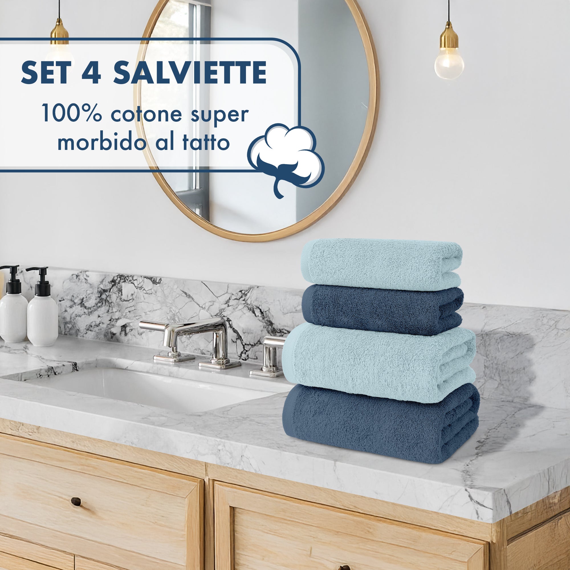 Asciugamani Bagno 100% Spugna Puro Cotone 500 Gr 4 Pezzi 2 Salvietta Viso 2 Asciugamano Ospite Mani Qualità Certificato Oeko-Tex Salviette Super Morbide Bicolore