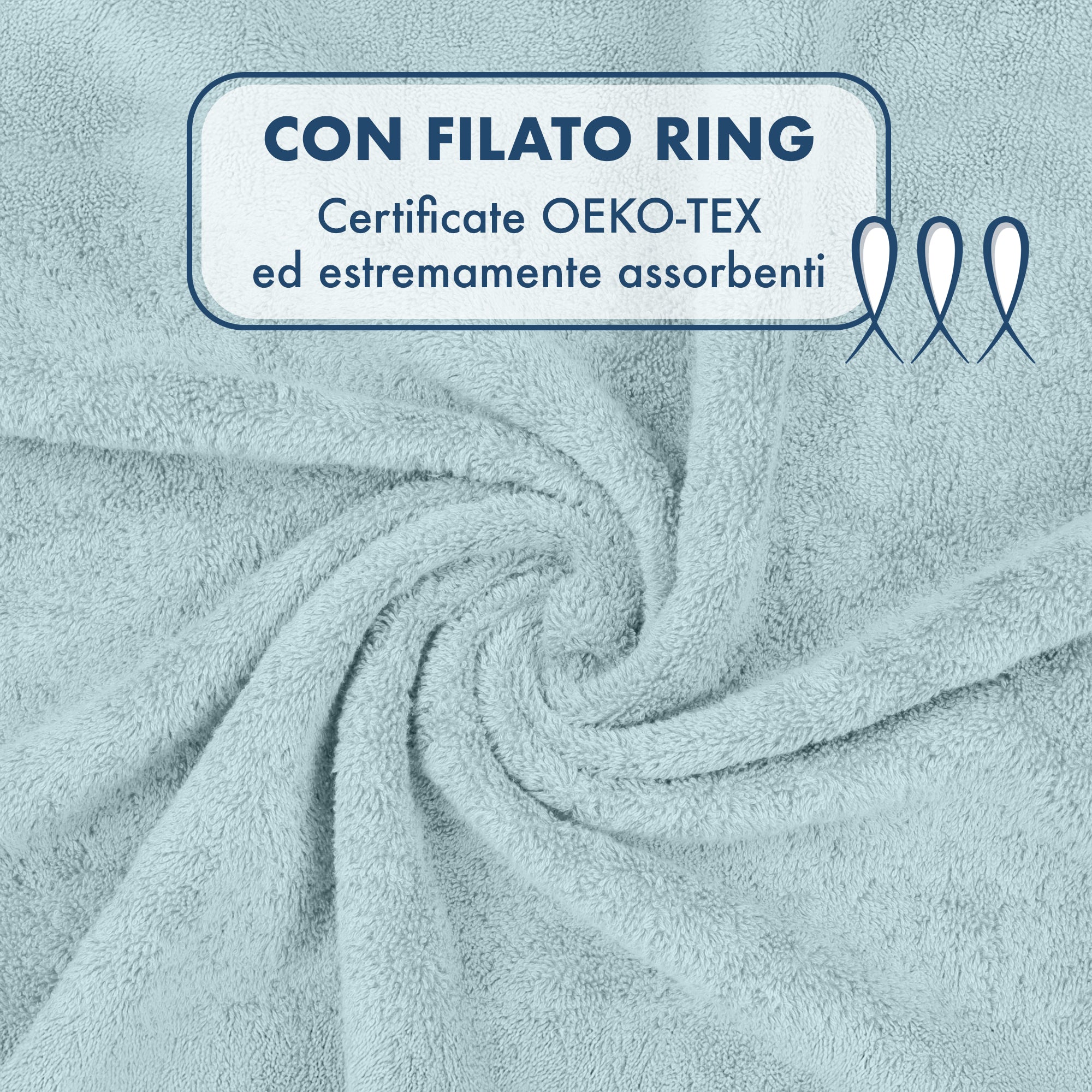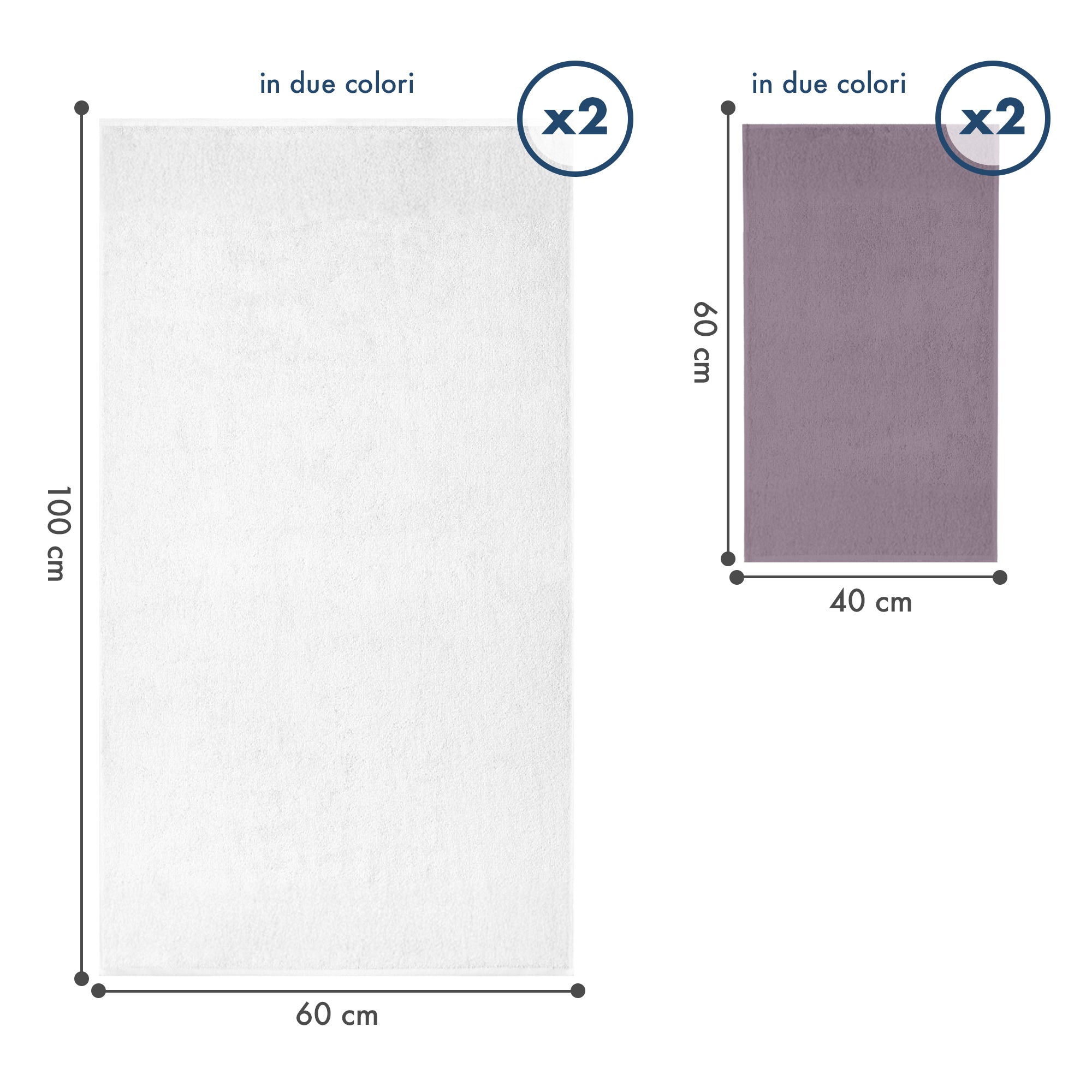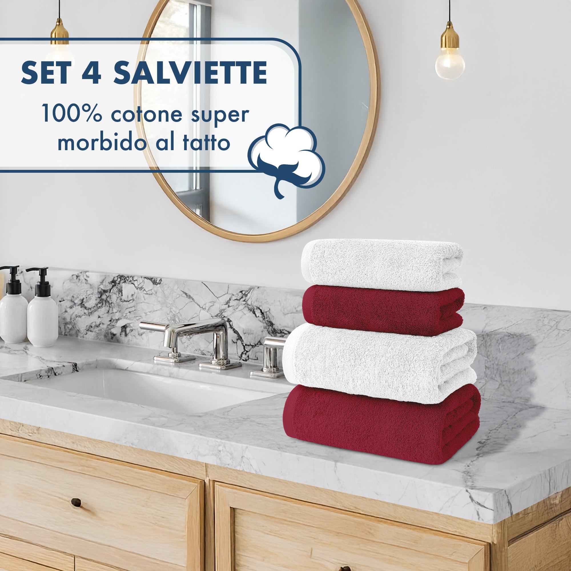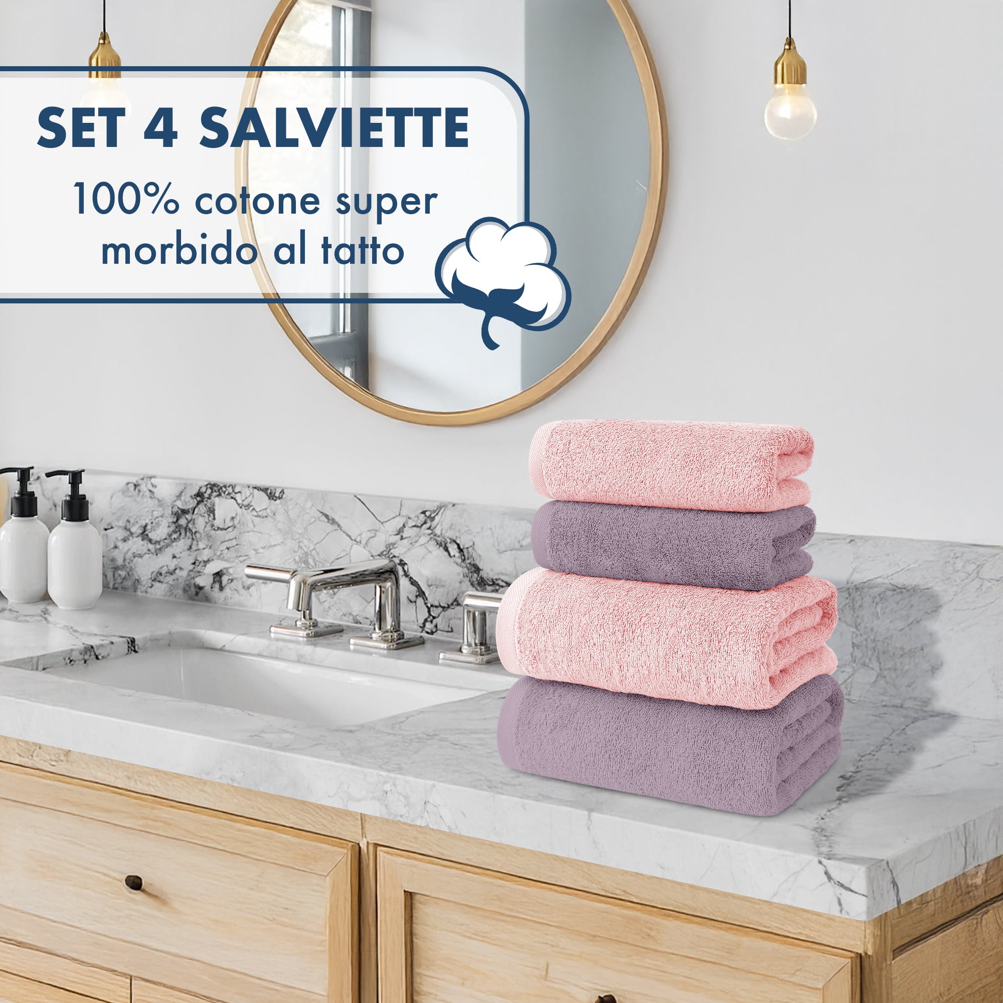 Asciugamani Bagno 100% Spugna Puro Cotone 500 Gr 4 Pezzi 2 Salvietta Viso 2 Asciugamano Ospite Mani Qualità Certificato Oeko-Tex Salviette Super Morbide Bicolore