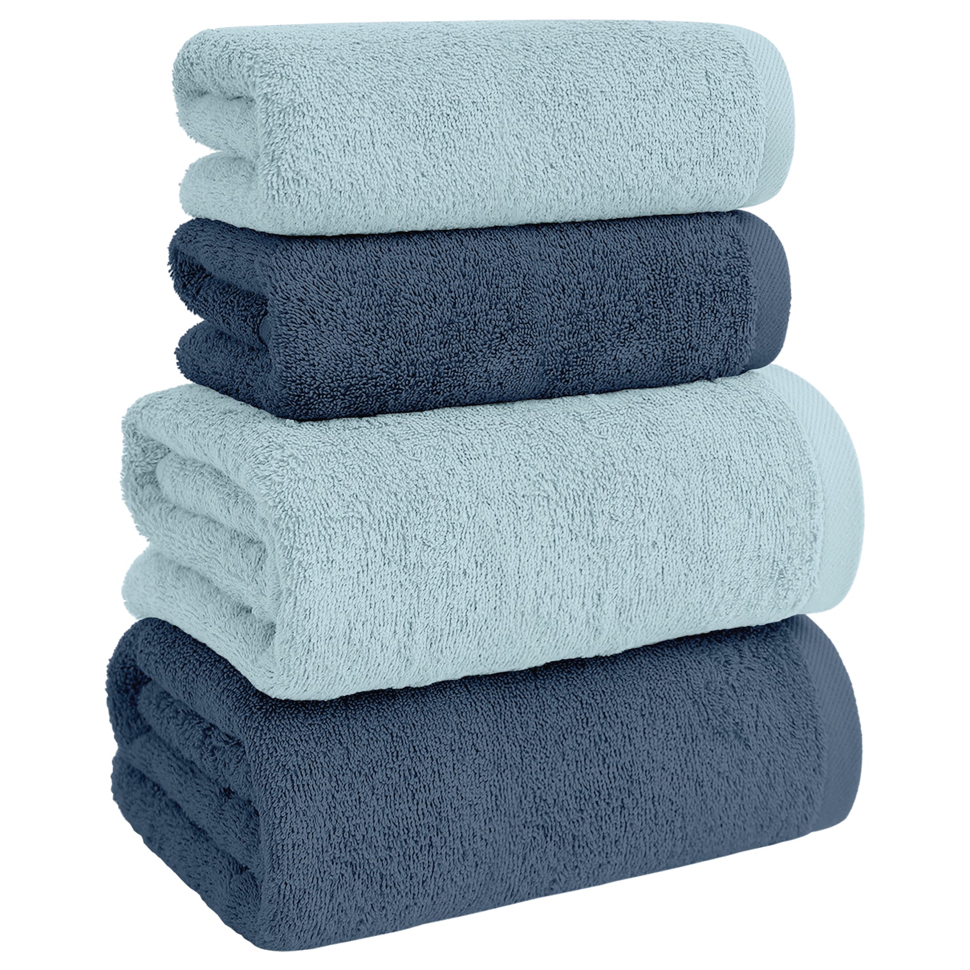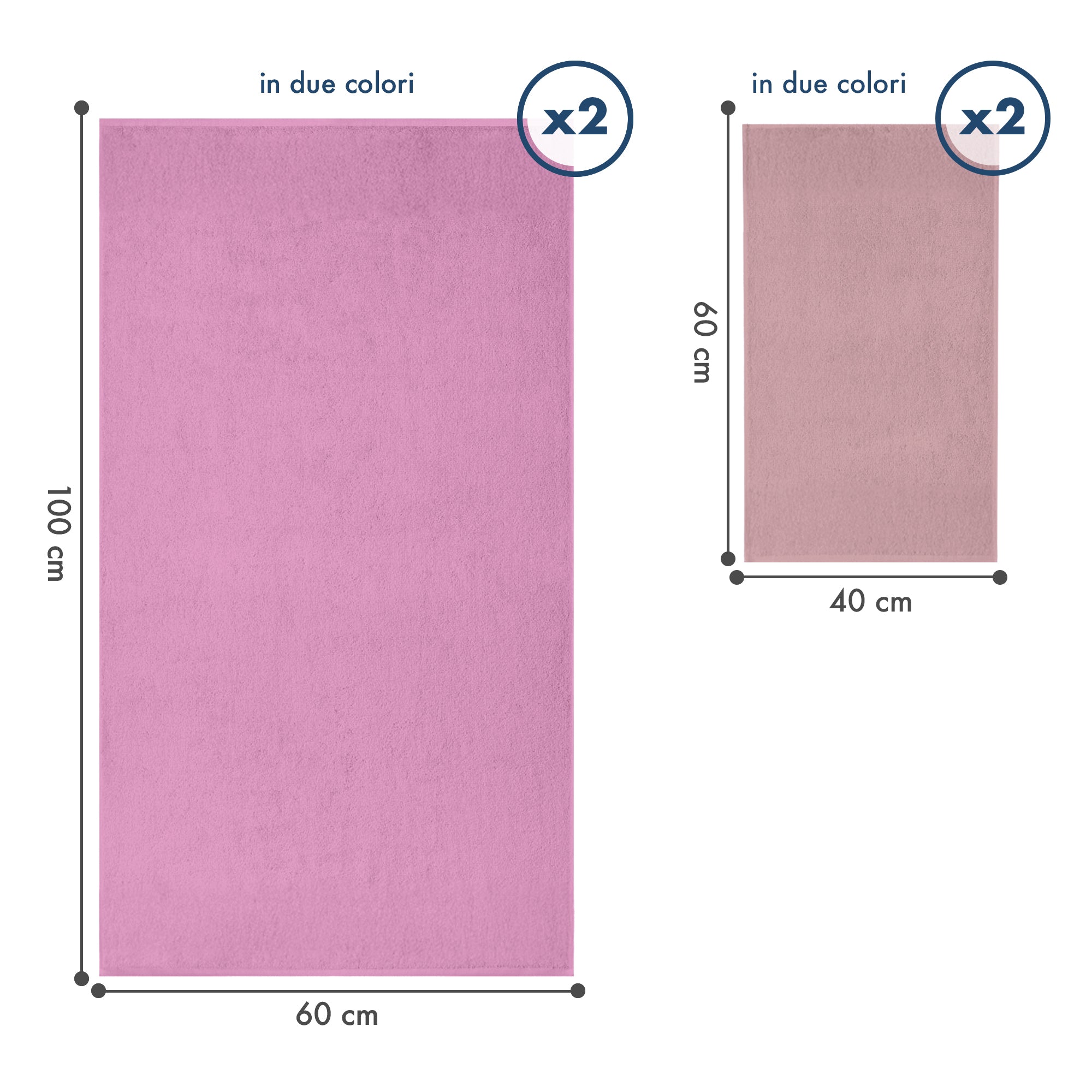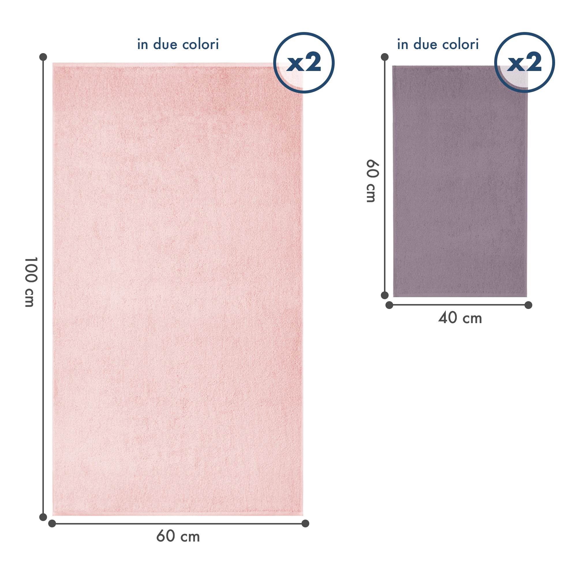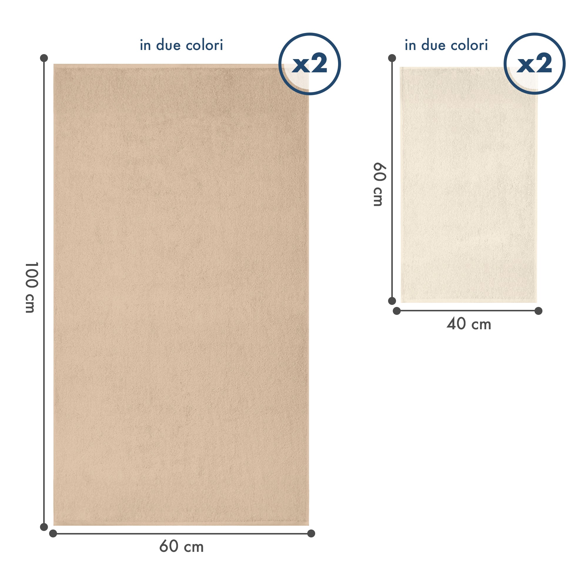 Asciugamani Bagno 100% Spugna Puro Cotone 500 Gr 4 Pezzi 2 Salvietta Viso 2 Asciugamano Ospite Mani Qualità Certificato Oeko-Tex Salviette Super Morbide Bicolore