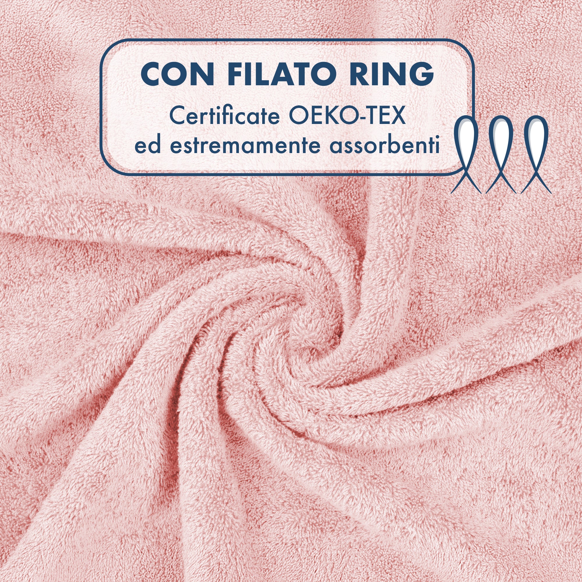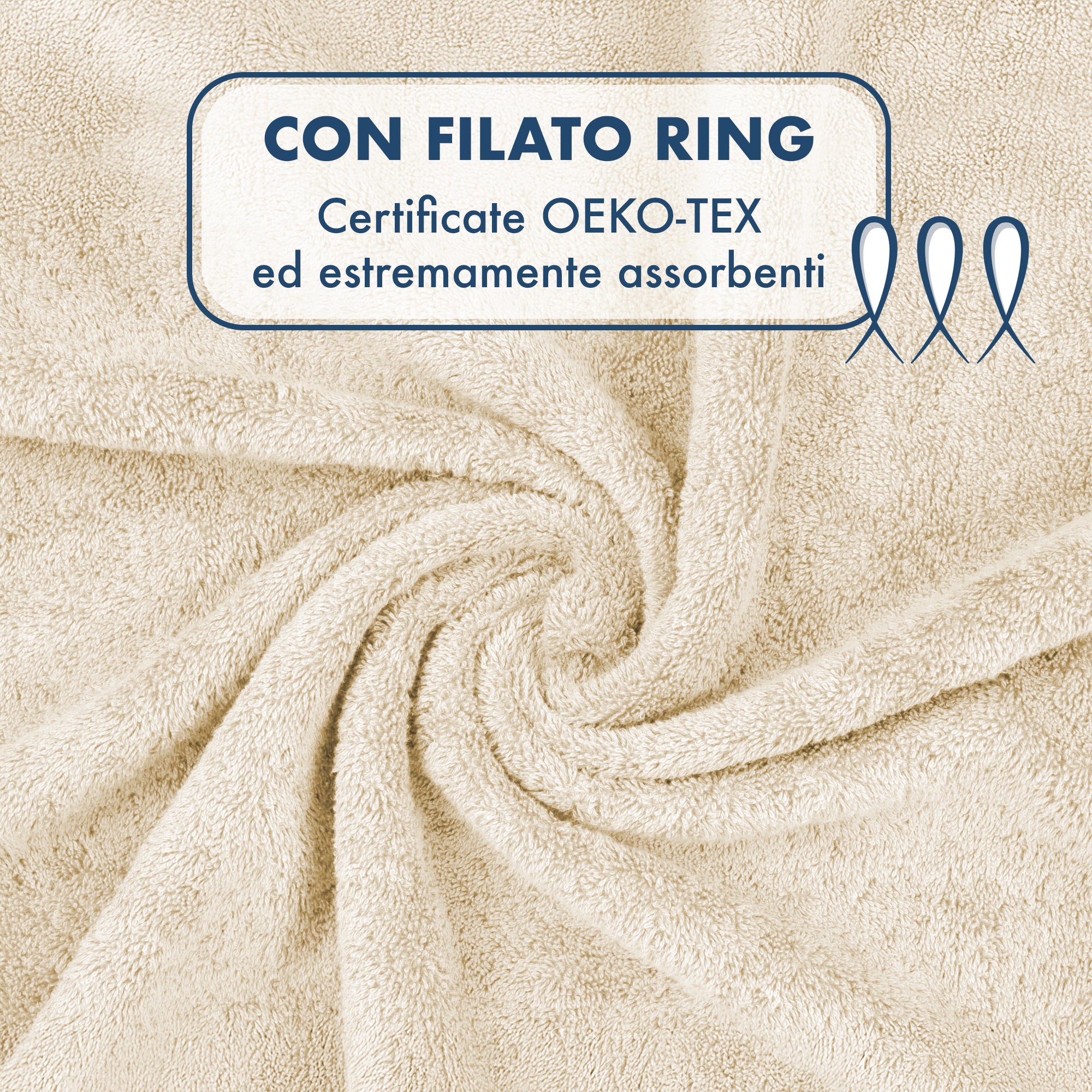 ✔️Ogni asciugamano è prodotto con filato ring, una lavorazione speciale che permette di ottenere una spugna super morbida al tatto, senza rinunciare alla durabilità. Questa lavorazione rende i prodotti piacevoli da toccare e molto resistenti, mantenendo le loro caratteristiche anche dopo numerosi lavaggi in lavatrice,La cura nei dettagli si traduce in un prodotto di alta qualità, pensato per offrire massimo comfort e praticità.