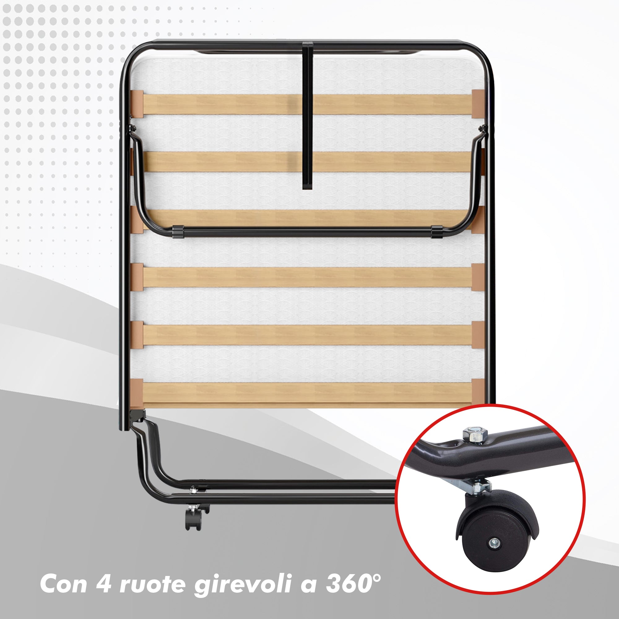 ✔️CARATTERISTICHE TECNICHE: Prodotto 100% Made in Italy ,Telaio pieghevole in acciaio verniciato con polveri epossidiche atossiche,Rete da 15 doghe in legno multistrato pressato a caldo,2 gambe pieghevoli per ridurre l'ingombro con piedi d'appoggio antiscivolo, 4 ruote sulle gambe centrali per agevolare gli spostamenti,