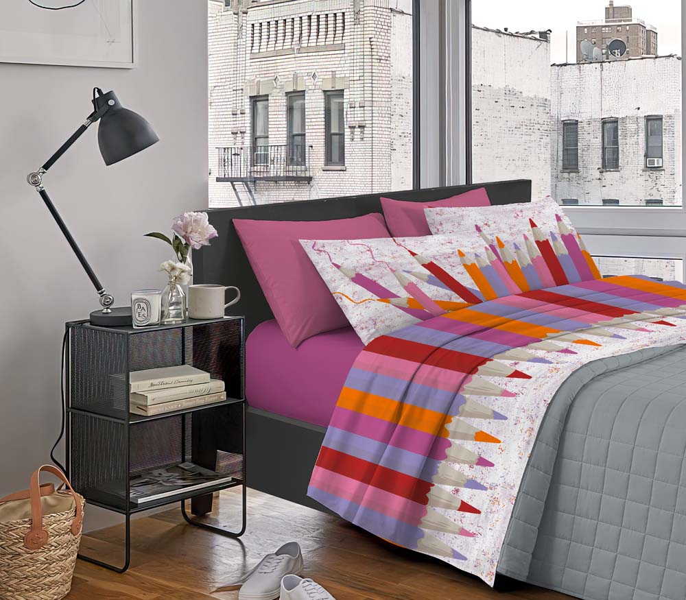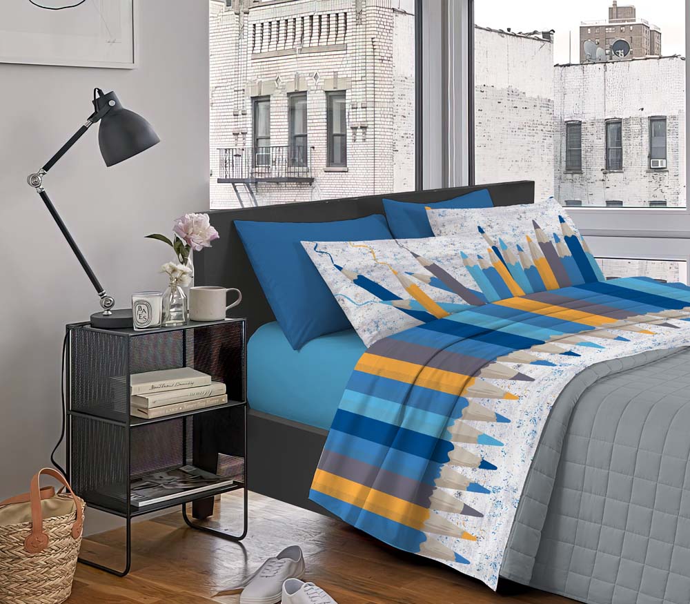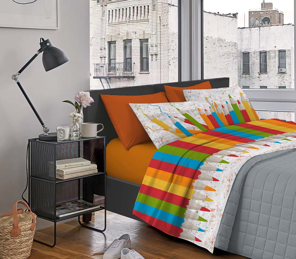 Completo Letto Stampato Made In Italy 100 % Cotone Set Lenzuolo Sopra Sotto Federe