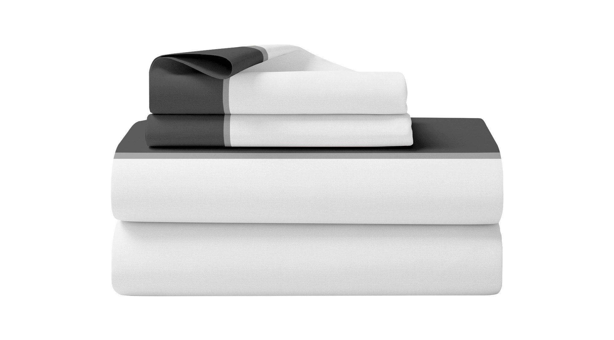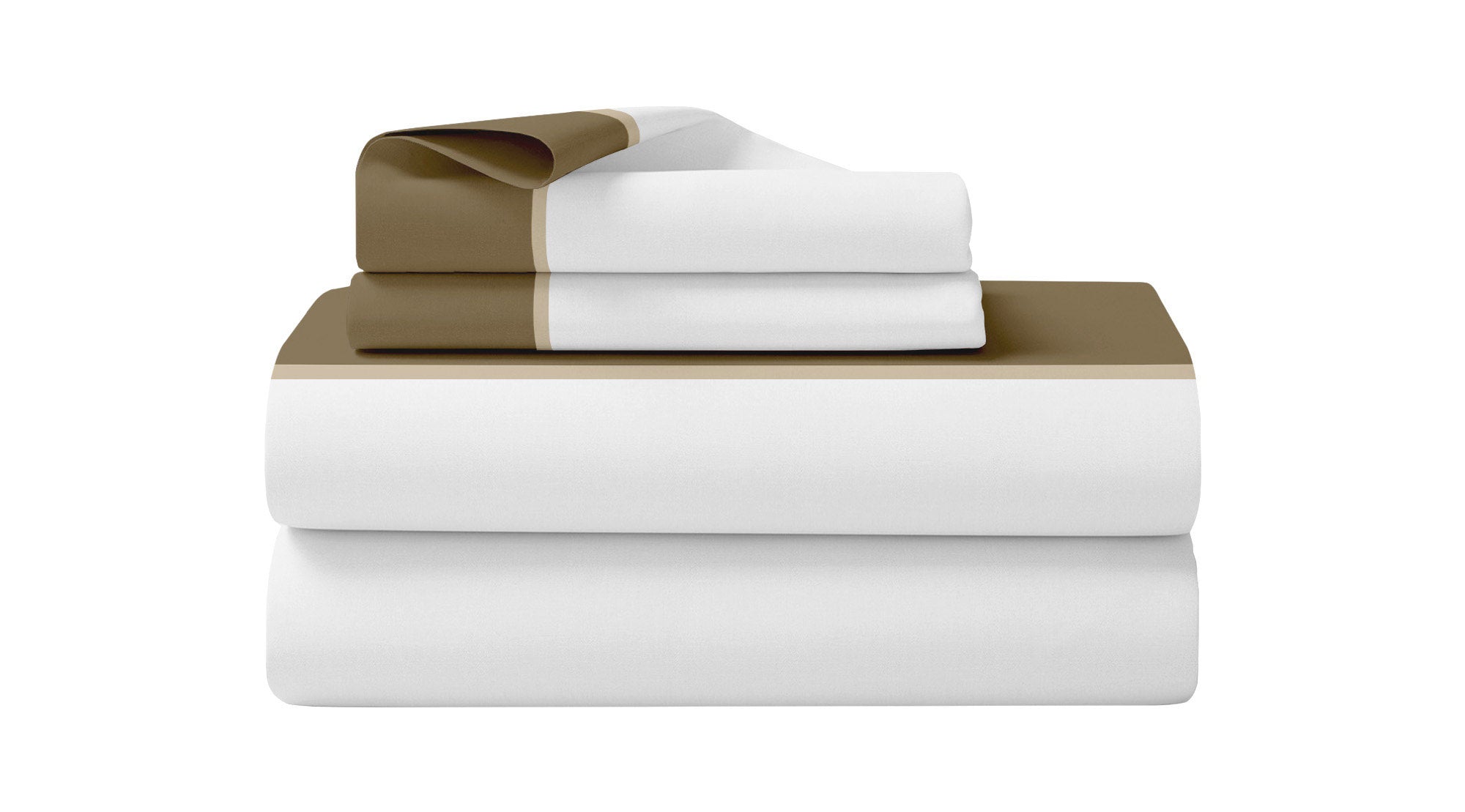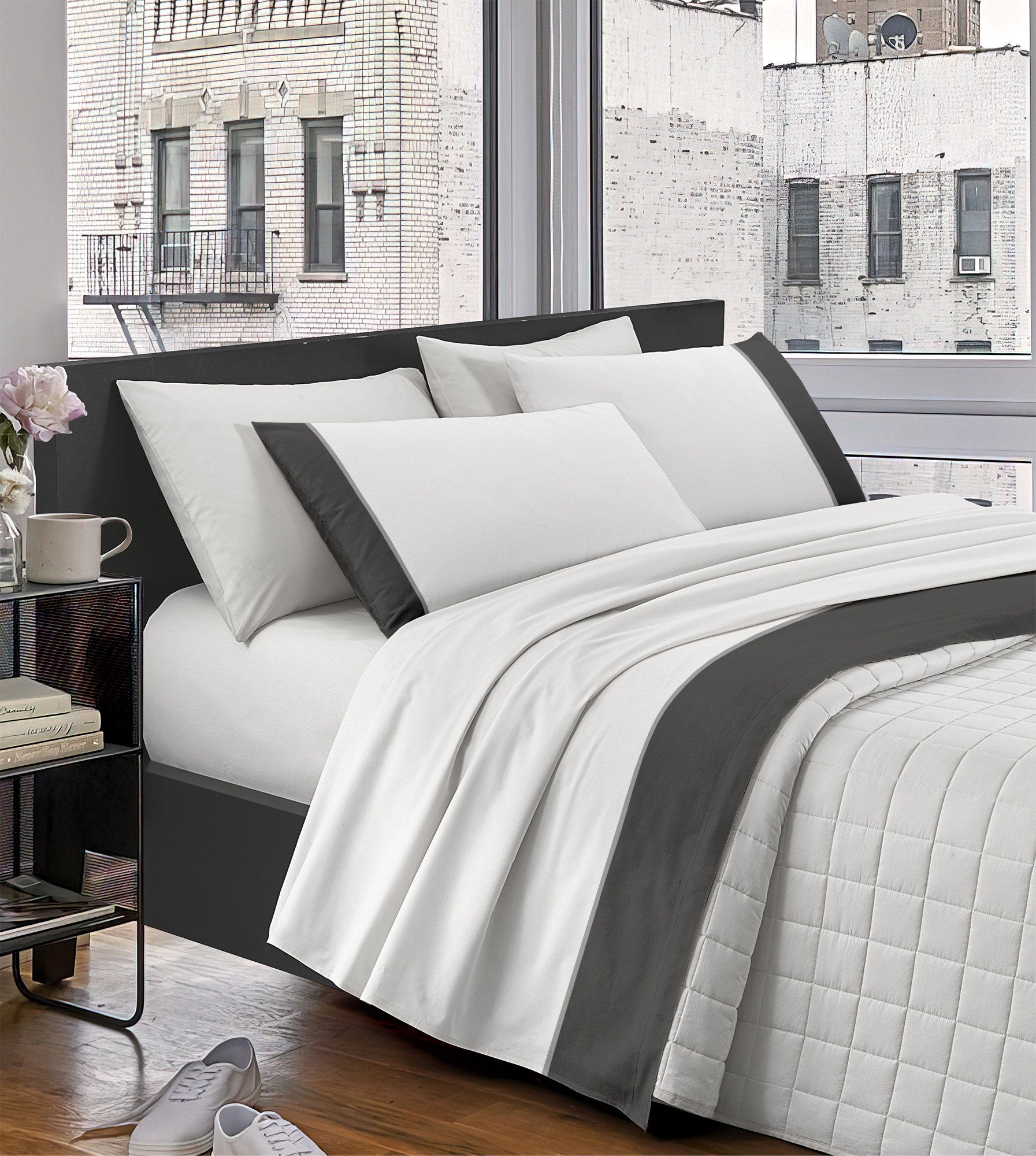 Completo Letto Lenzuola In Cotone Percalle Matrimoniale Federe Con Balza A Contrasto Tinta Unita Elegante Misure Maxi