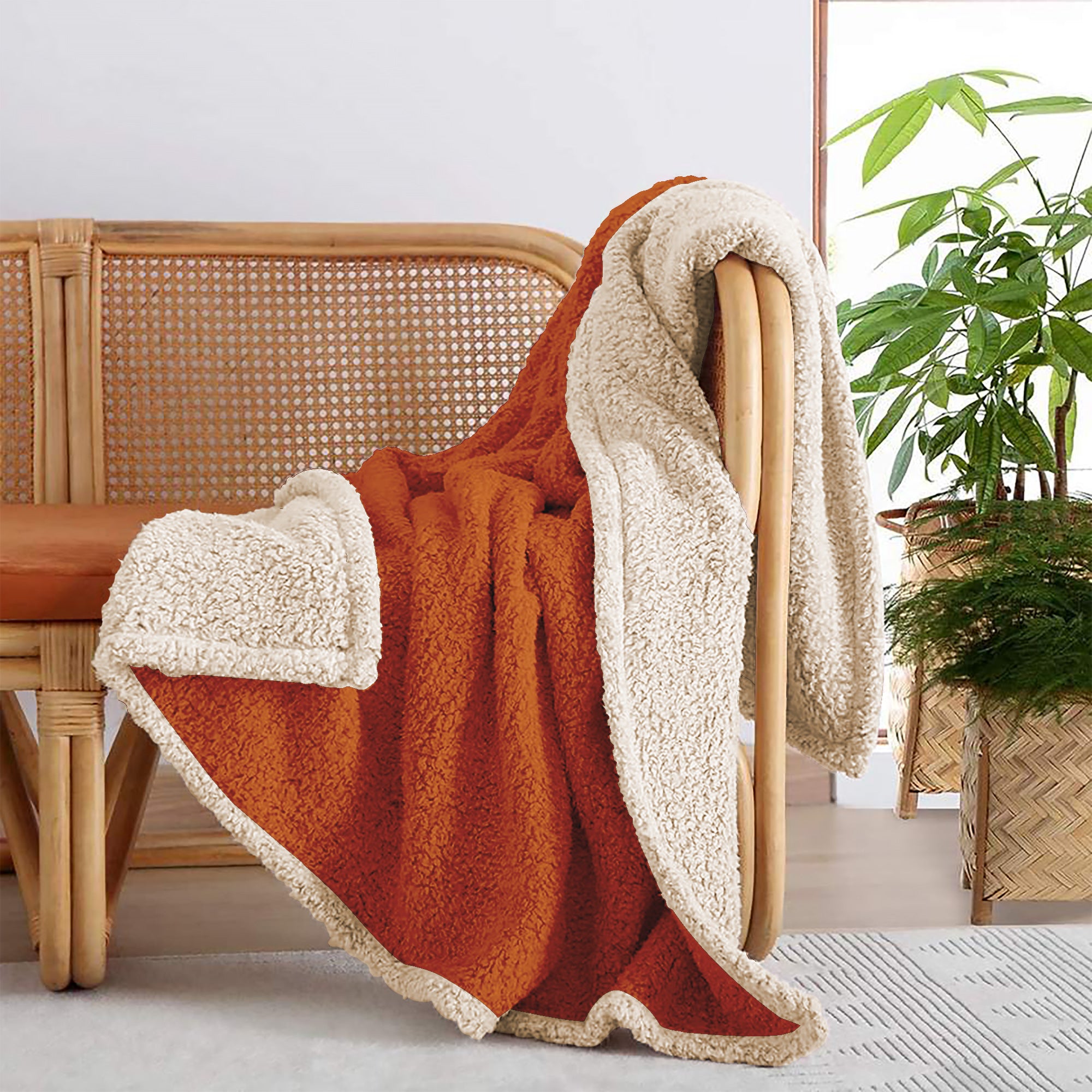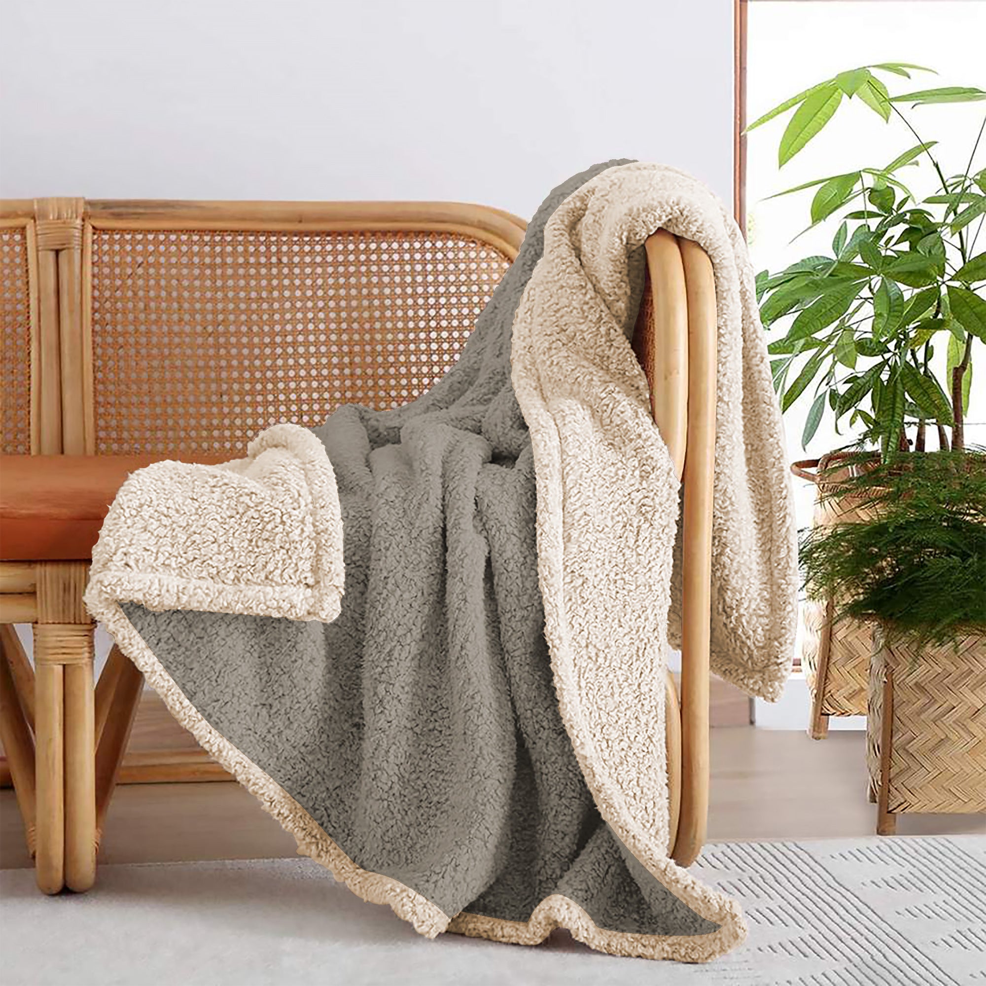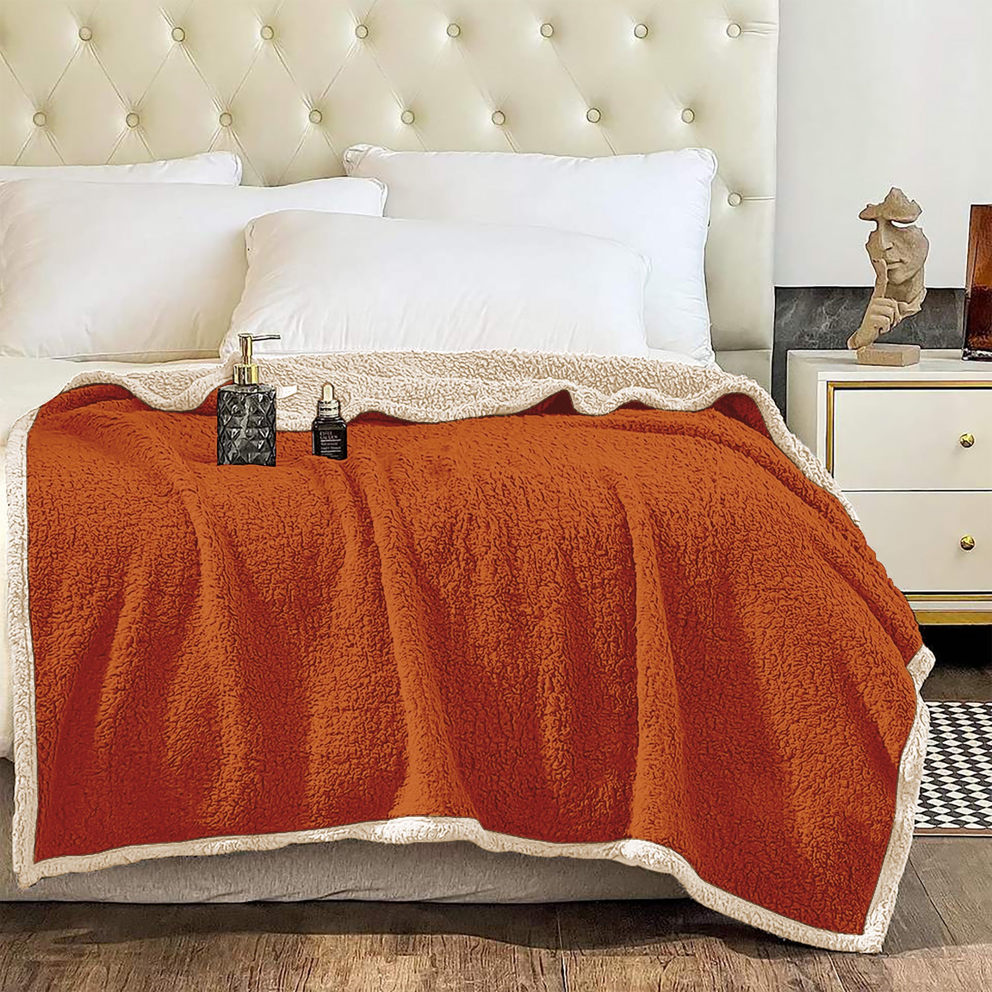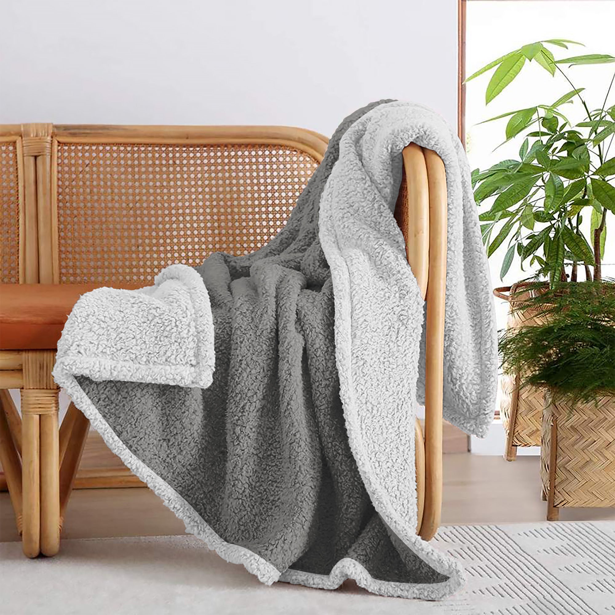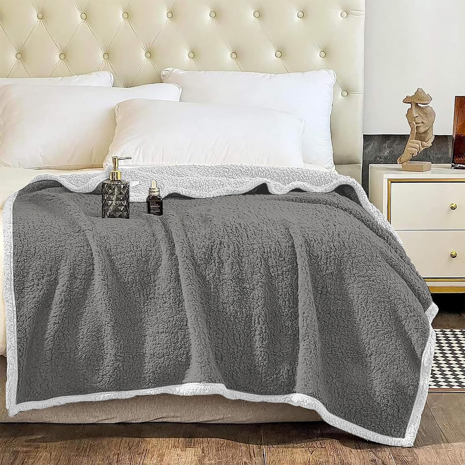 Coperta Plaid in Pile Sherpa Invernale, Morbida e Calda,400 Gr/Mq Coperta Pelosa Tinta Unita Con Lavorazione Divano in Finta Pelliccia
