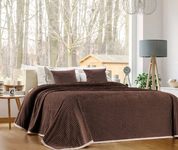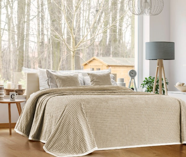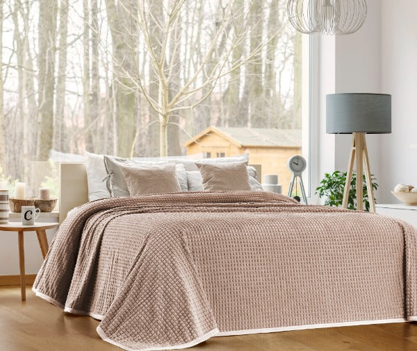 LAVORAZIONE A QUADRETTI: La coperta presenta una lavorazione a quadretti contemporanea e moderna studiata e ricercata, il risultato è un prodotto unico e d'eccellenza