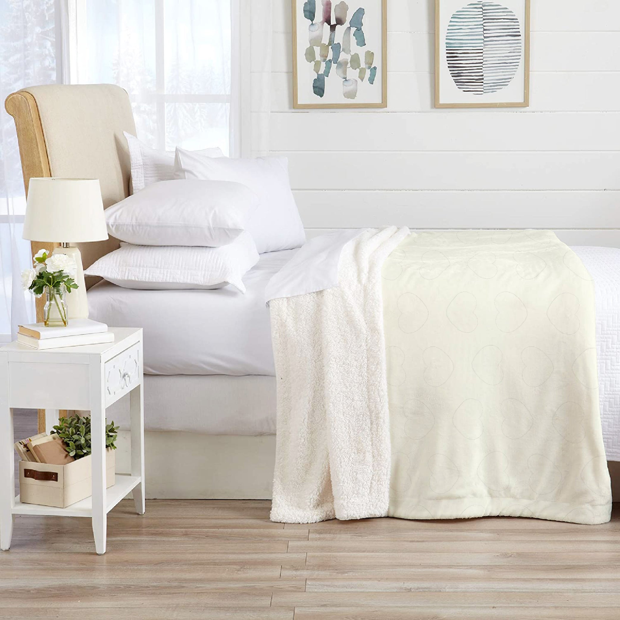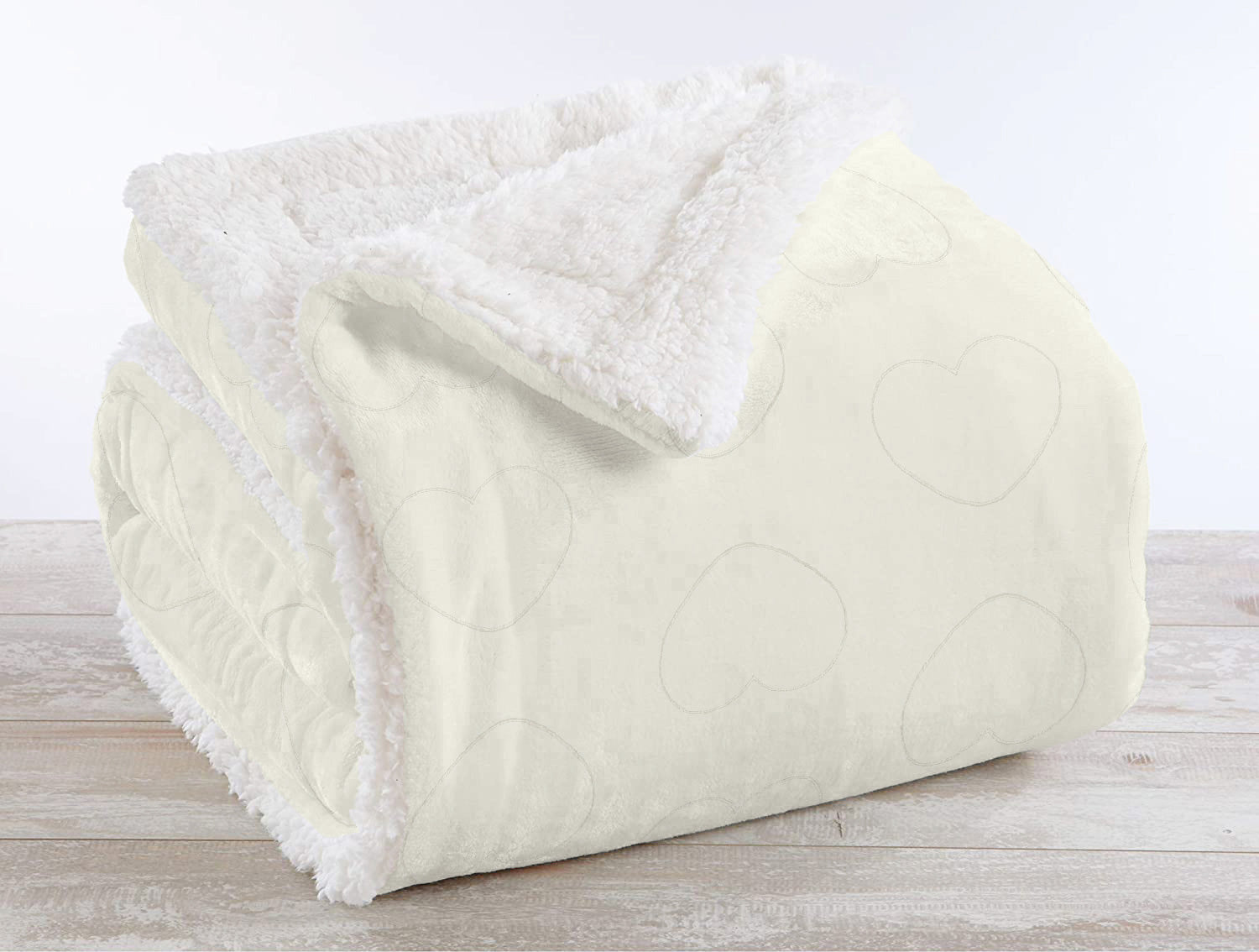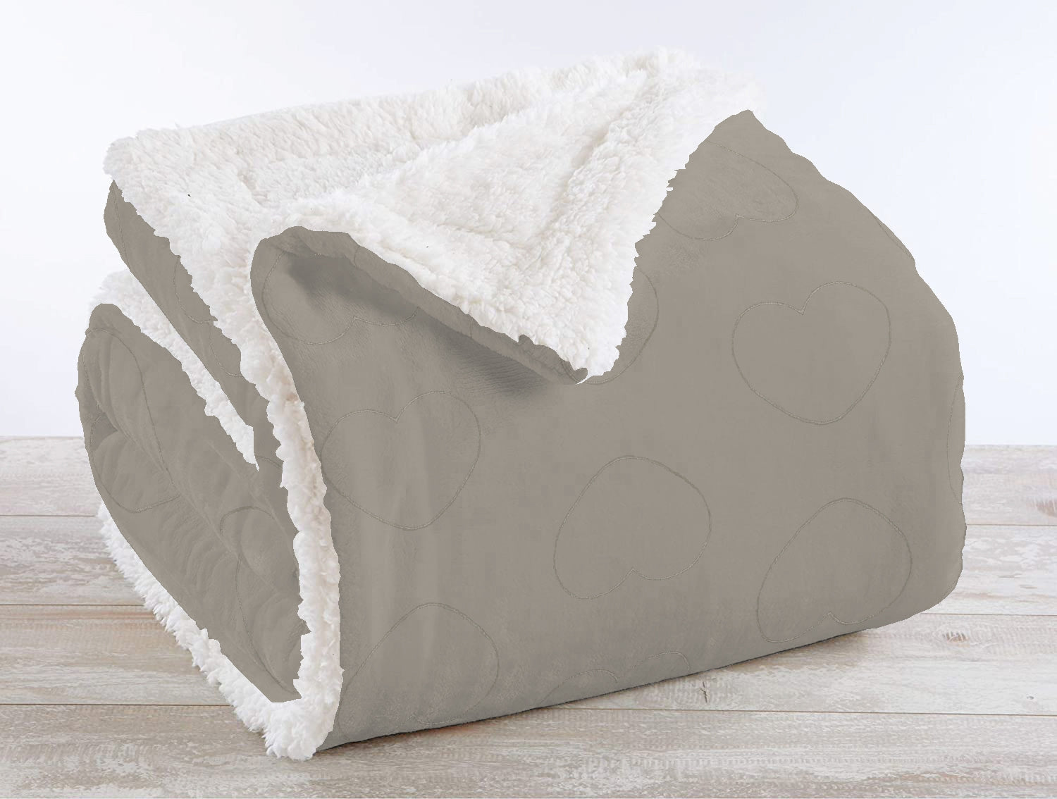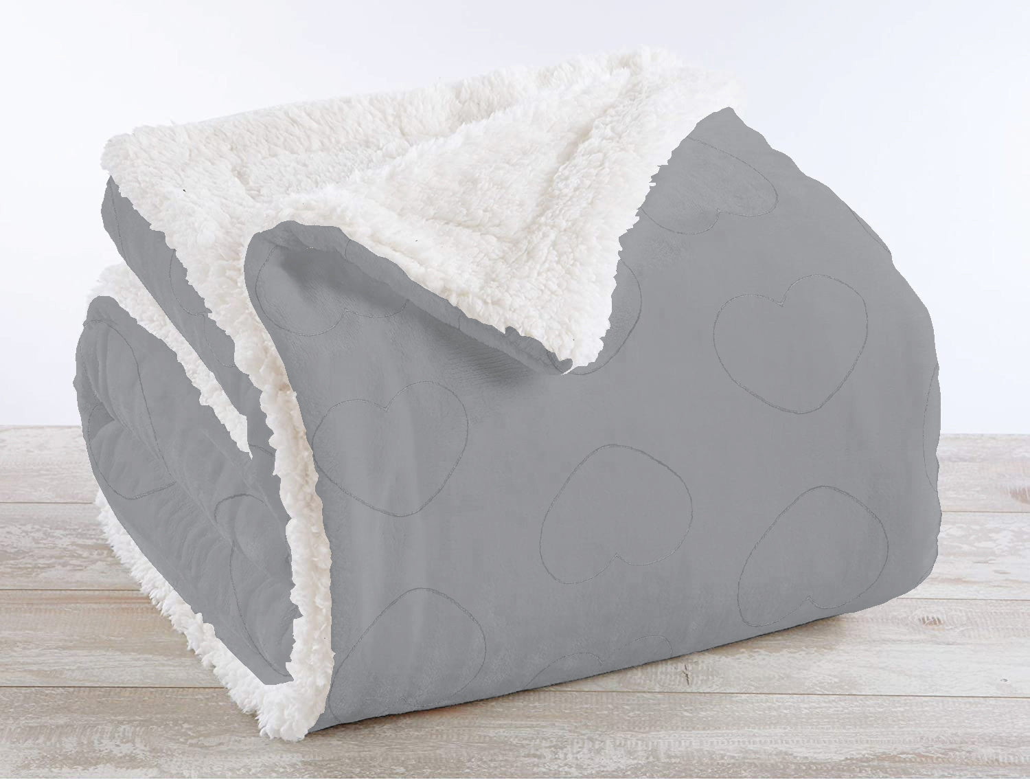 Coperta Plaid in Pile Sherpa Invernale,Morbida e Calda,Coperta Pelosa Copri Letto o Divano in Finta Pelliccia Doppio Lato Cuori