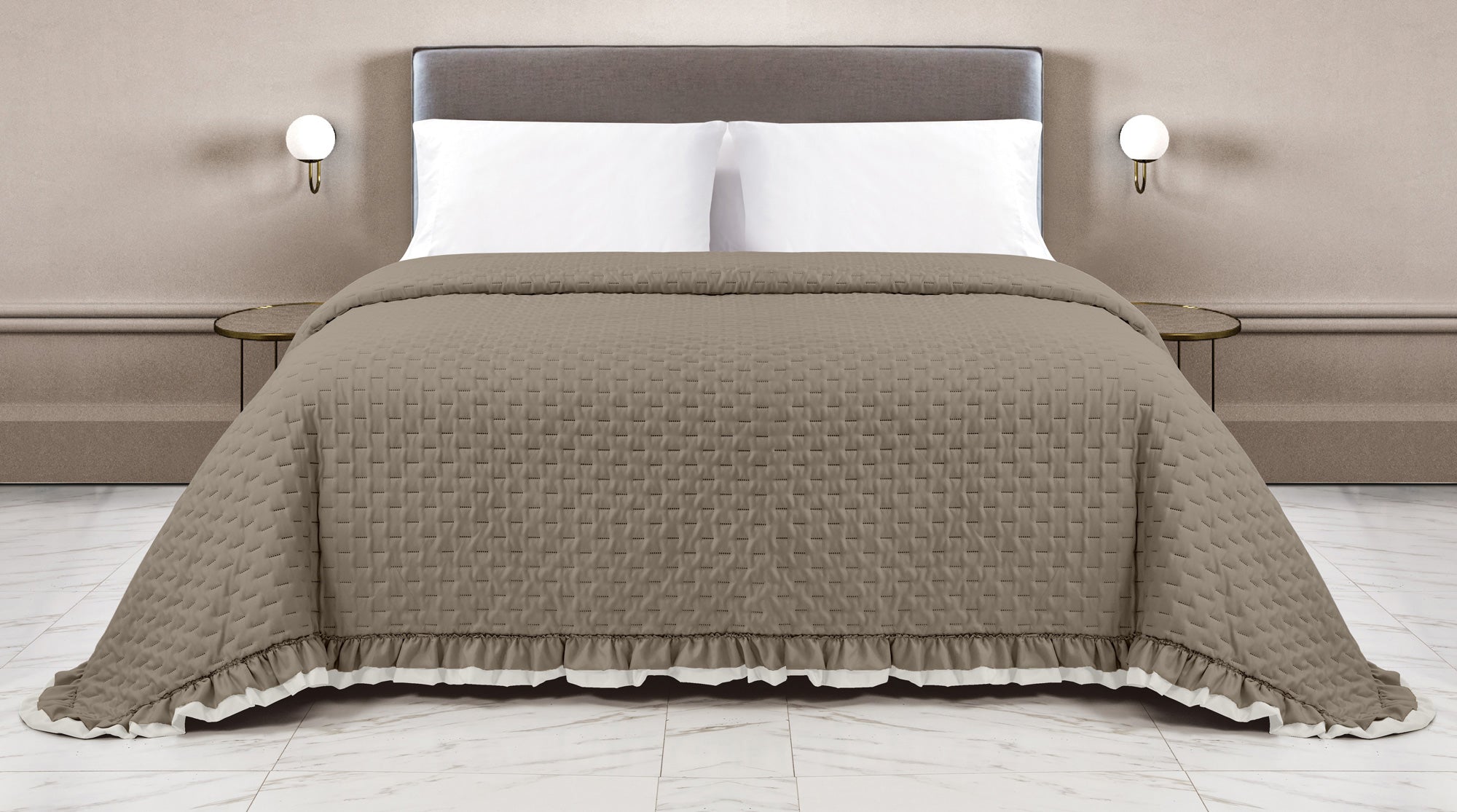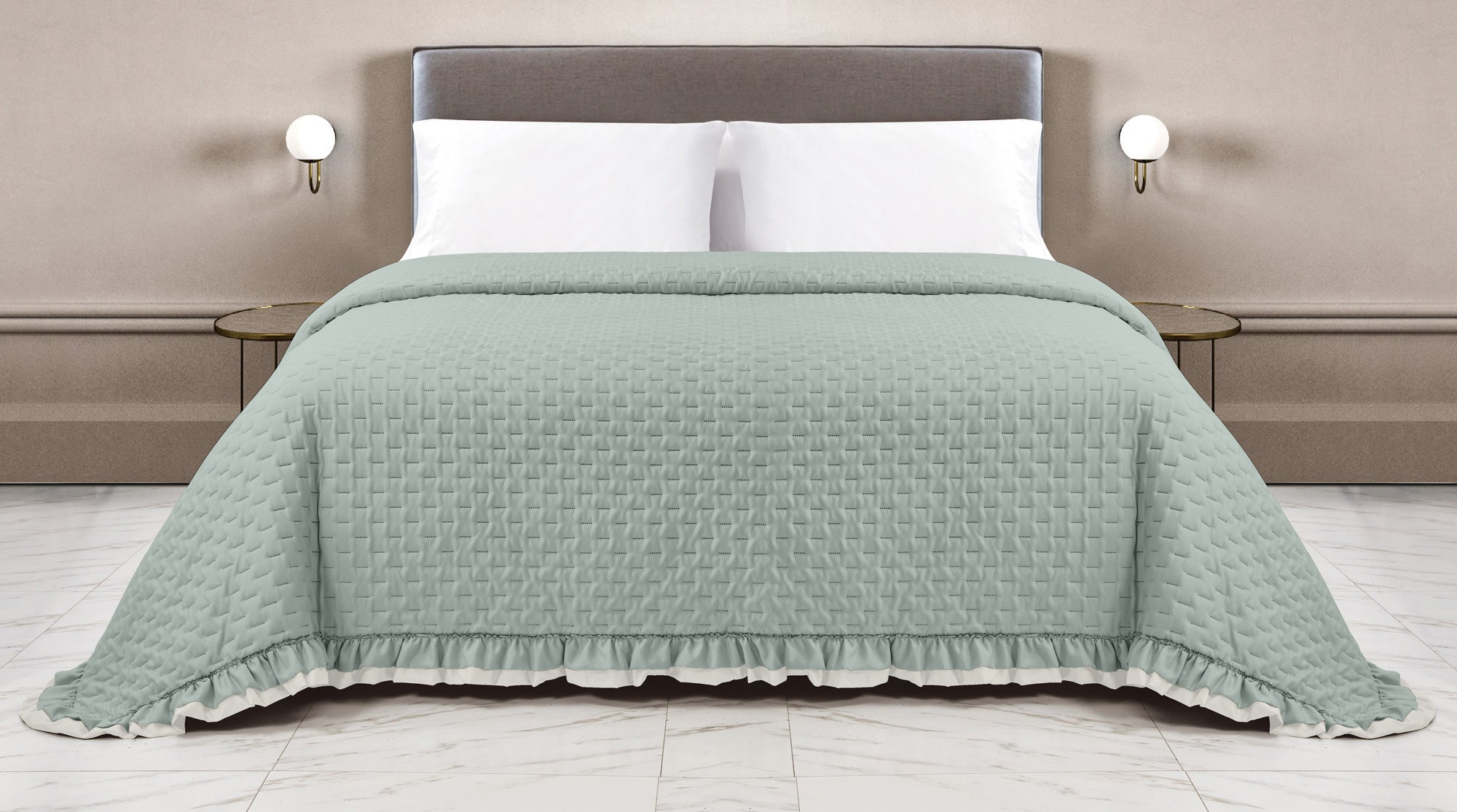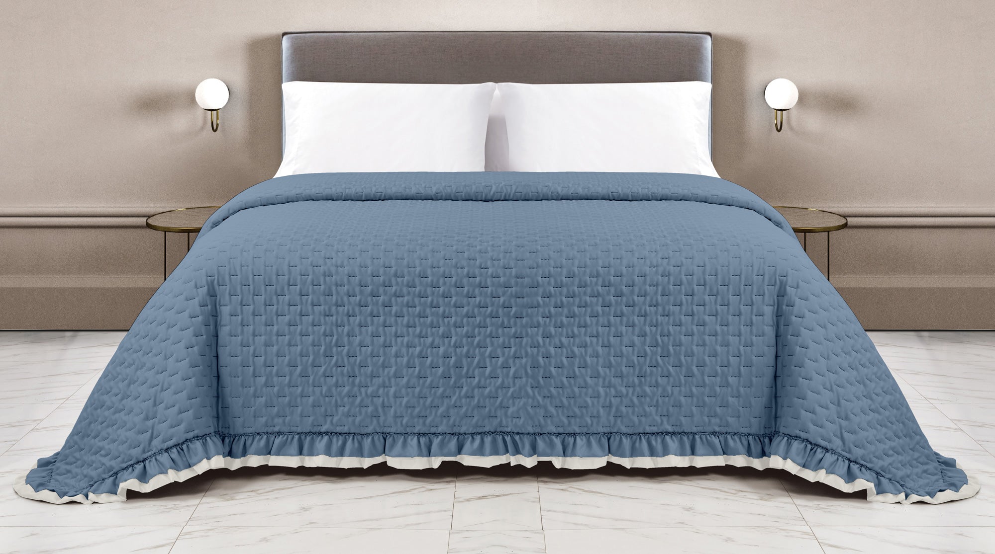 Copriletto Trapuntato Arles Matrimoniale Trapuntino Bicolore Due Piazze Con Balze Volant Coperta Leggera Primavera Estate