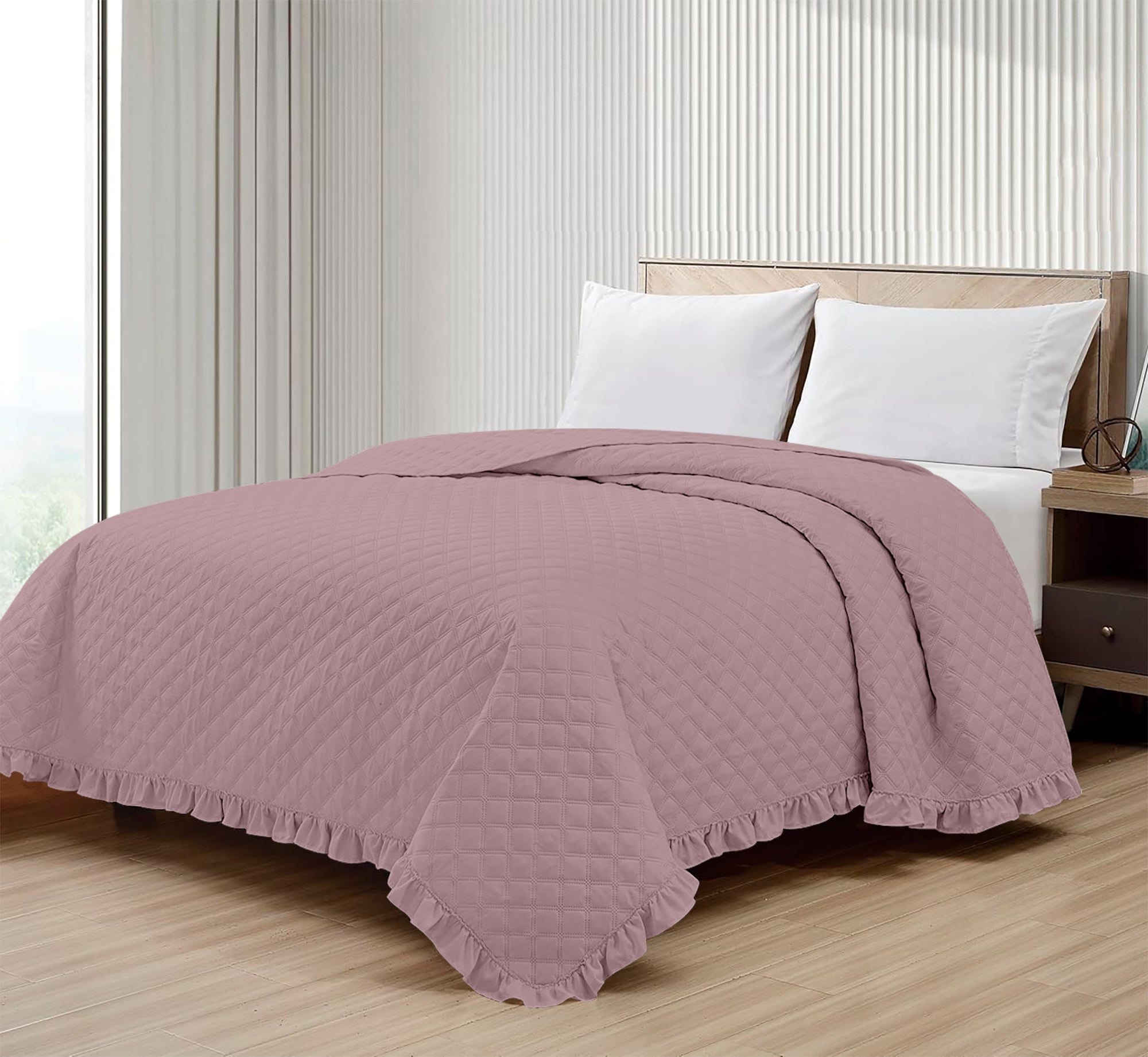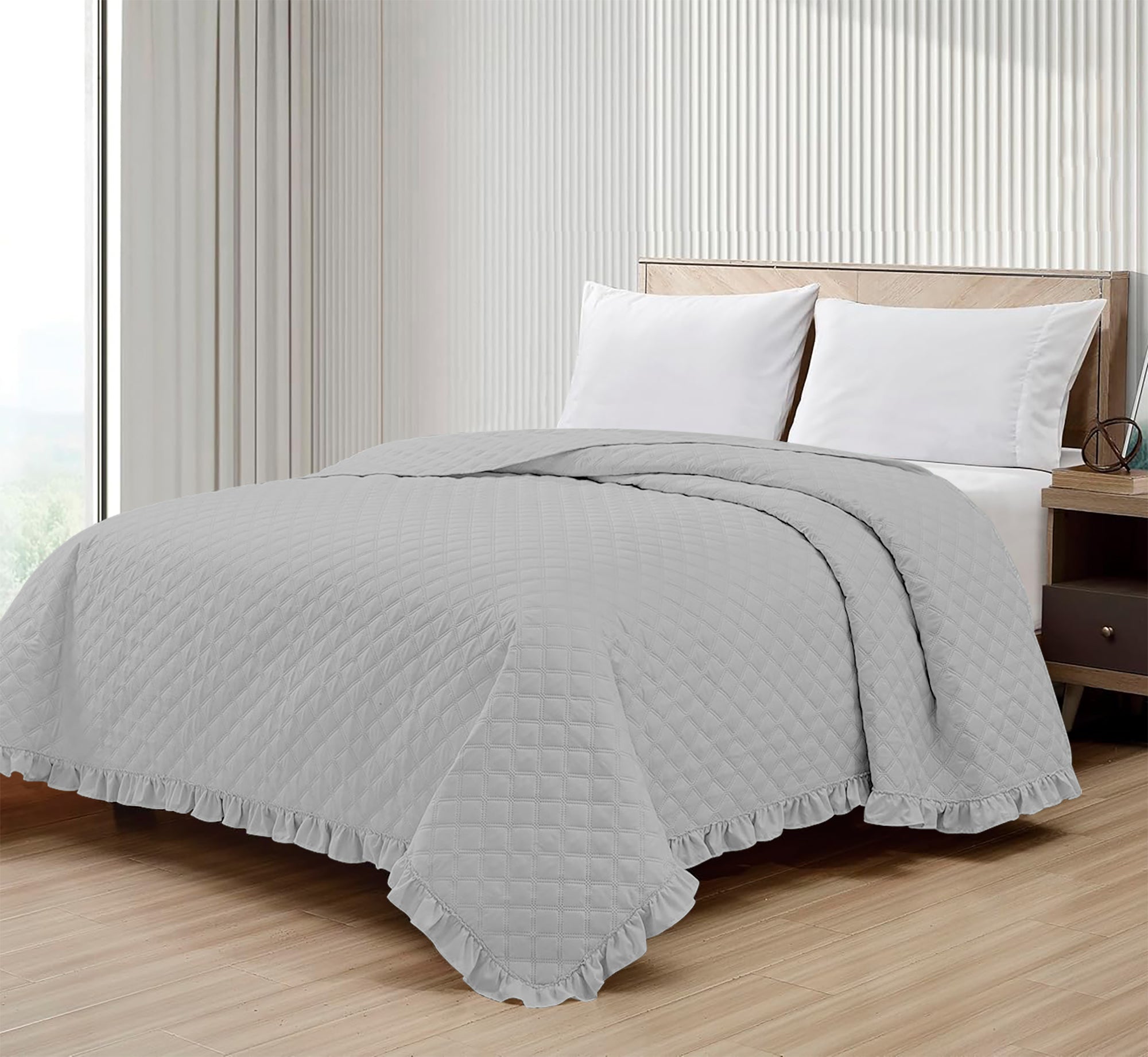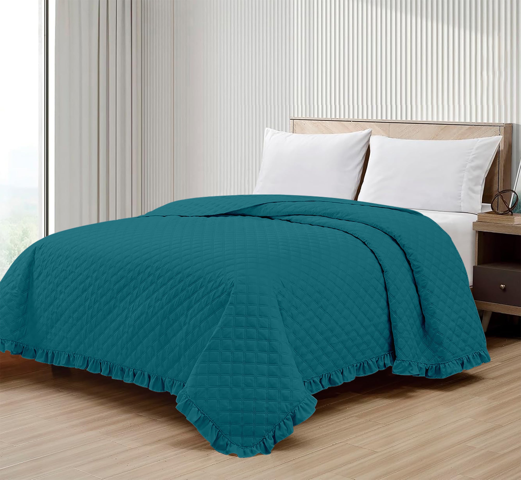 Copriletto Trapuntato Con Frill Matrimoniale Trapuntino Tinta Unita Due Piazze Con Balze Coperta Leggera Primavera Estate Trapunta