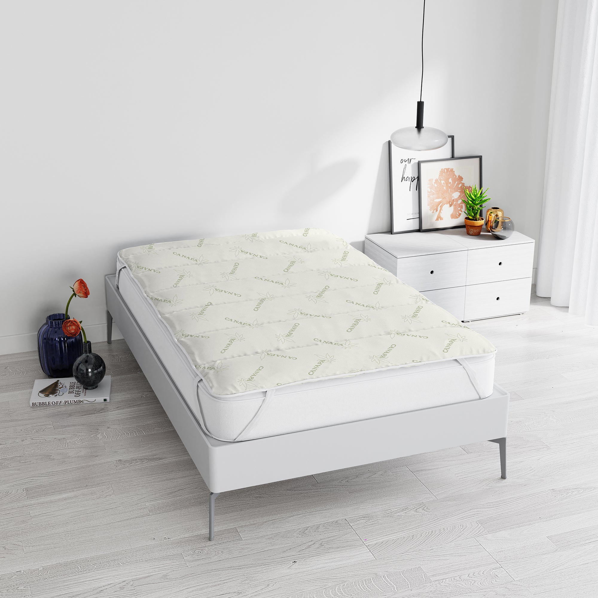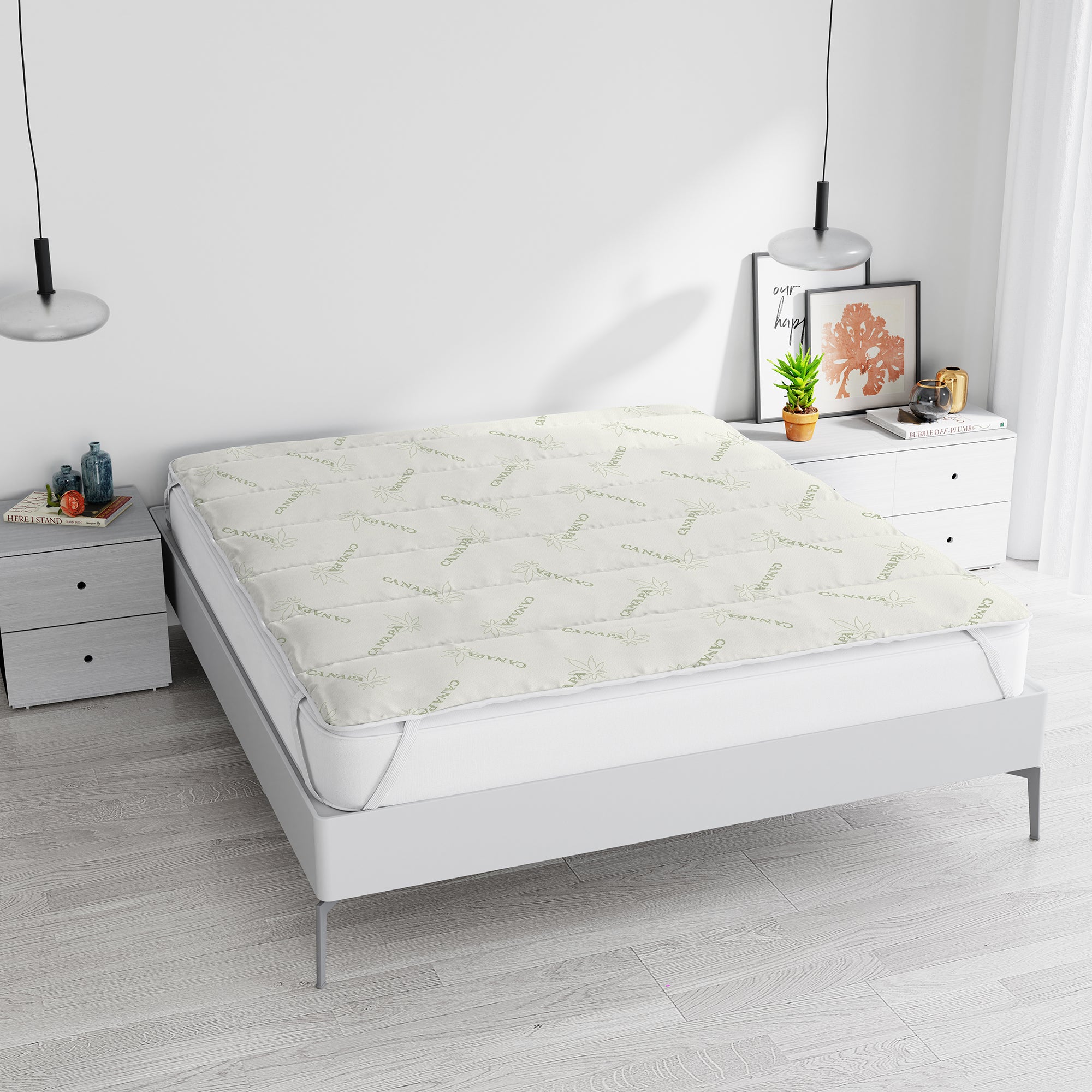 Topper Trapuntato Canapa Correttore Materasso Anallergico Con Fasce Elastiche Salva Coprimaterasso Traspirante Protettivo Veloce
