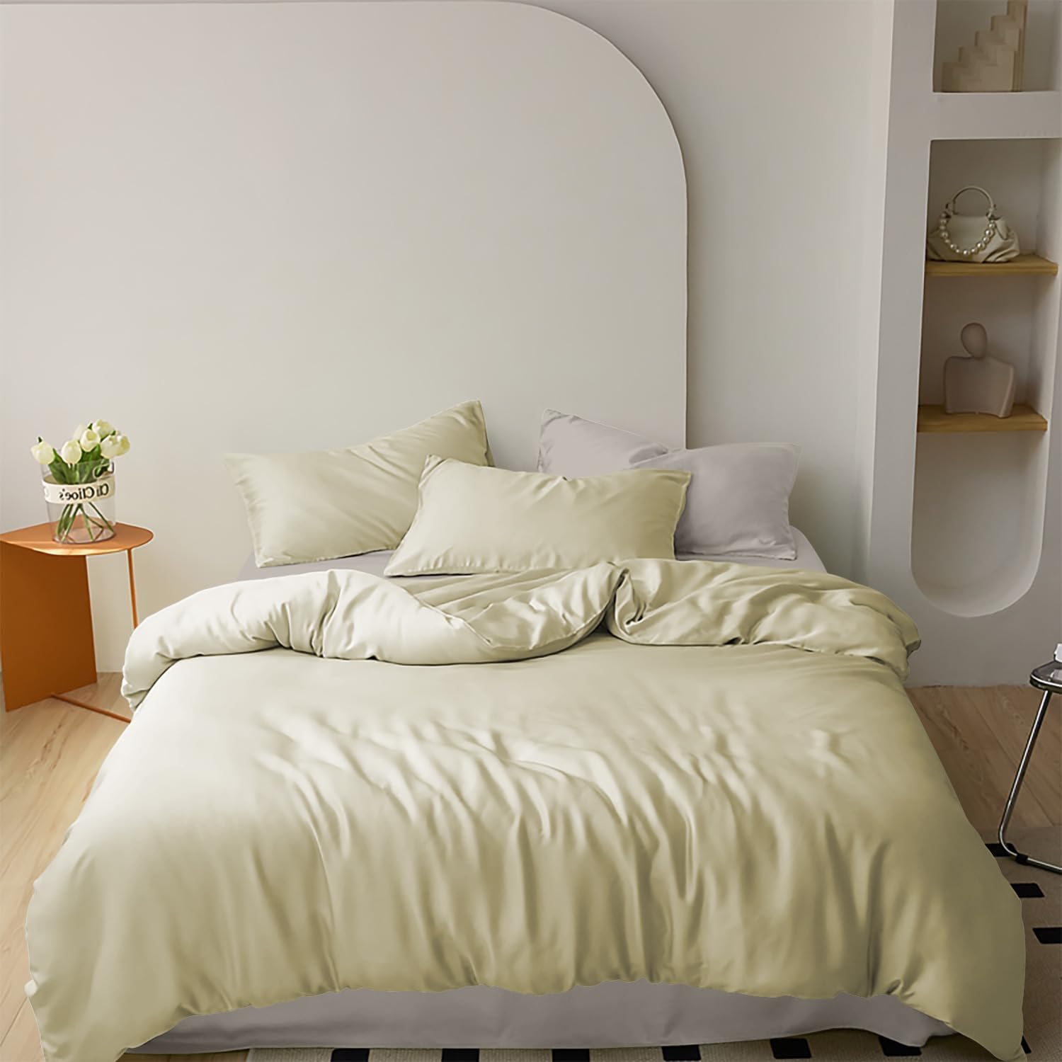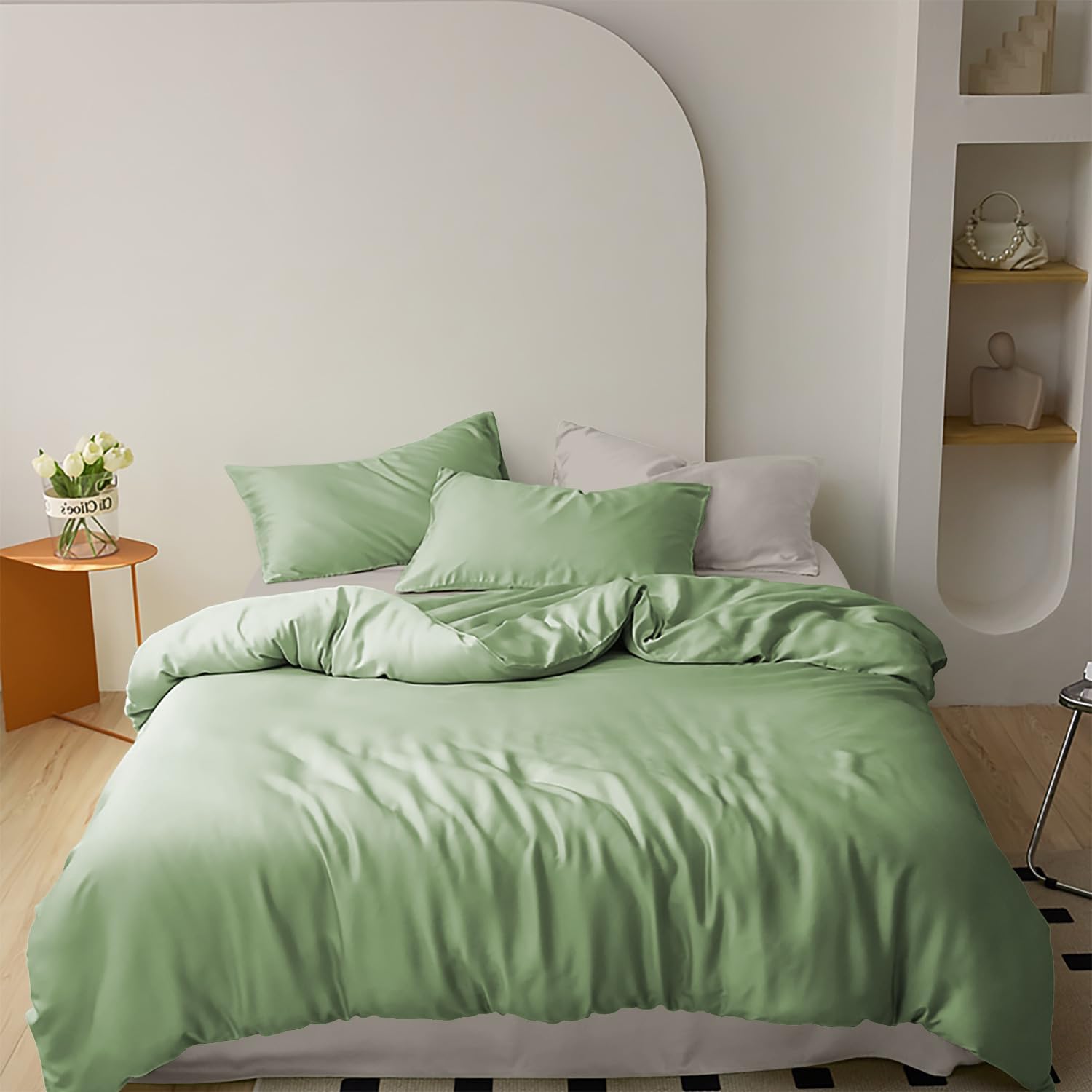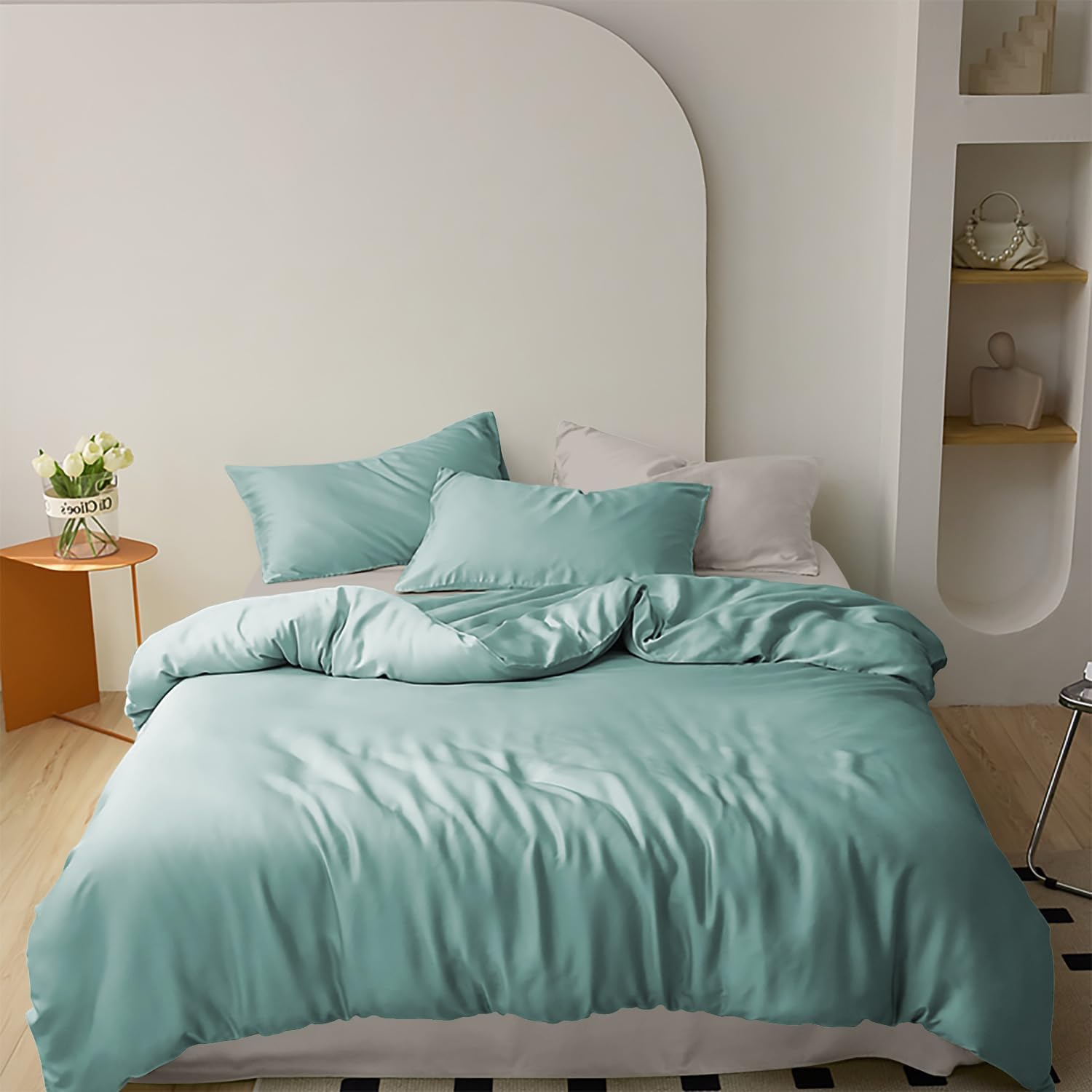 Parure Copripiumino Matrimoniale In Raso Di Cotone Lucido Tinta Unita Sacco E Federe Lussuoso Elegante