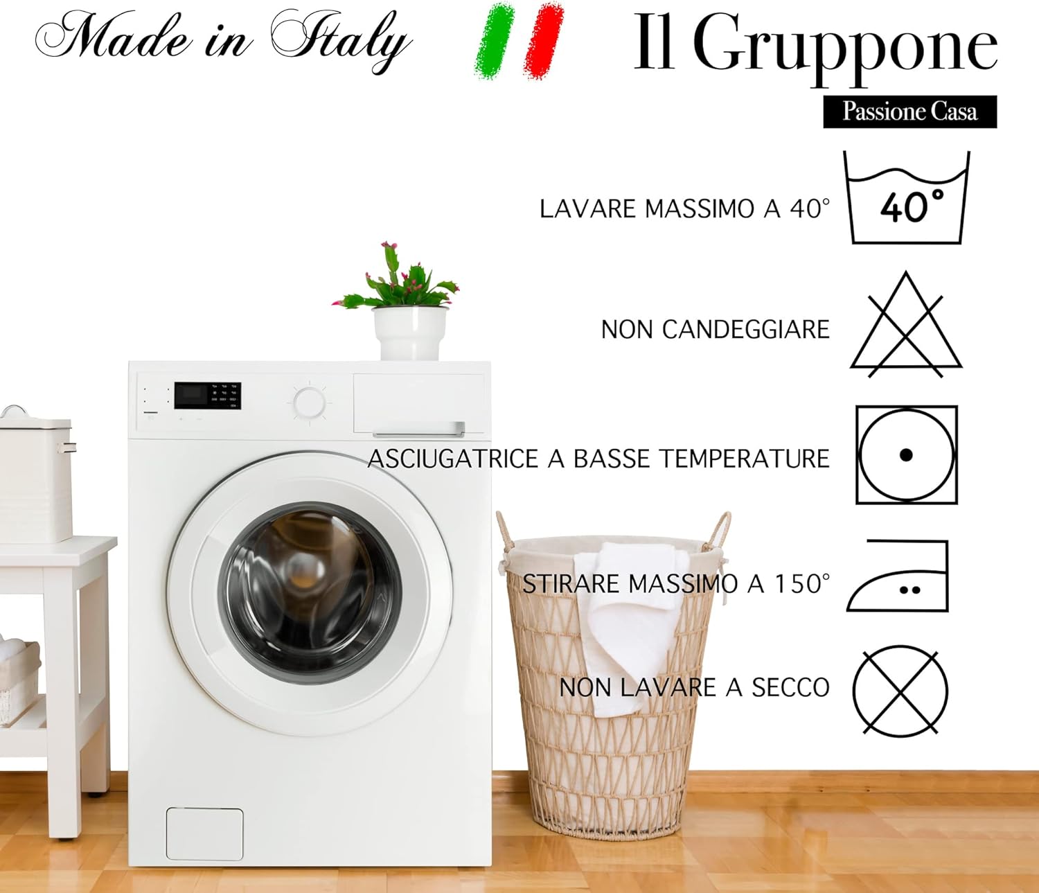 ✔️Qualità: interamente prodotto e confezionato in Italia selezionando i migliori materiali, realizzato senza l'utilizzo di sostanze tossiche e nocive per l'uomo e per l’ambiente Manutenzione: Lavabile in lavatrice a 40 gradi, si stira tranquillamente, non candeggiare