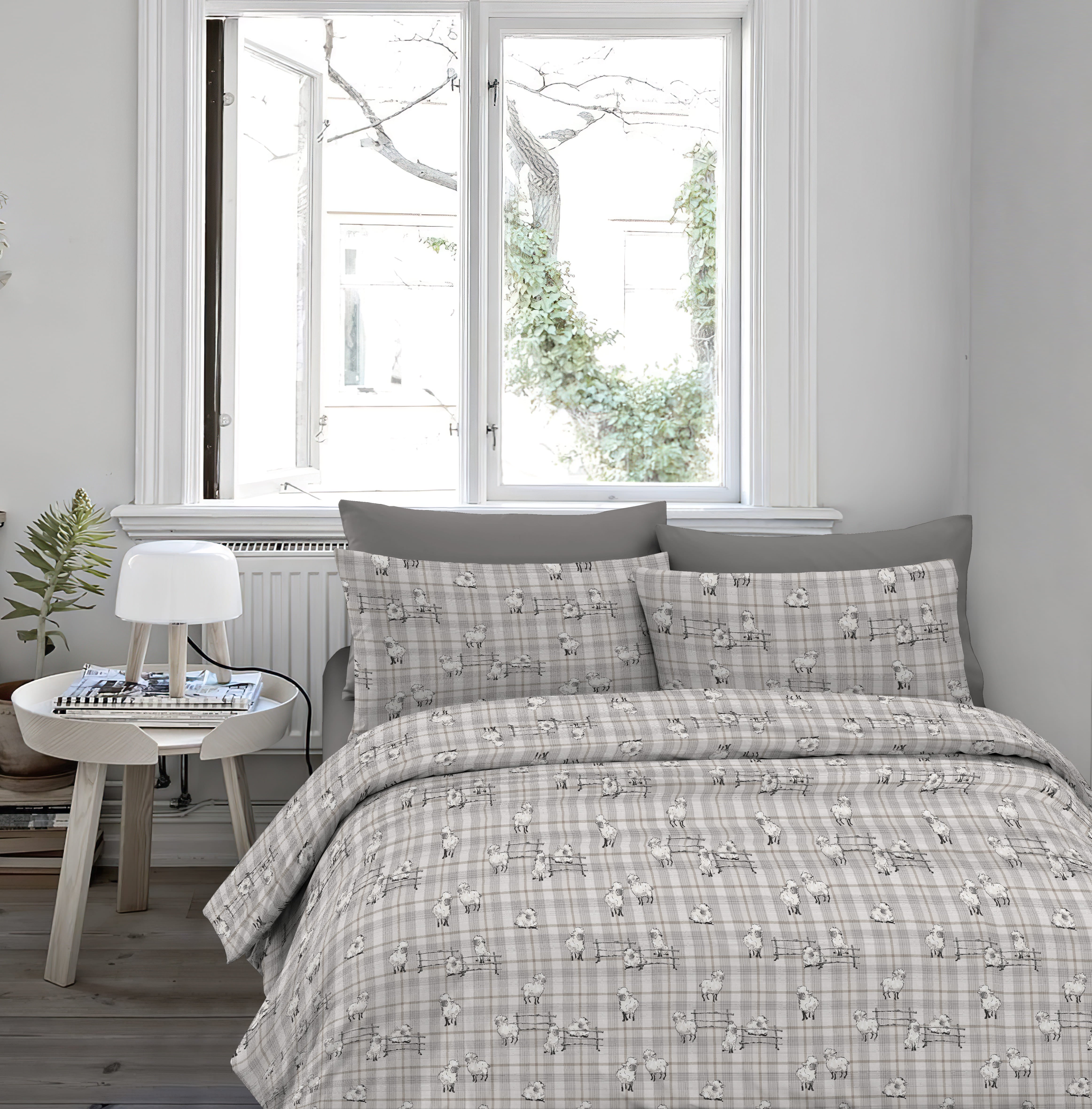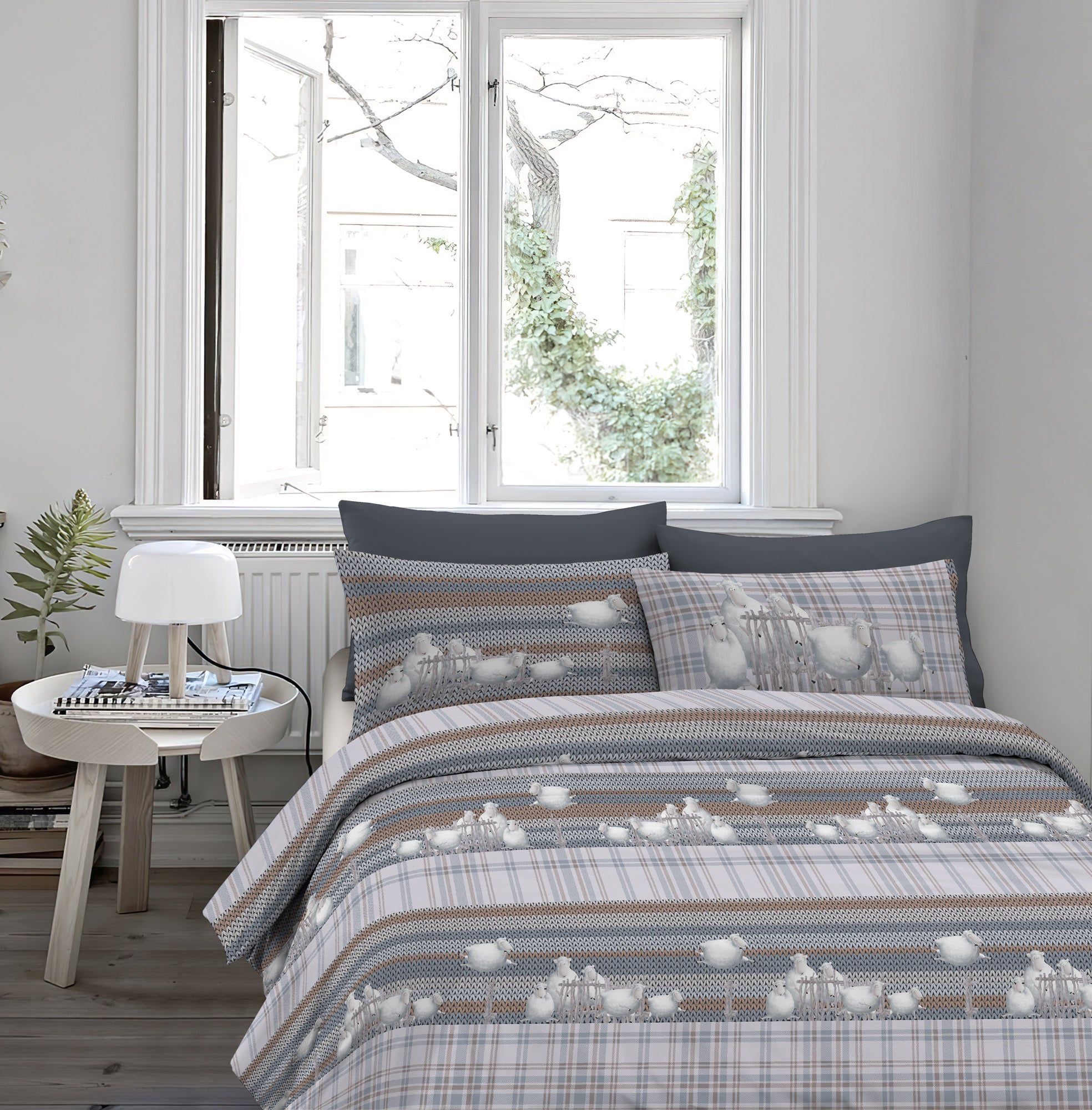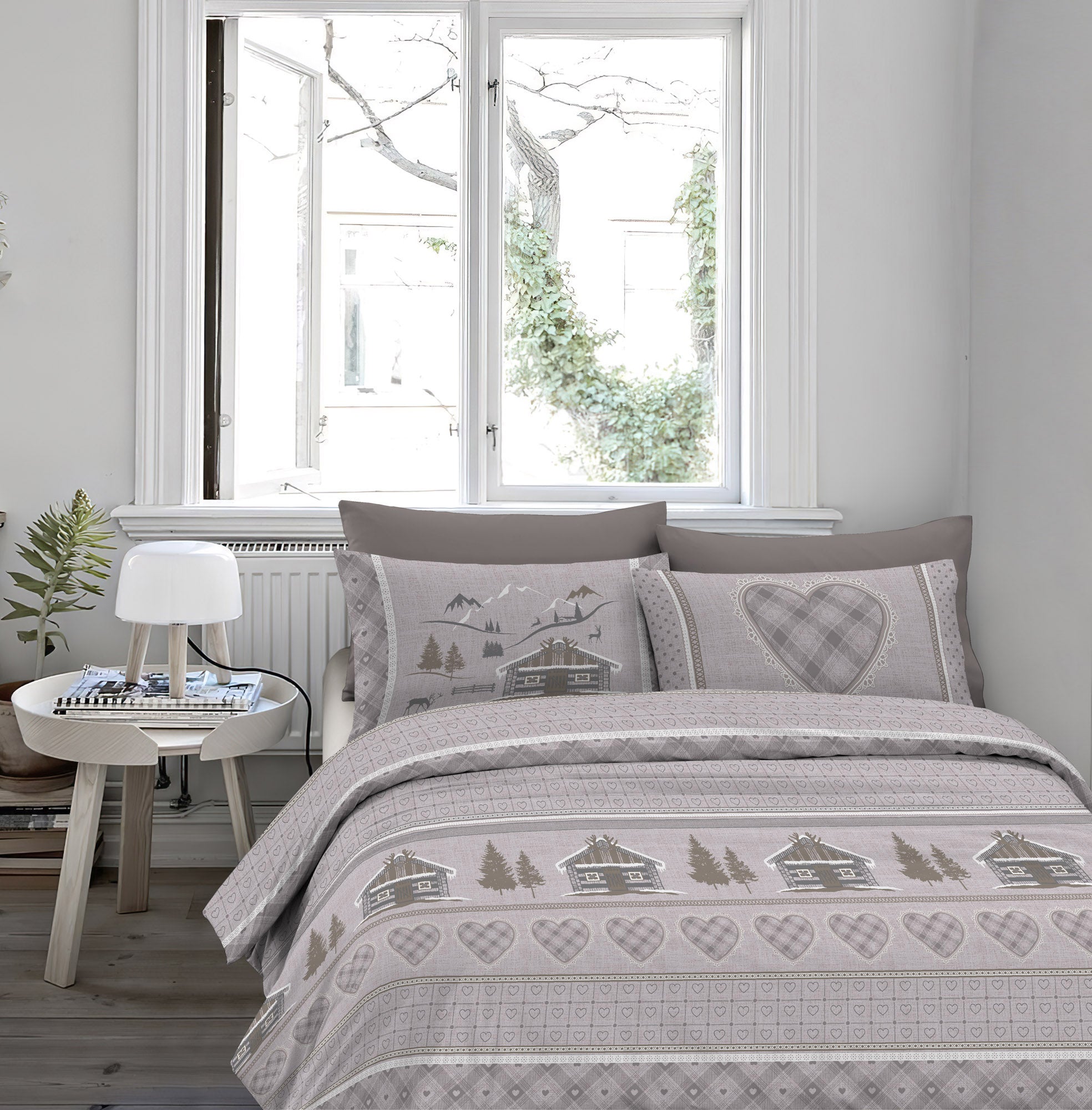✔️ Parure copripiumino 100 % caldo cotone di flanella composto da sacco copripiumino e federe con pratica patella interna