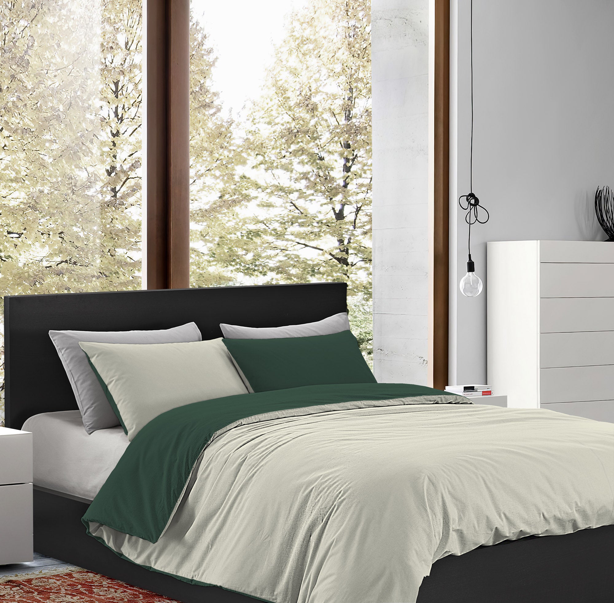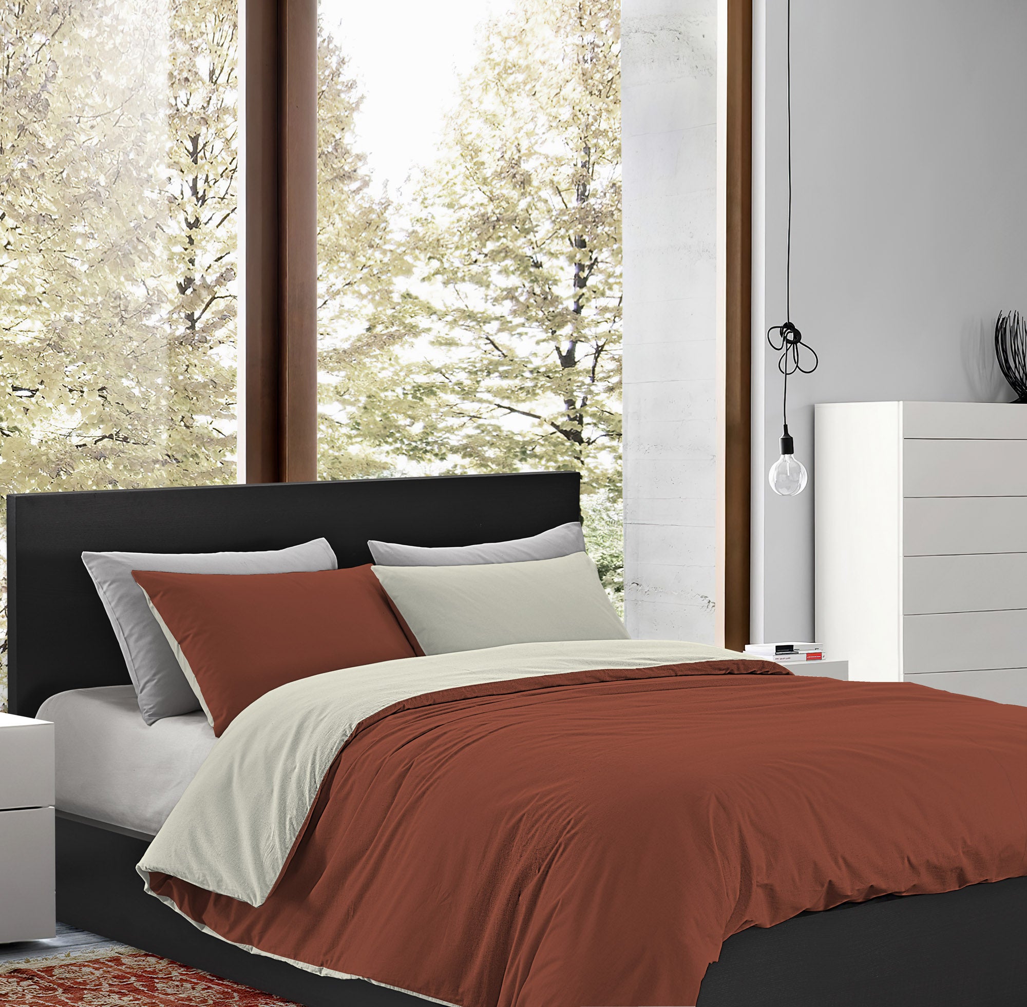 Parure Copripiumino in Flanella Felpato Bicolore Sacco e Federe Double Face 100% Cotone
