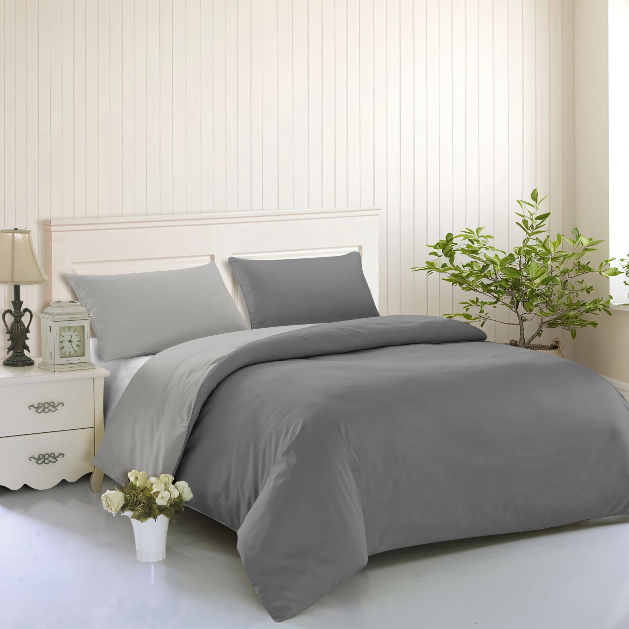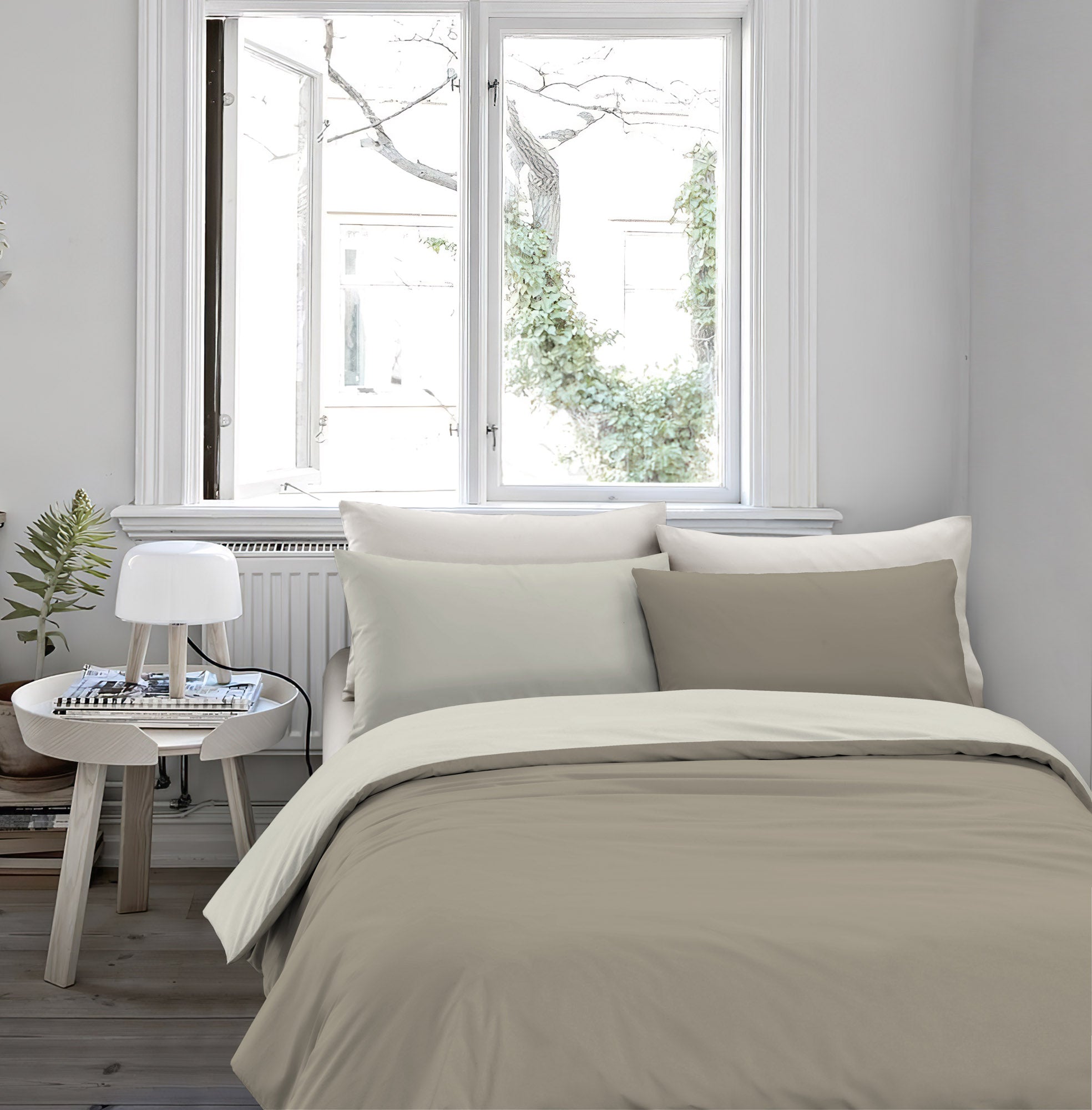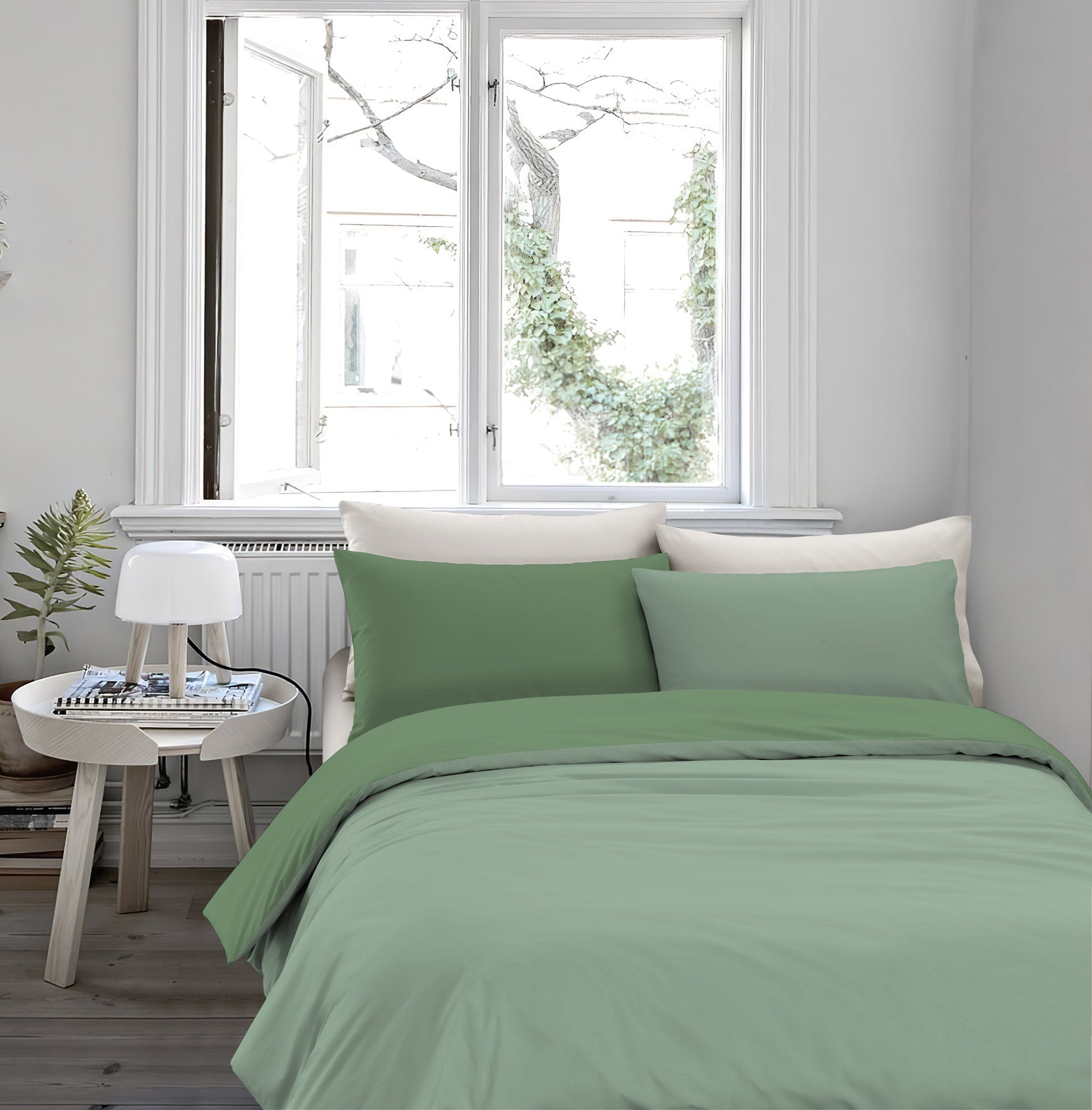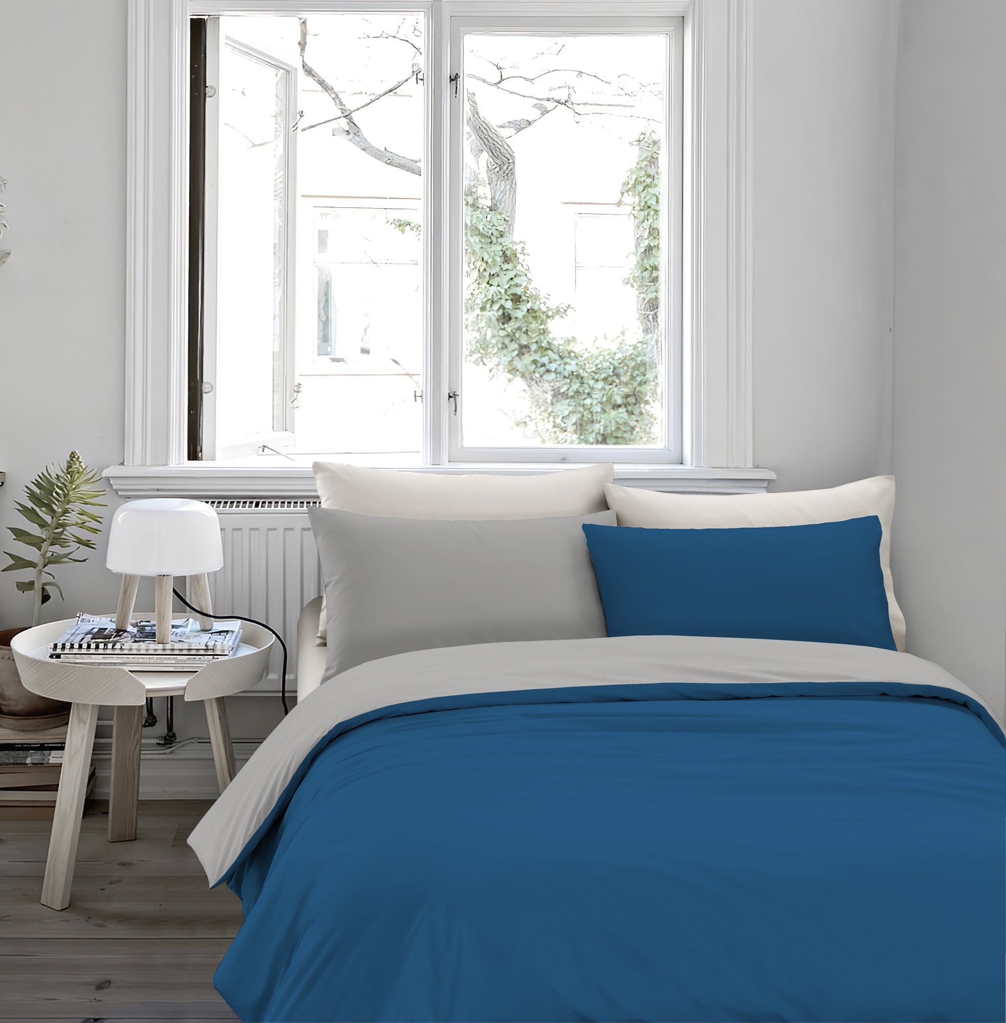 Set Copripiumino No Stiro Sacco e Federe Bicolore Effetto Raso Parure Microfibra Morbida Anallergica Mano Pesca