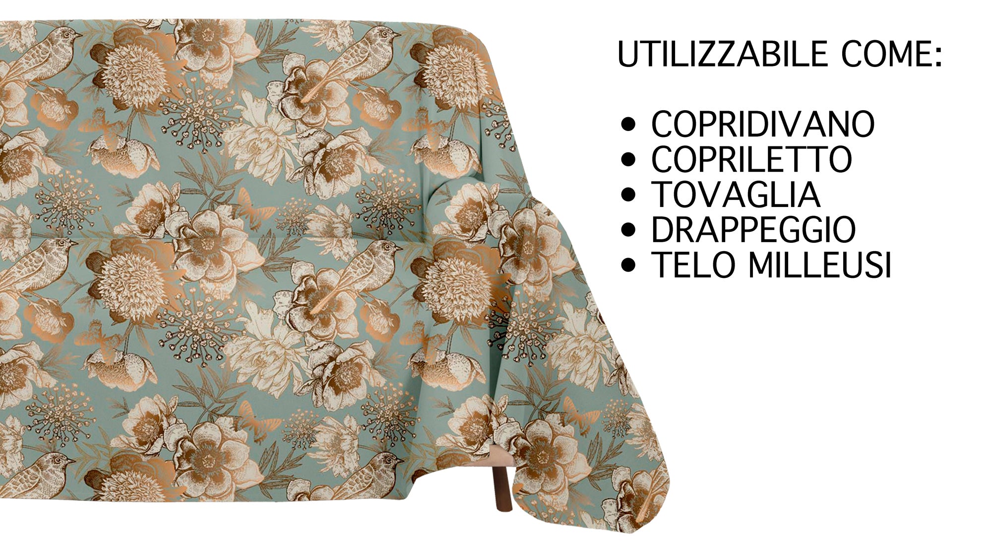 Telo Arredo Stampa Digitale in Cotone Grandfoulard Copritutto Copridivano Copriletto-Teli Sofà Arredatutto-Drappeggio-Arazzo-Copridivano Grand Foulard Letto Prodotto Italiano