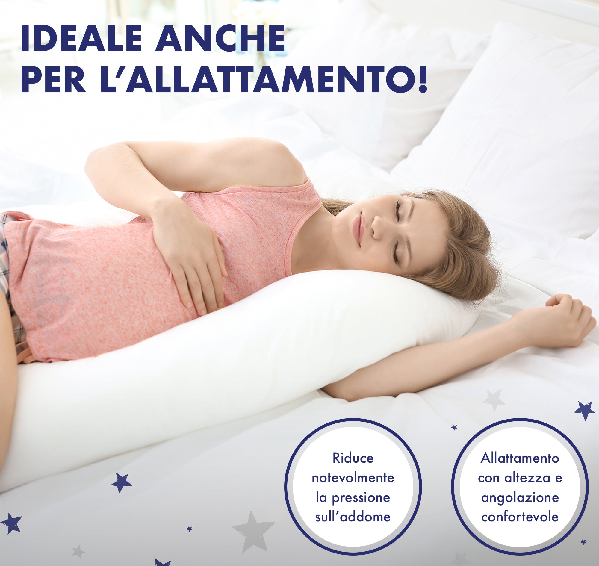 ✔️PER DORMIRE DI LATO E PER TUTTI Pensato anche per chi dorme di fianco, il cuscino garantisce una posizione stabile e confortevole, favorendo un sonno riposante e sicuro. È particolarmente indicato per le donne in gravidanza, ma anche per chi soffre di allergie o semplicemente desidera un ambiente di sonno pulito e protetto. La sua lunghezza XXL di 150 cm permette di abbracciare tutto il corpo, offrendo un sostegno ottimale in ogni fase del riposo.