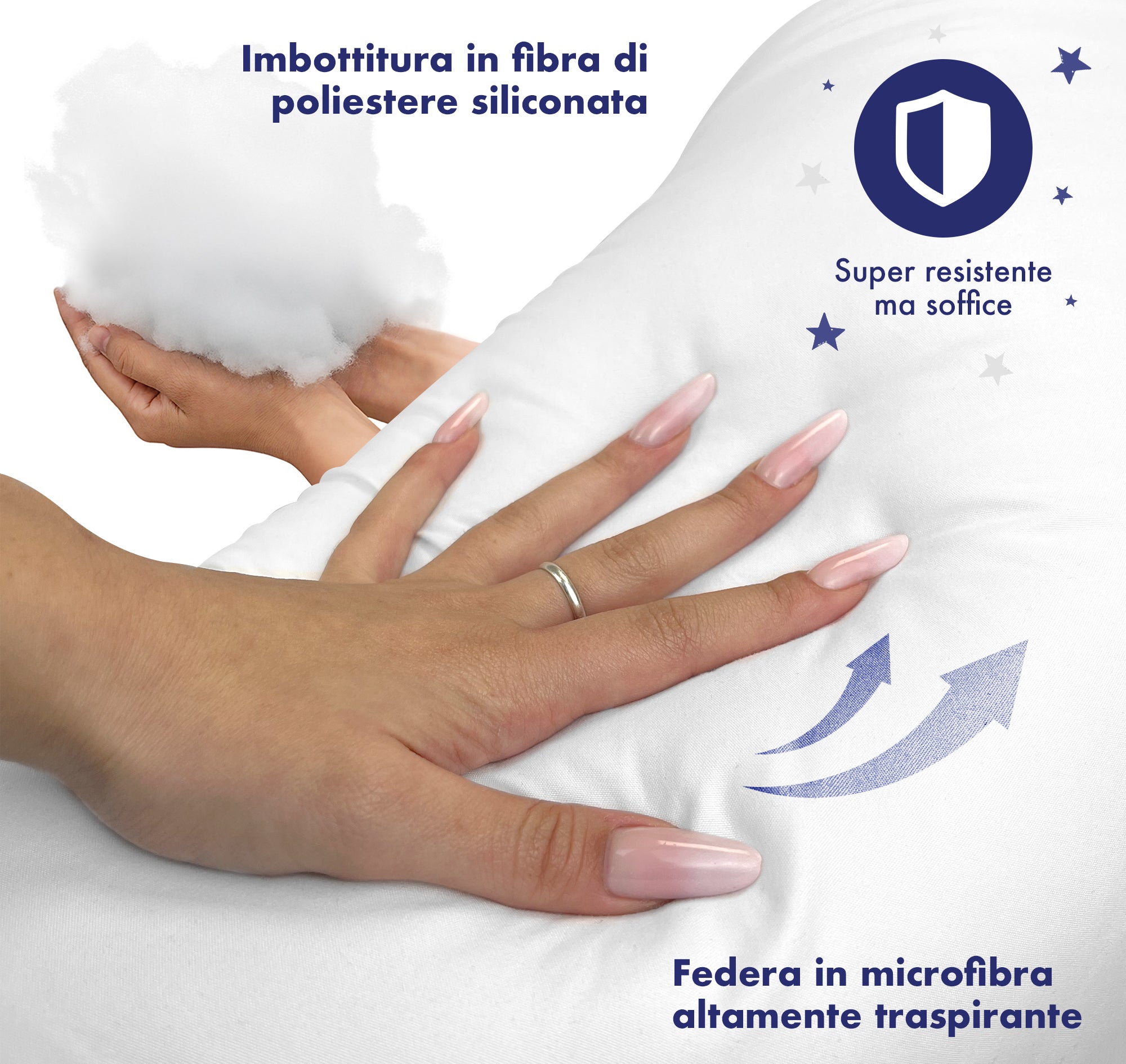 ✔️ALTA QUALITÀ E FACILITÀ DI MANUTENZIONE Il nostro cuscino è imbottito con fibra ecologica traspirante, anallergica e durevole nel tempo, mantenendo volume e morbidezza anche dopo numerosi lavaggi. La fodera esterna in microfibra morbida e traspirante rende facile la manutenzione: può essere lavata completamente in lavatrice a 30°C senza problemi. Un prodotto pratico, igienico e pensato per accompagnarti nel percorso della maternità con comfort e affidabilità