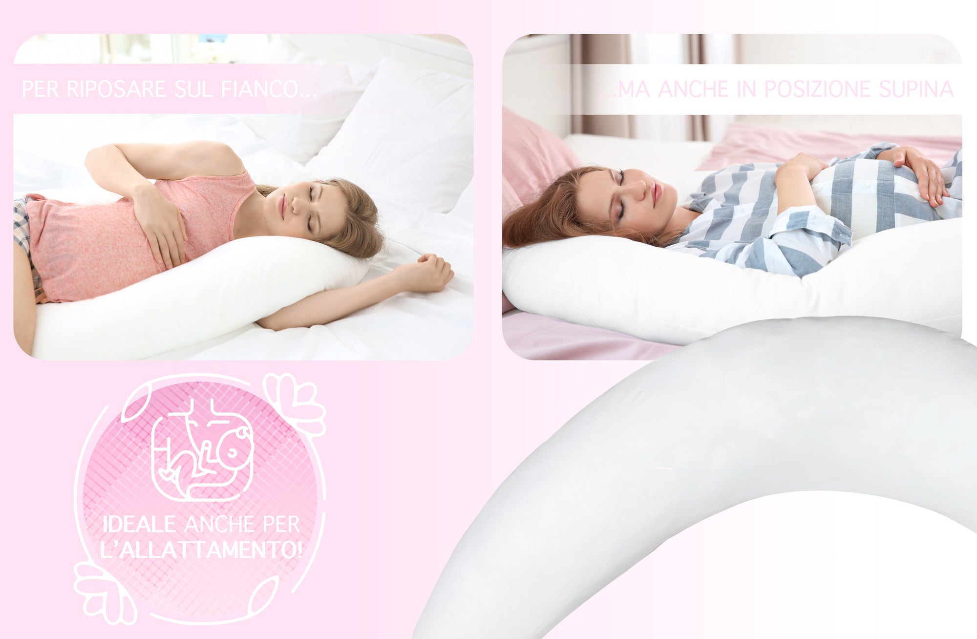Cuscino da allattamento e gravidanza con forma ad U progettato per migliorare la qualità del sonno per la mamma nella fase Premamane dopo la nascita per migliorare l'allattamento e il riposo del bambino, materiali studiati per dare il massimo comfort per entrambi .