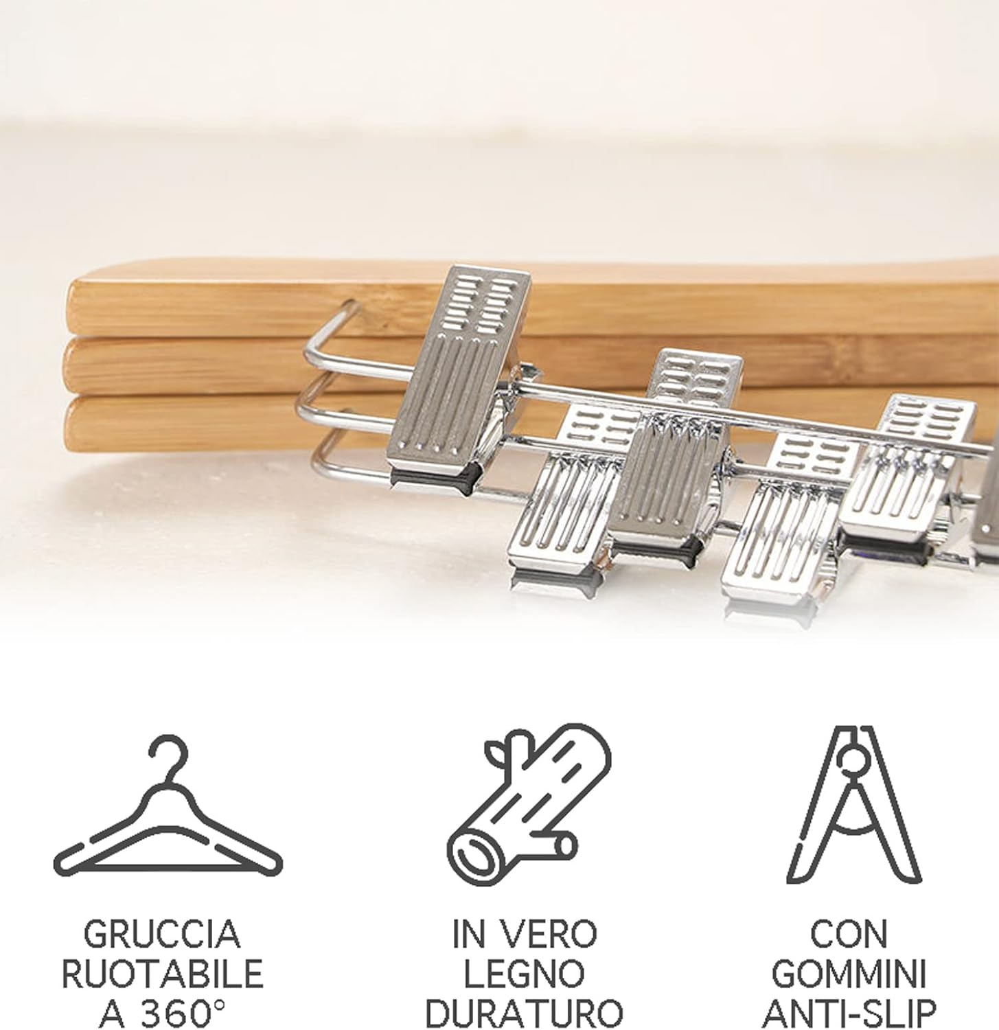 Grucce In Legno Naturale Con Clip Regolabili 10 Pezzi Appendino Armadio Appendiabiti Pantaloni Gonne Giacche Gancio Girevole 360°