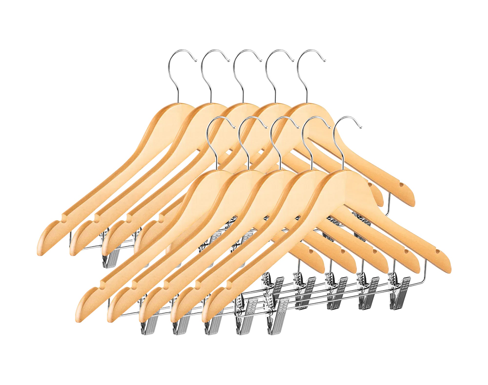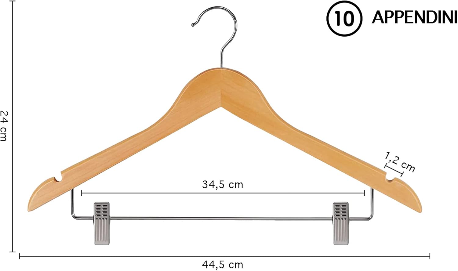 ✔️Qualità: Confezione da 10 Pezzi di appendini in legno naturale con clip e gruccia in metallo robusti e resistenti