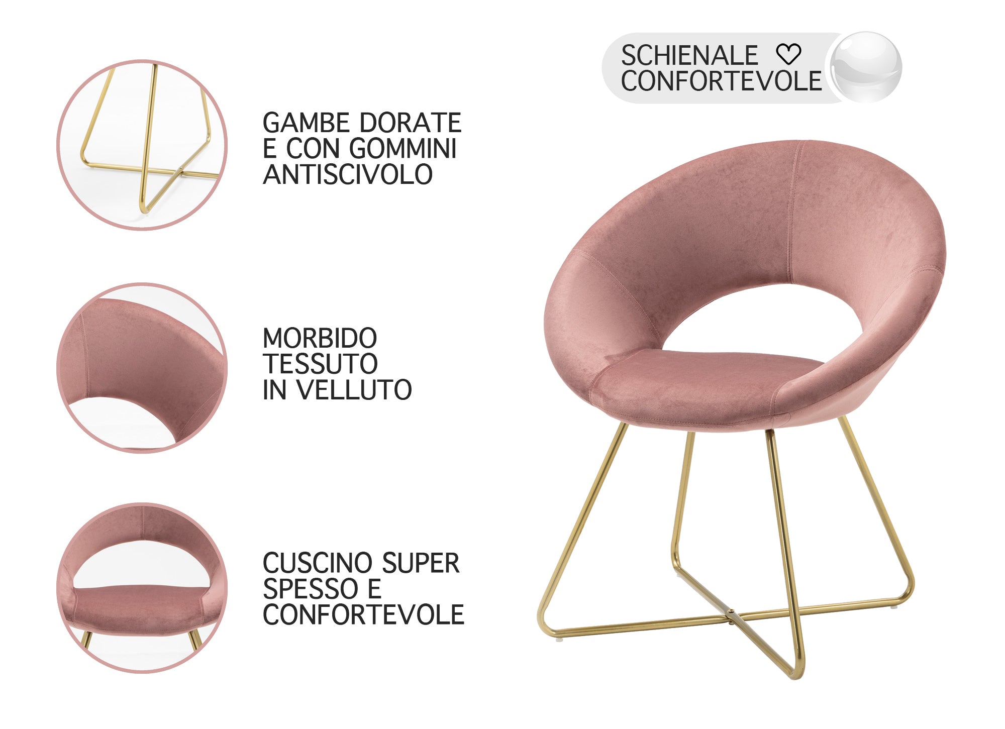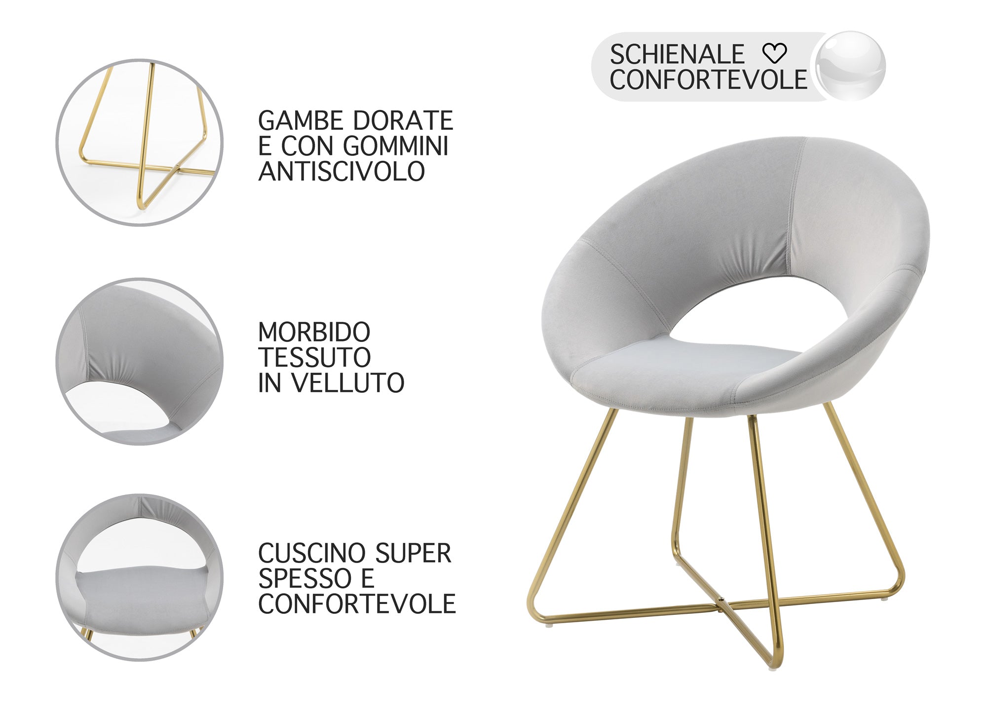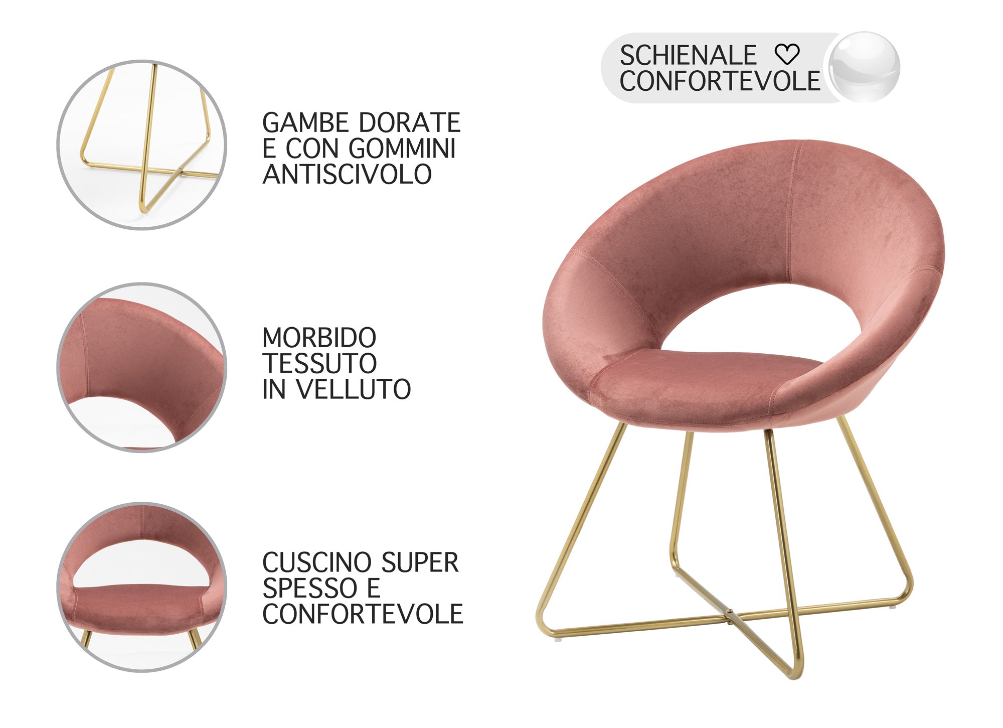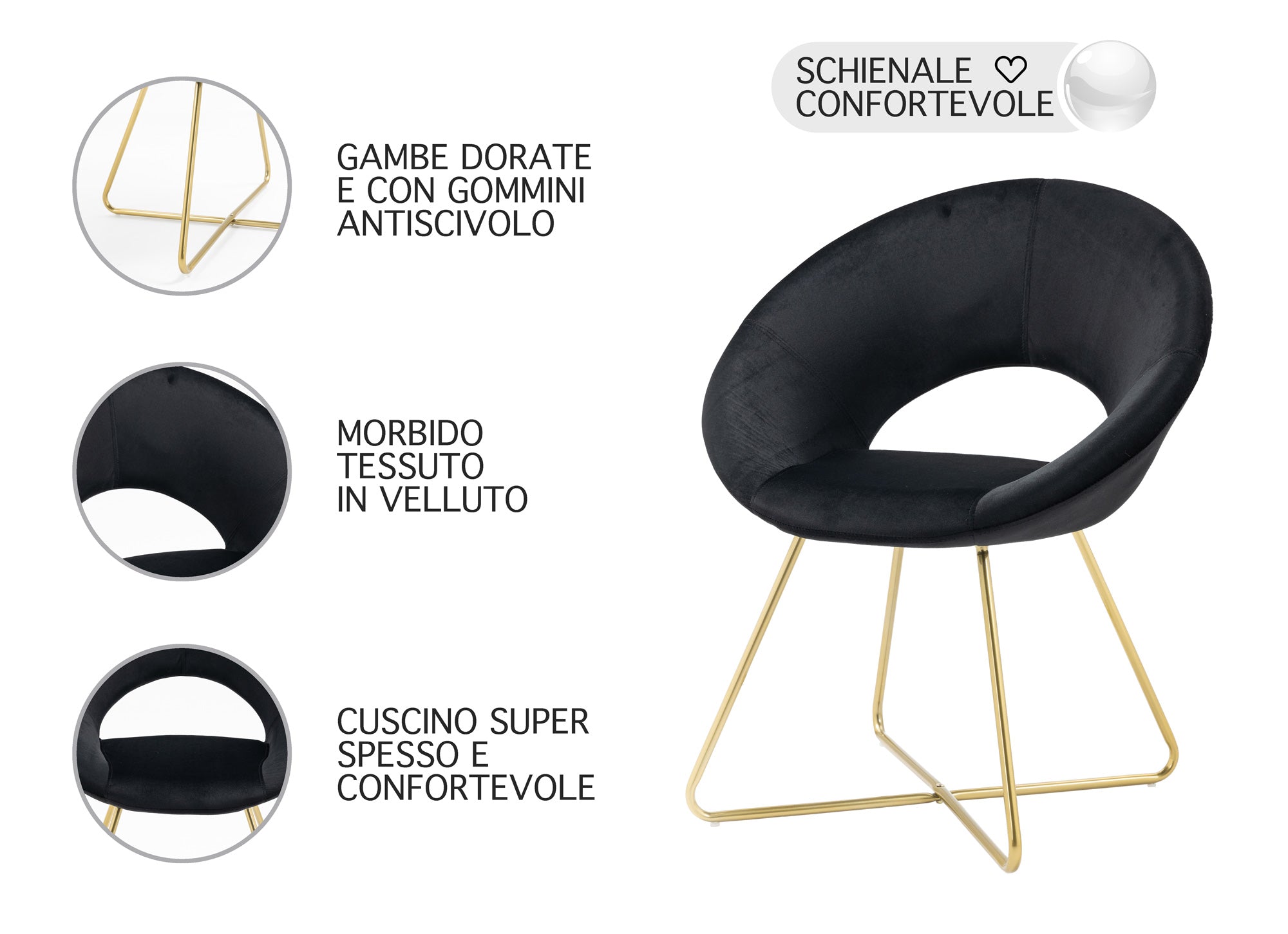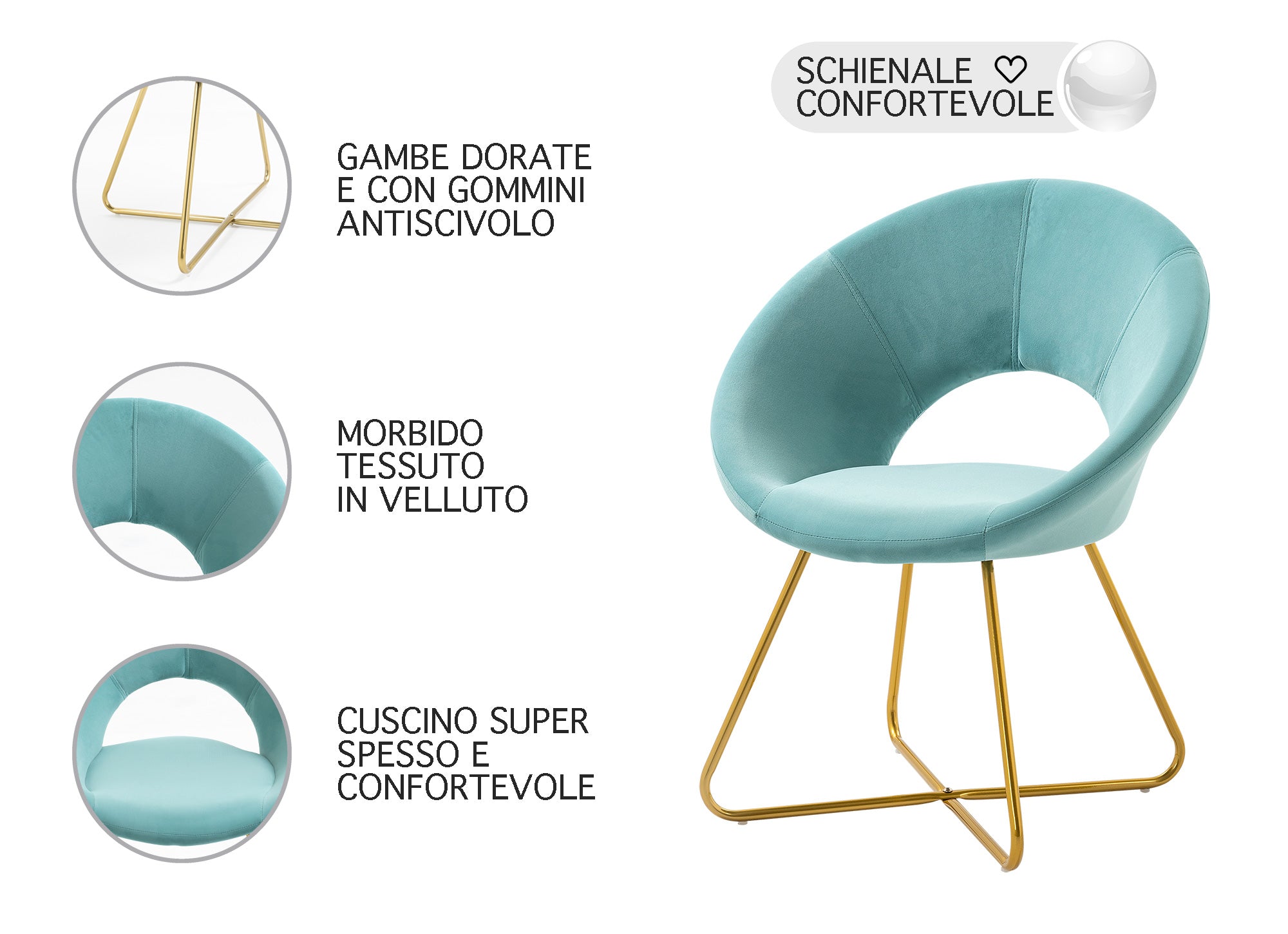 ✅DESIGN MODERNO: Il design elegante e raffinato di questa sedia la rende perfetta per arredare ogni ambiente in cui viene collocata. L’accoppiamento con le gambe in metallo placcato oro la rende molto elegante e moderna