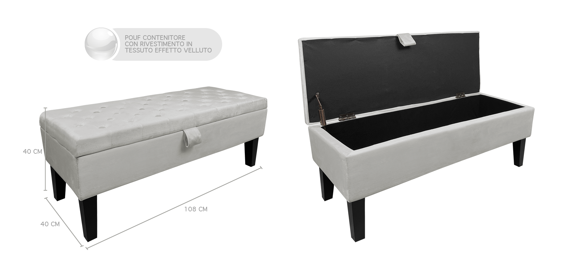 ✅ Praticità: Dotata nel sotto seduta di un ampio spazio per contenere oggetti come, telecomandi , copertine, scarpe ecc
