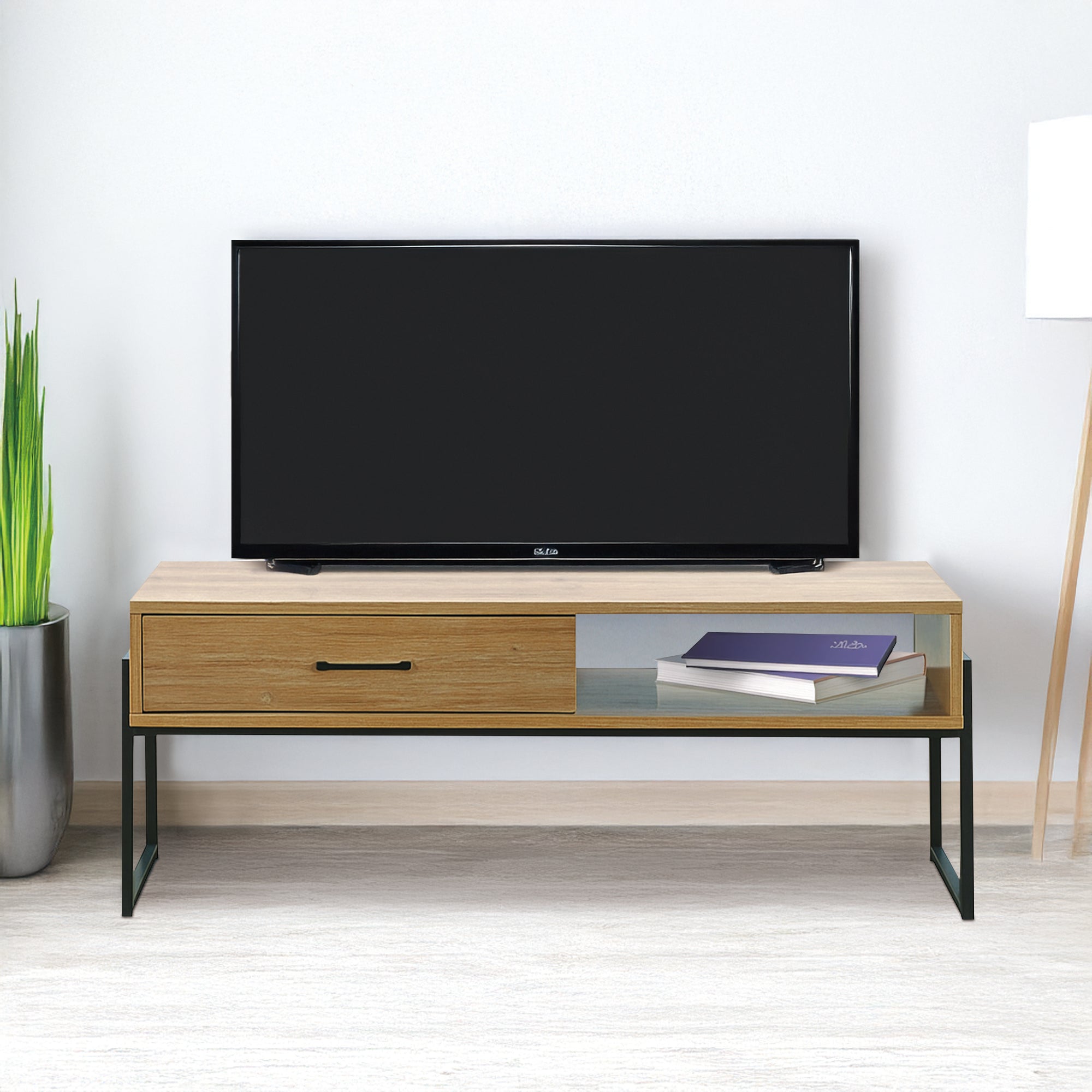 Mobile Porta Tv Stile Industrial Fino 60 Pollici Mobiletto Basso Per Televisore Con Cassetto Porta Oggetti In Legno Di Rovere Soggiorno Davanti Divano Camera Letto