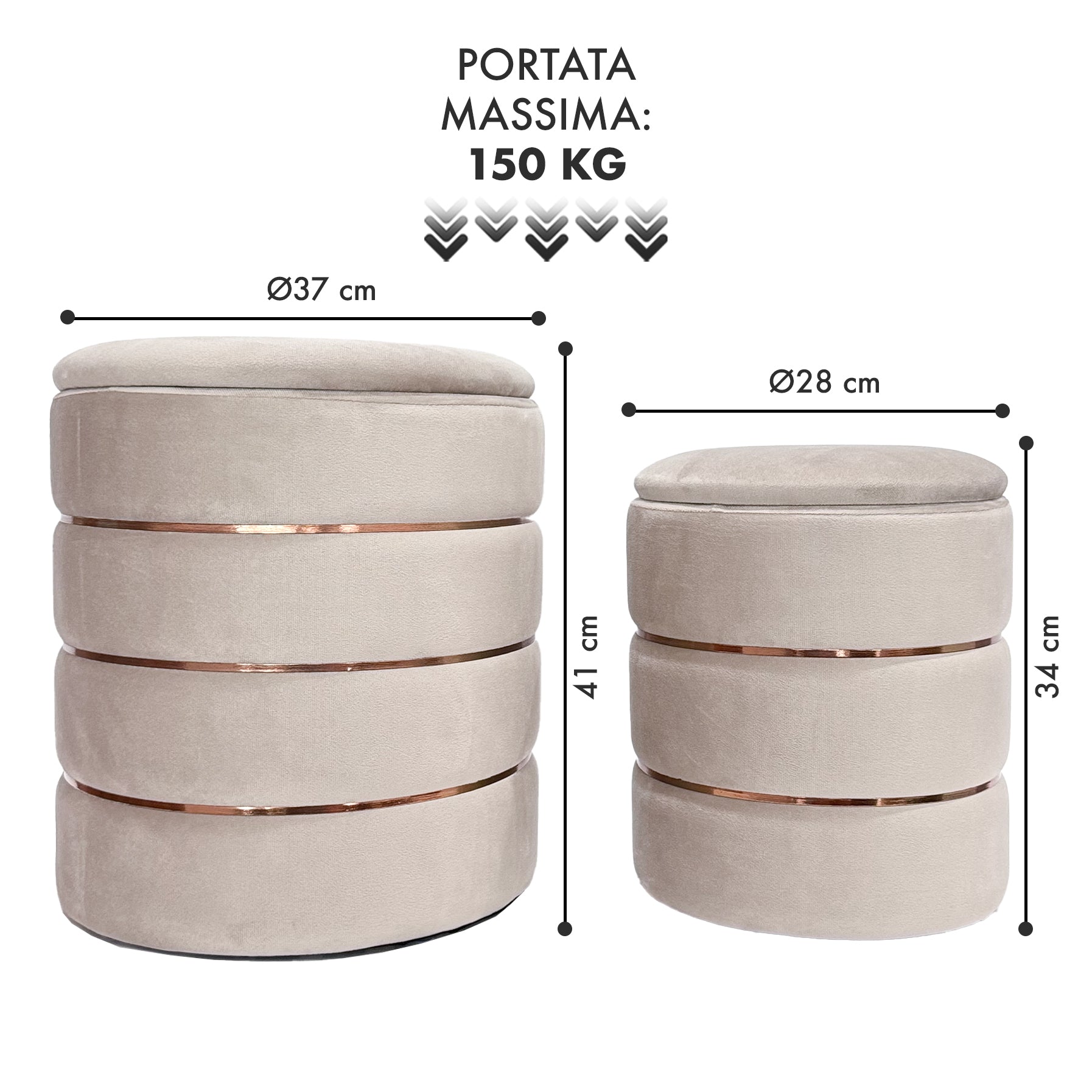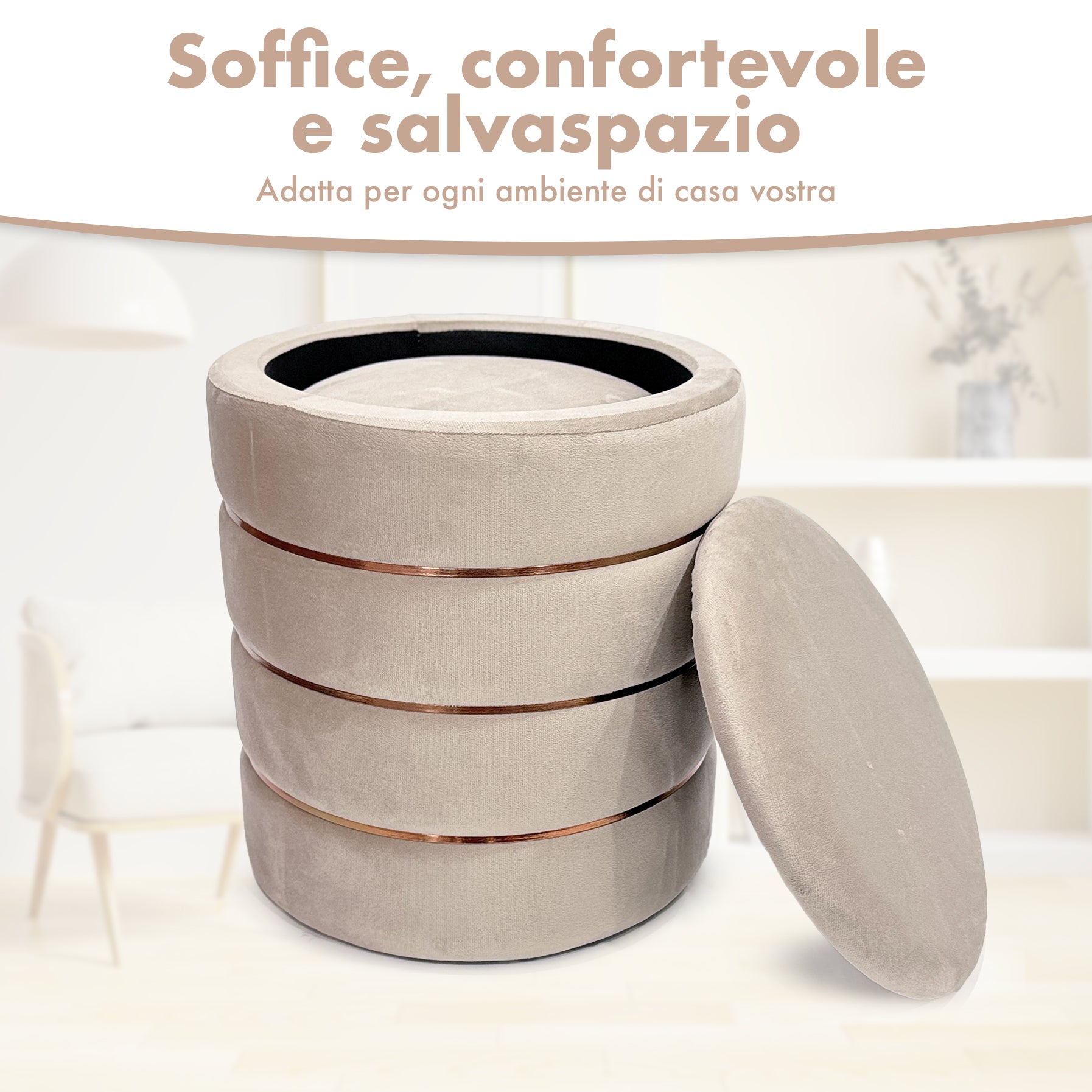 ✔️Set 2 pouf contenitori – Include un pouf grande (37x41 cm) e uno medio (28x34 cm), entrambi con vano interno per riporre piccoli oggetti.