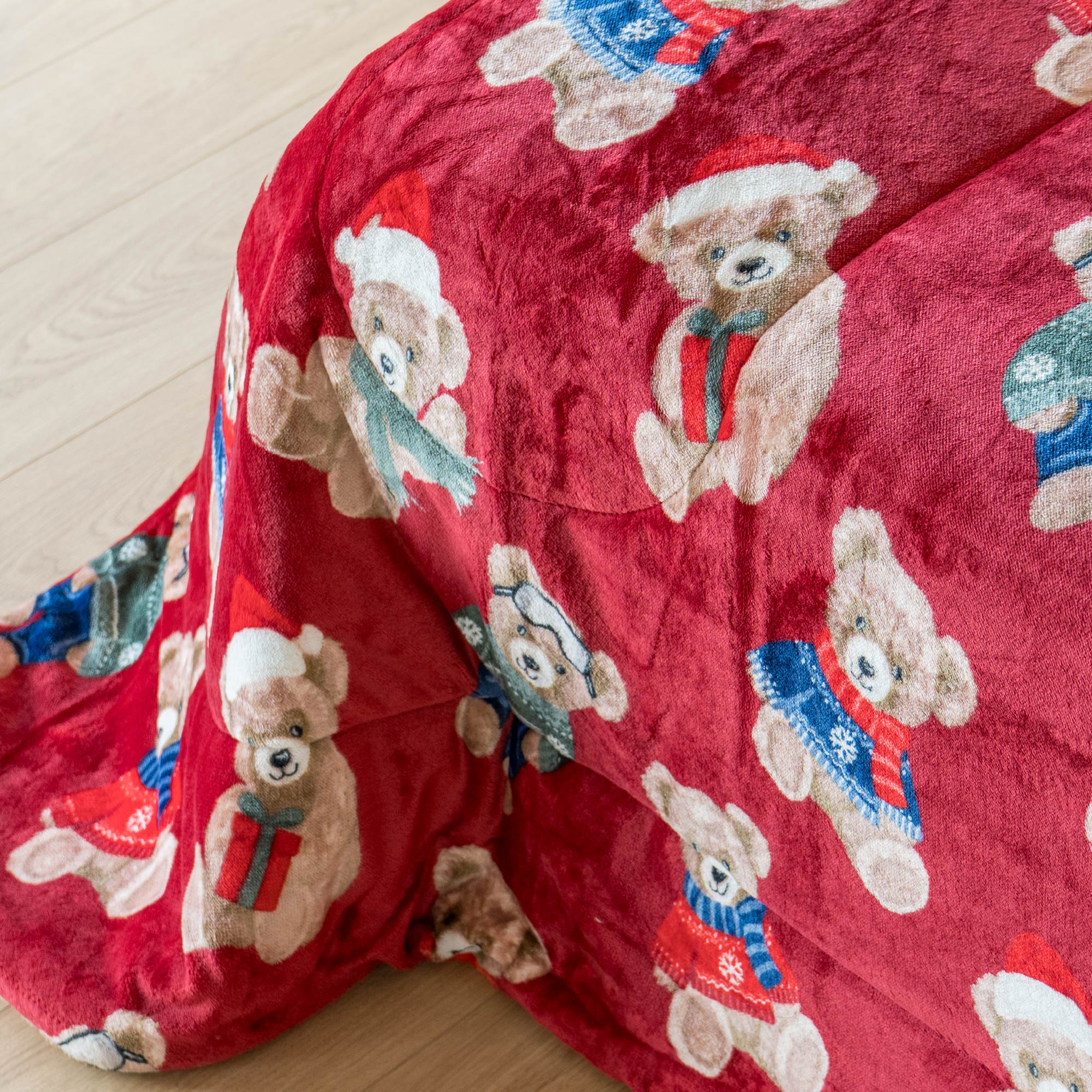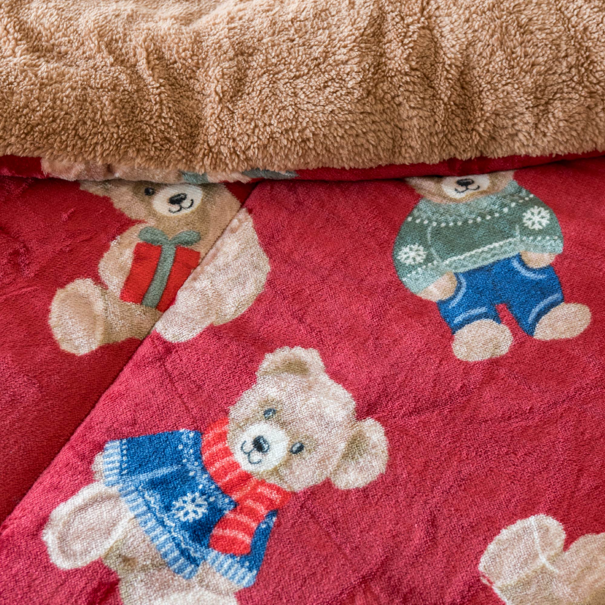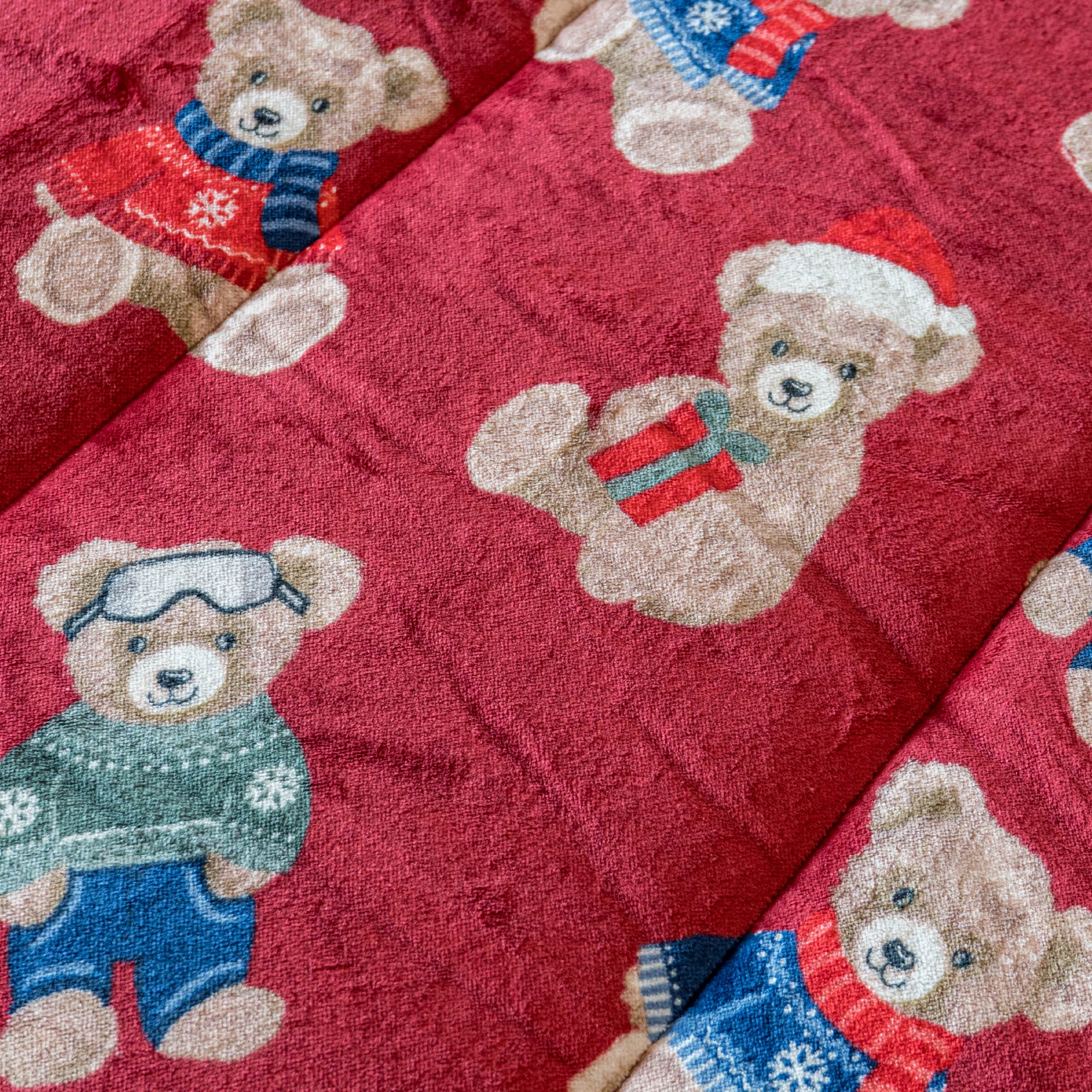 Trapunta Invernale Morbida e Calda: Coperta perfetta per l’inverno con dolce fantasia orsetti su fondo rosso, ideale per aggiungere calore e allegria alla camera da letto.