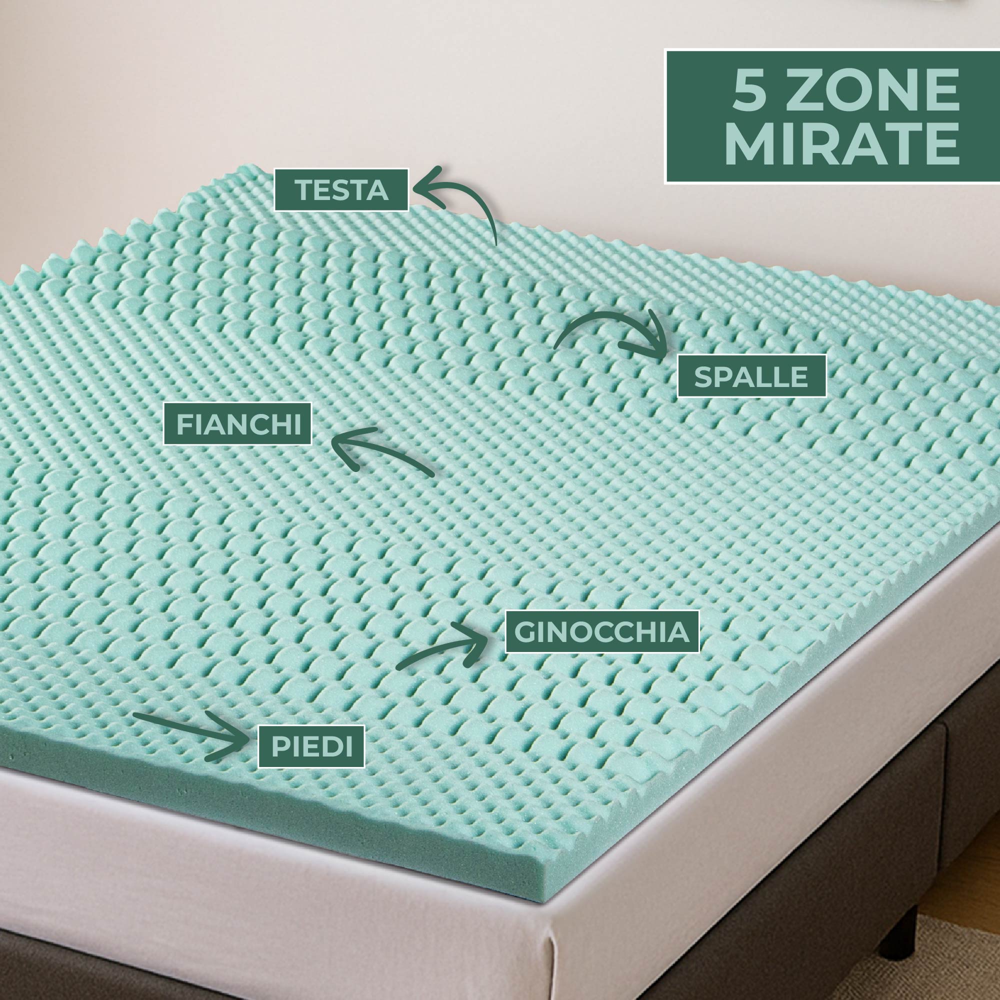 Topper Memory Foam 5 Zone 5 cm con Rivestimento Aloe Vera Sfoderabile Made in Italy Il Gruppone