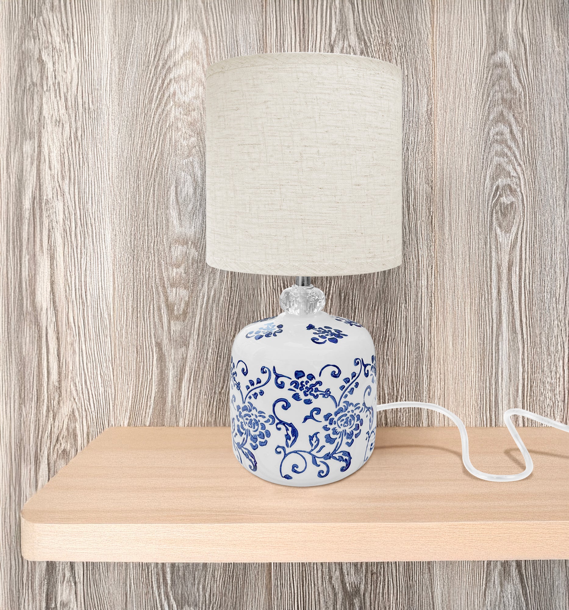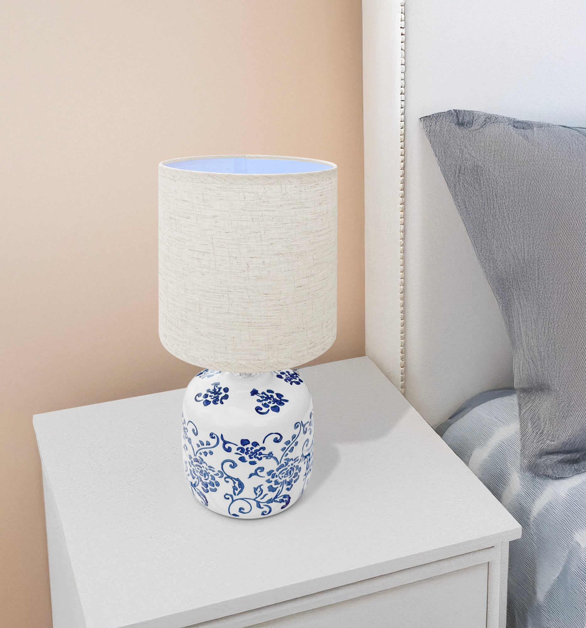Lampada Moderna Da Comodino Con Decorazione Fiori Orientali Certificata RoHS In Ceramica Con Paralume 45W Scrivania Tavolo Abat Jour