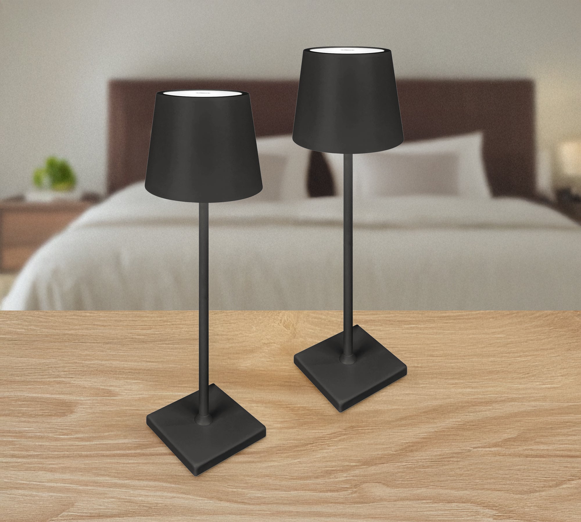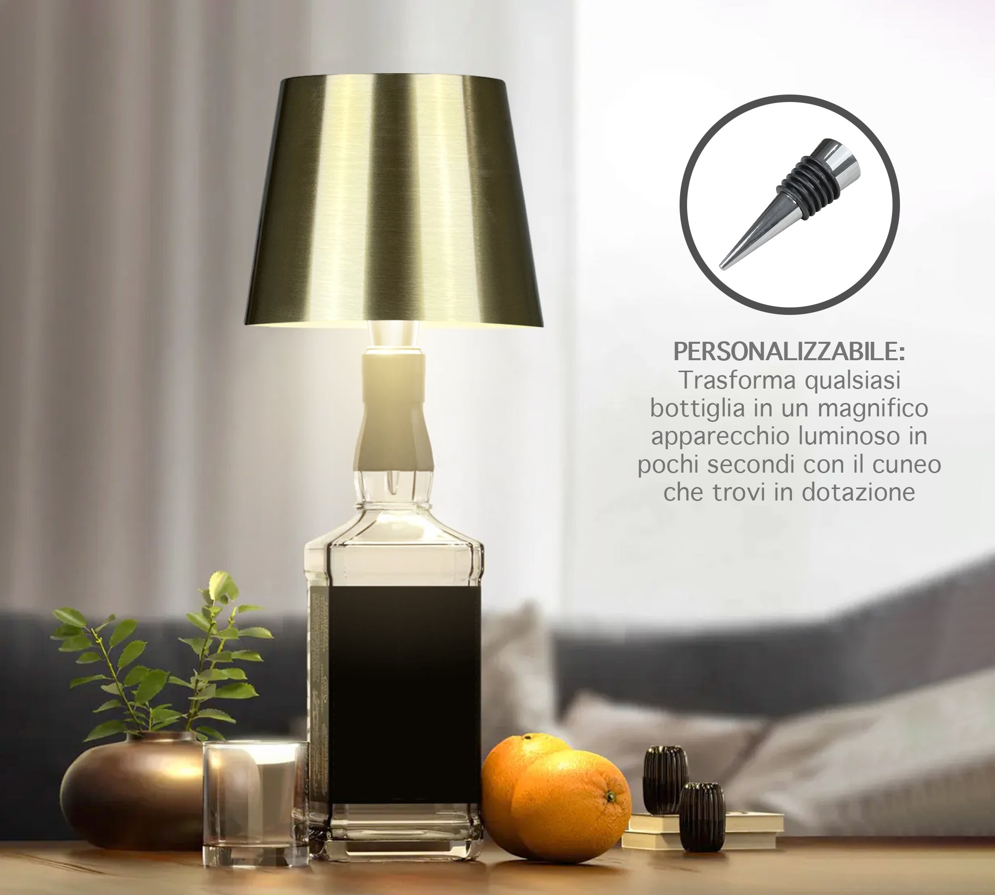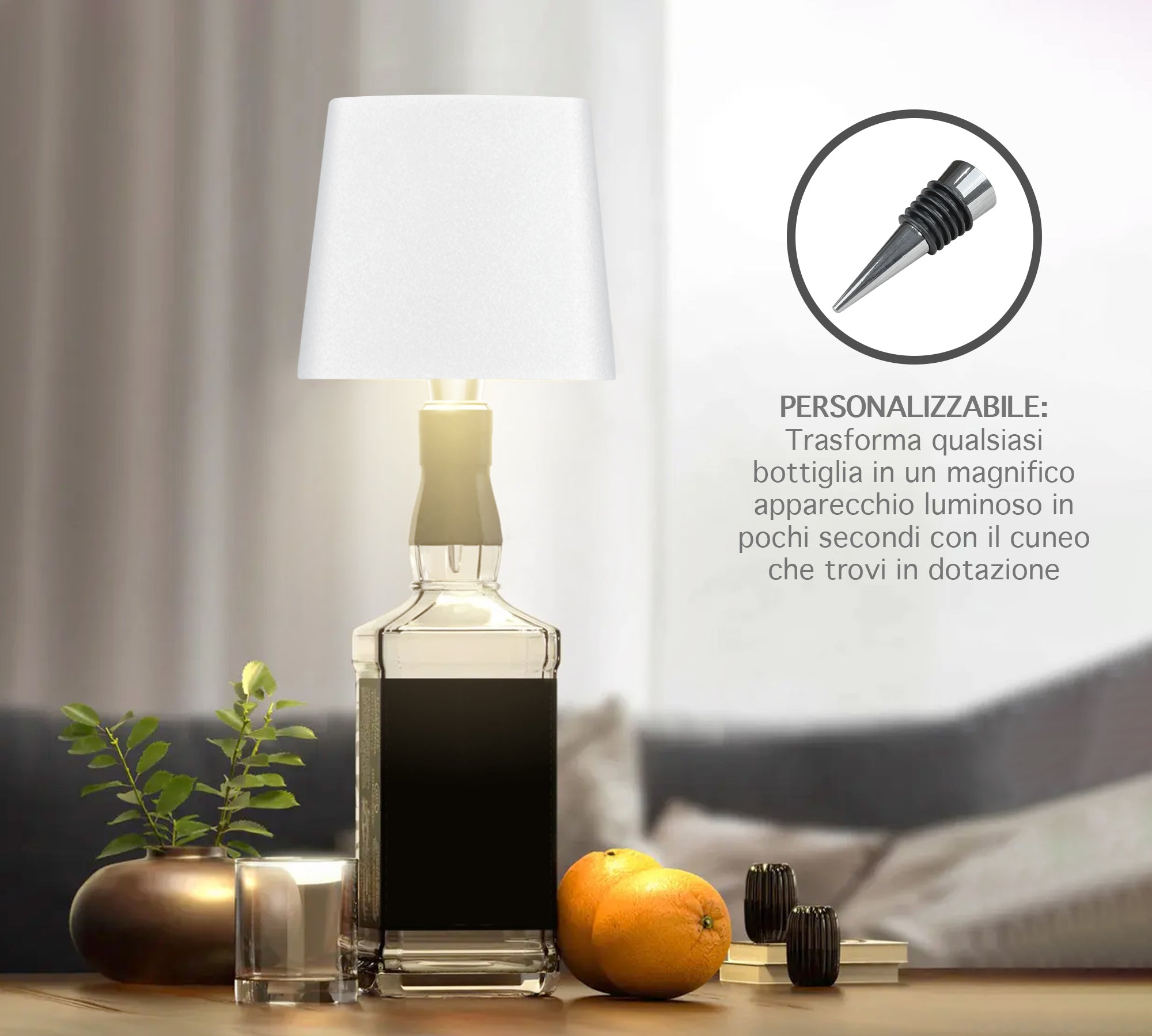 Coppia Di Lampada Da Tavolo LED Set 2 Pezzi Design Moderno Senza Fili Ricaricabile Controllo Touch Selezione Colore Intensità Dimmerabile Altezza Regolabile Con Adattatore Per Bottiglia 3000/4500/600K