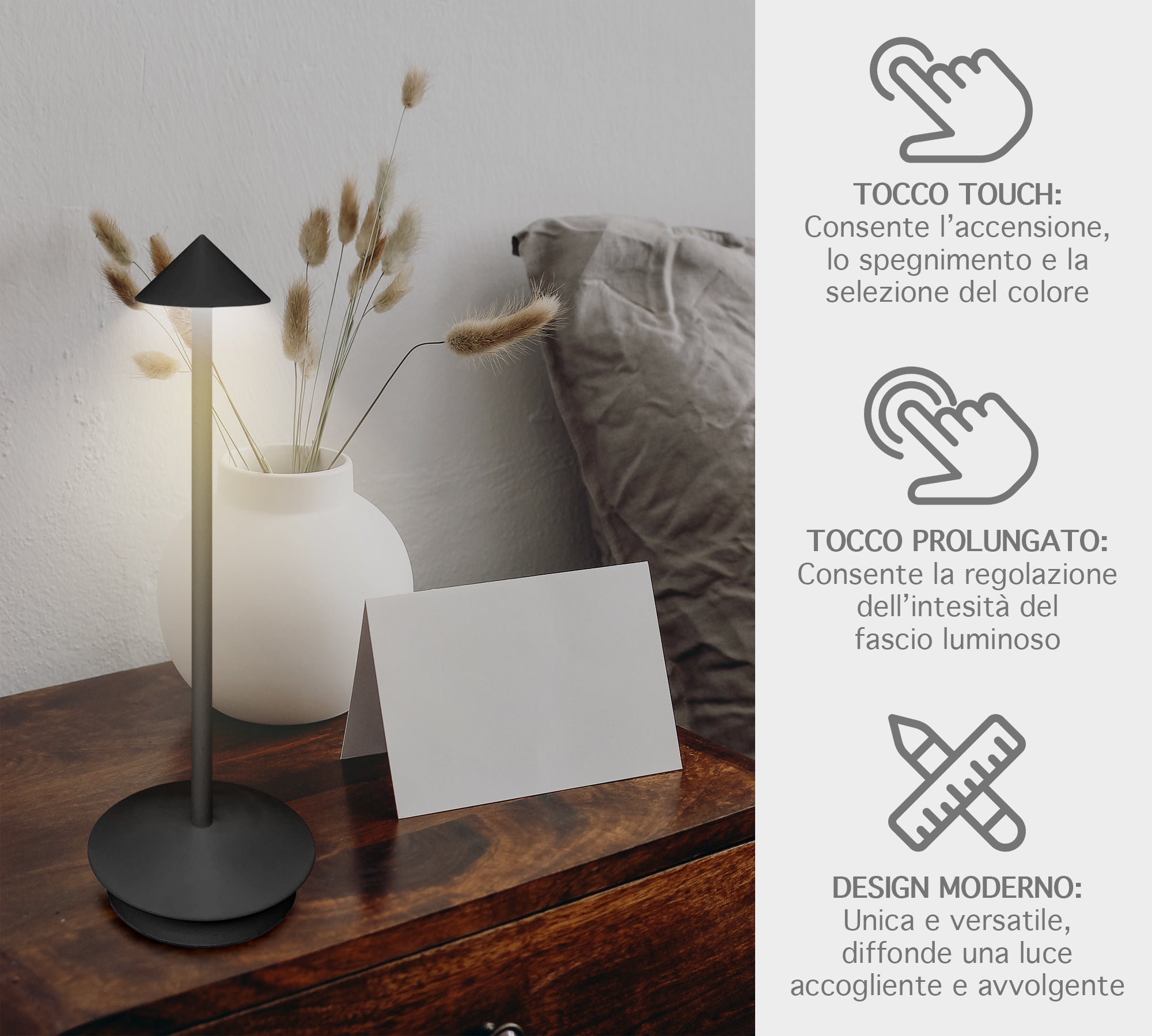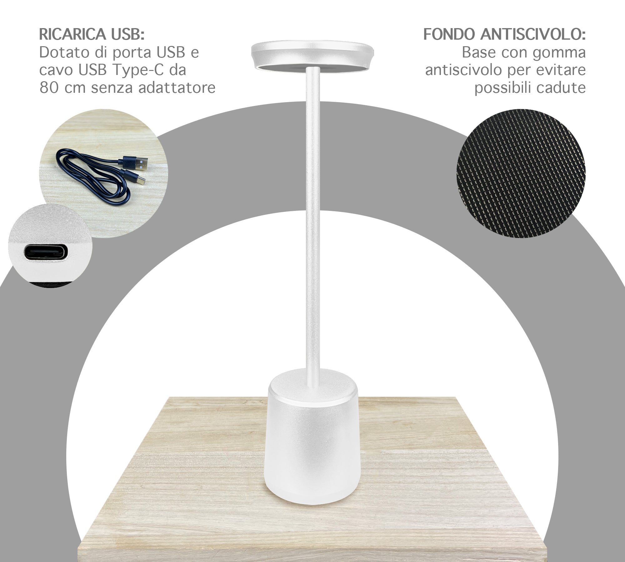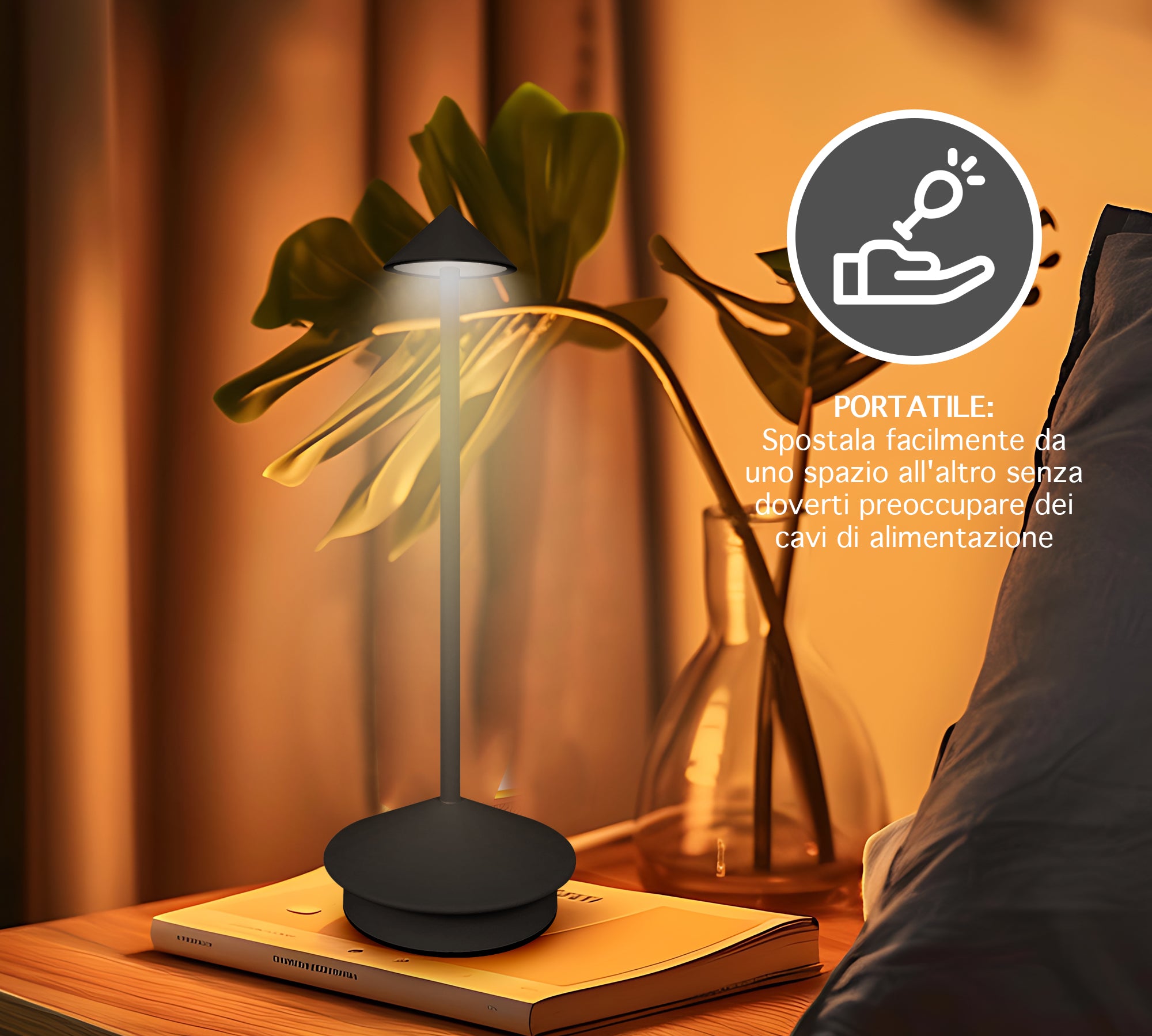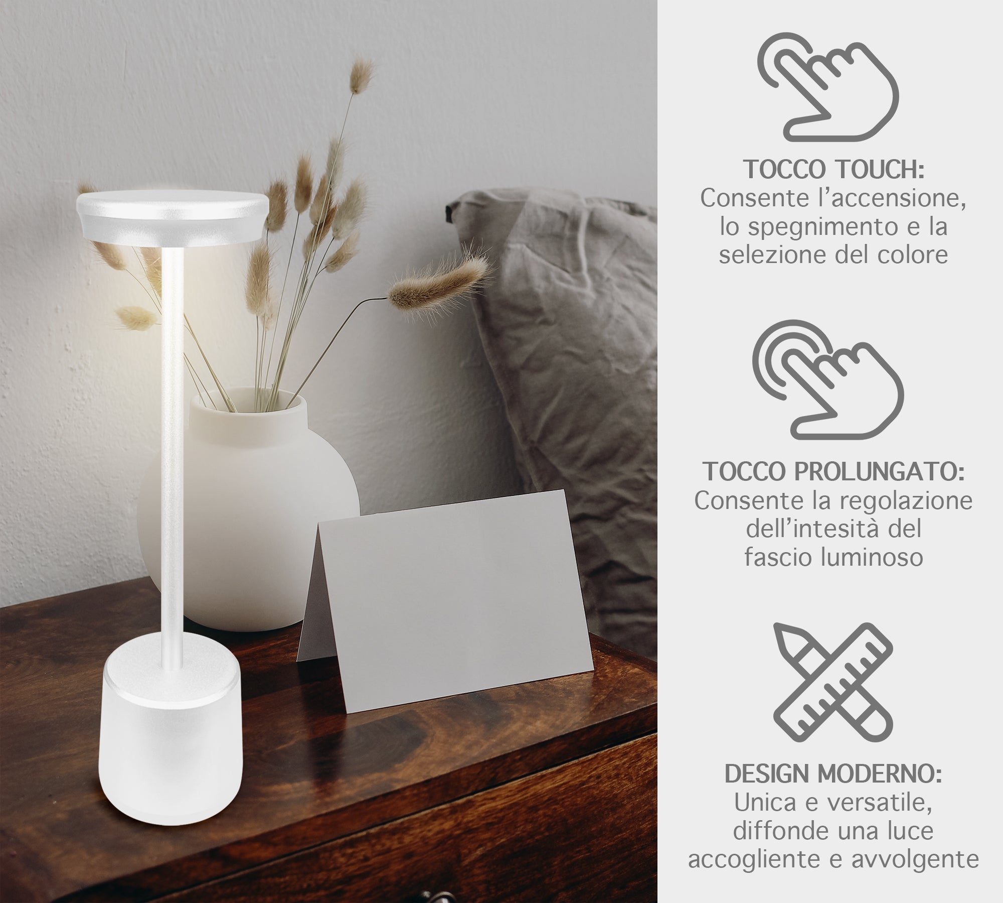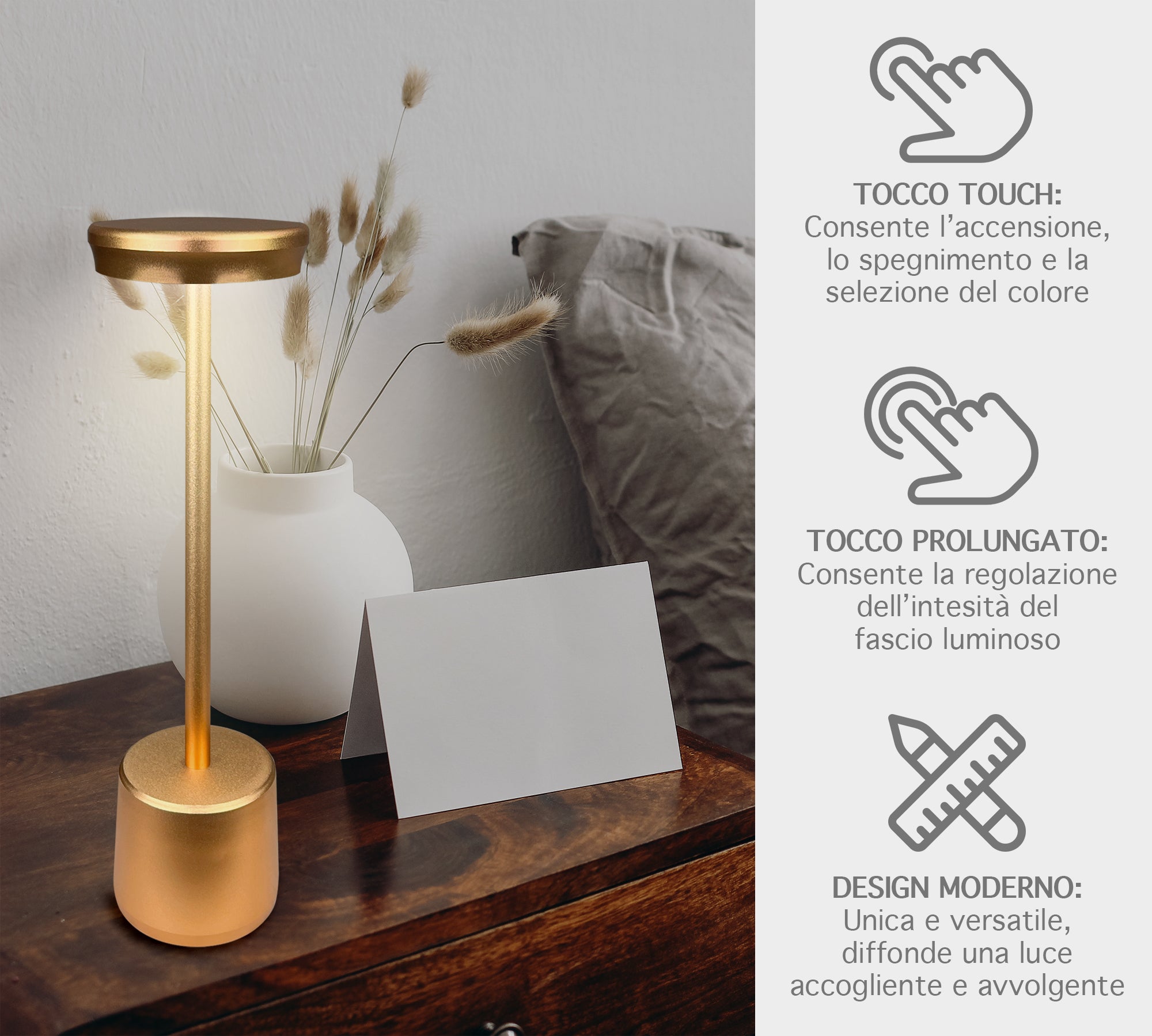 ✔️DESIGNE MODERNO: Bellissima Lampada a led dal design moderno e ricercato realizzata interamente in alluminio senza fili ideale per tavolo o come Abat Jour da Comodino utilizzabile sia per abitazioni o attività commerciali, prodotto di alta qualità.