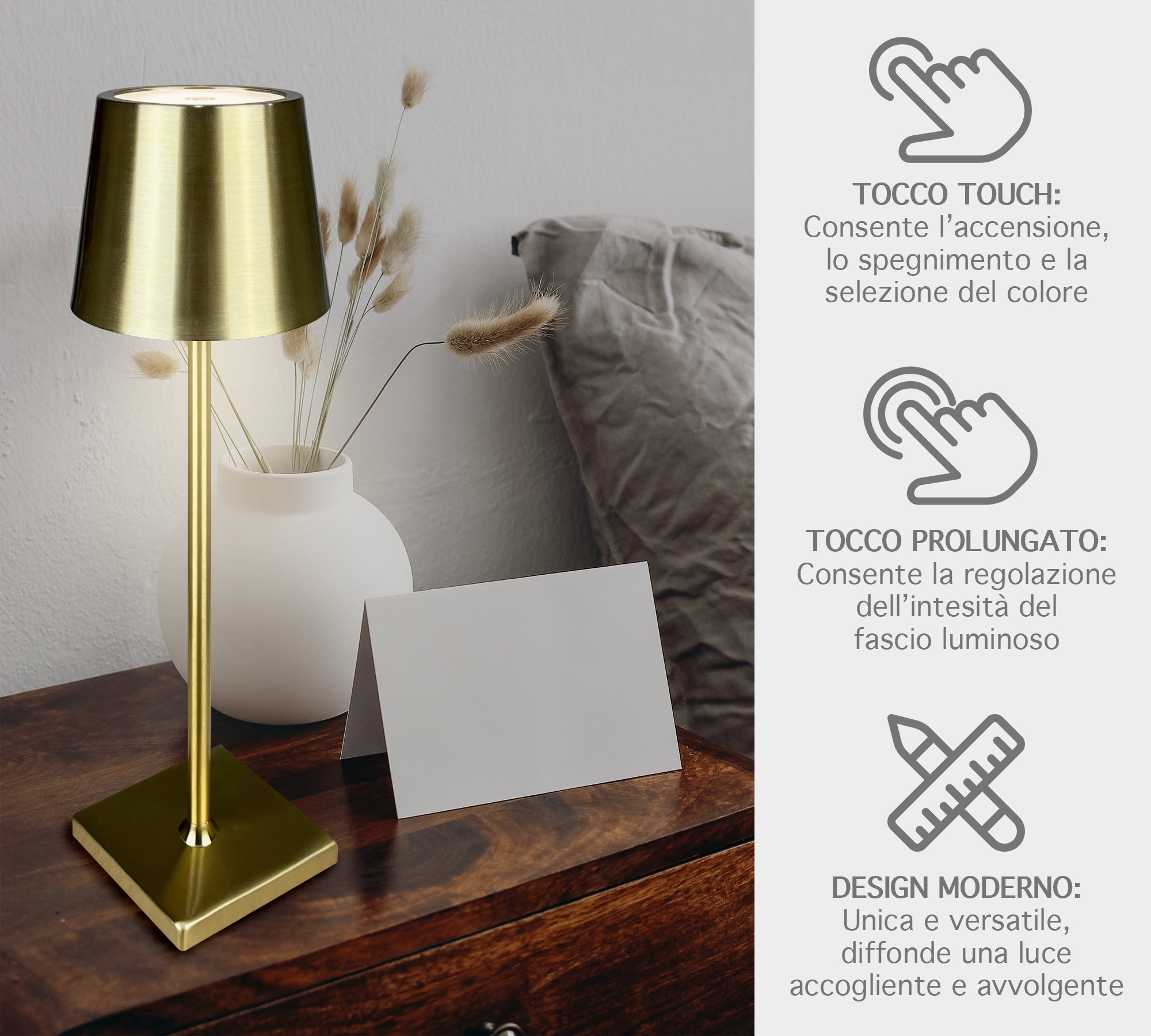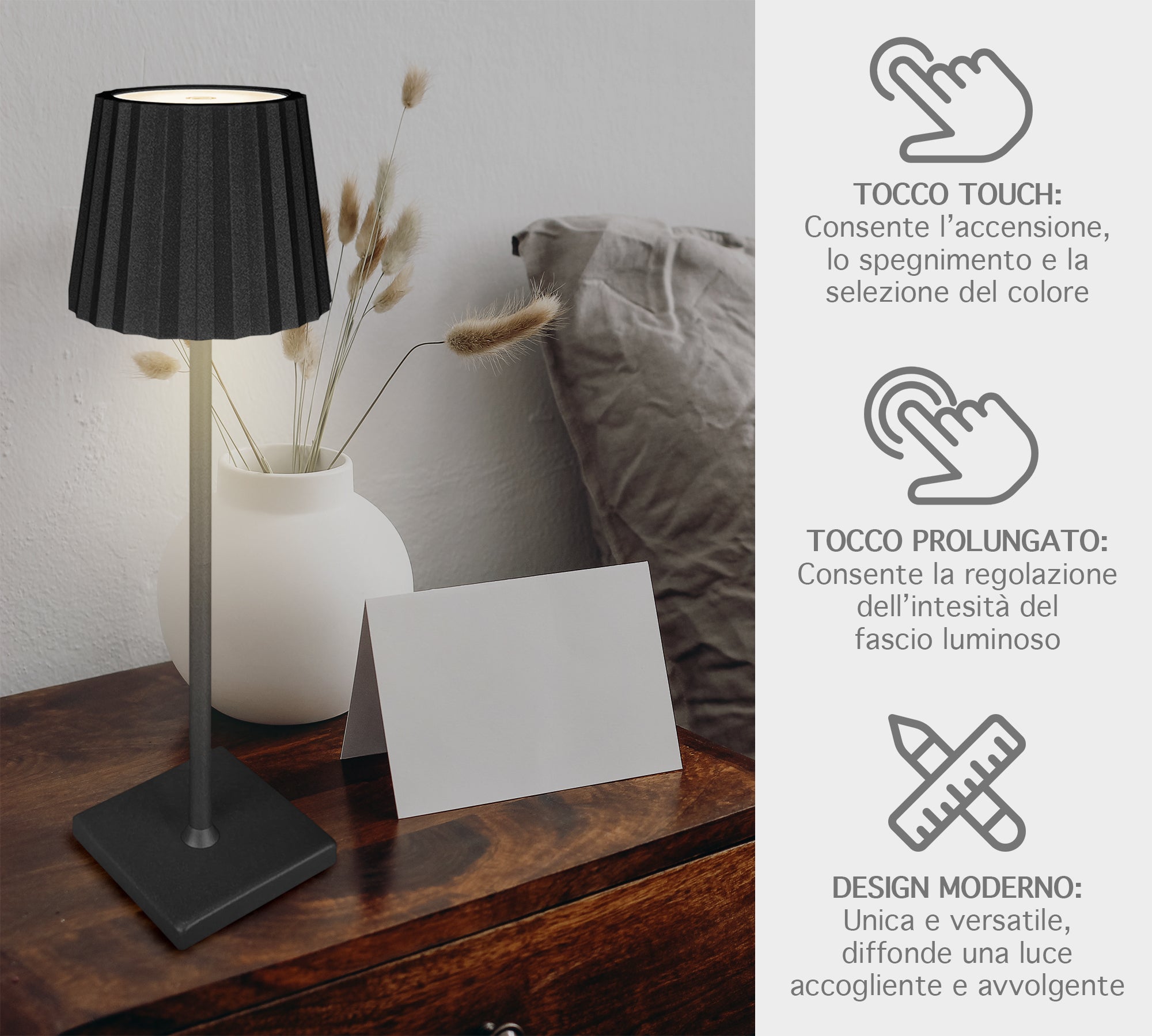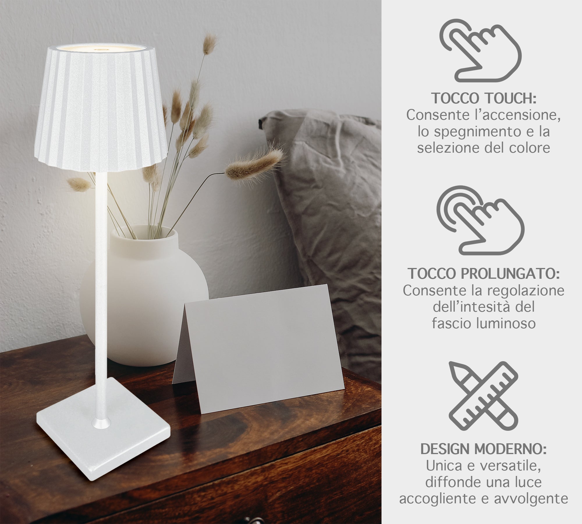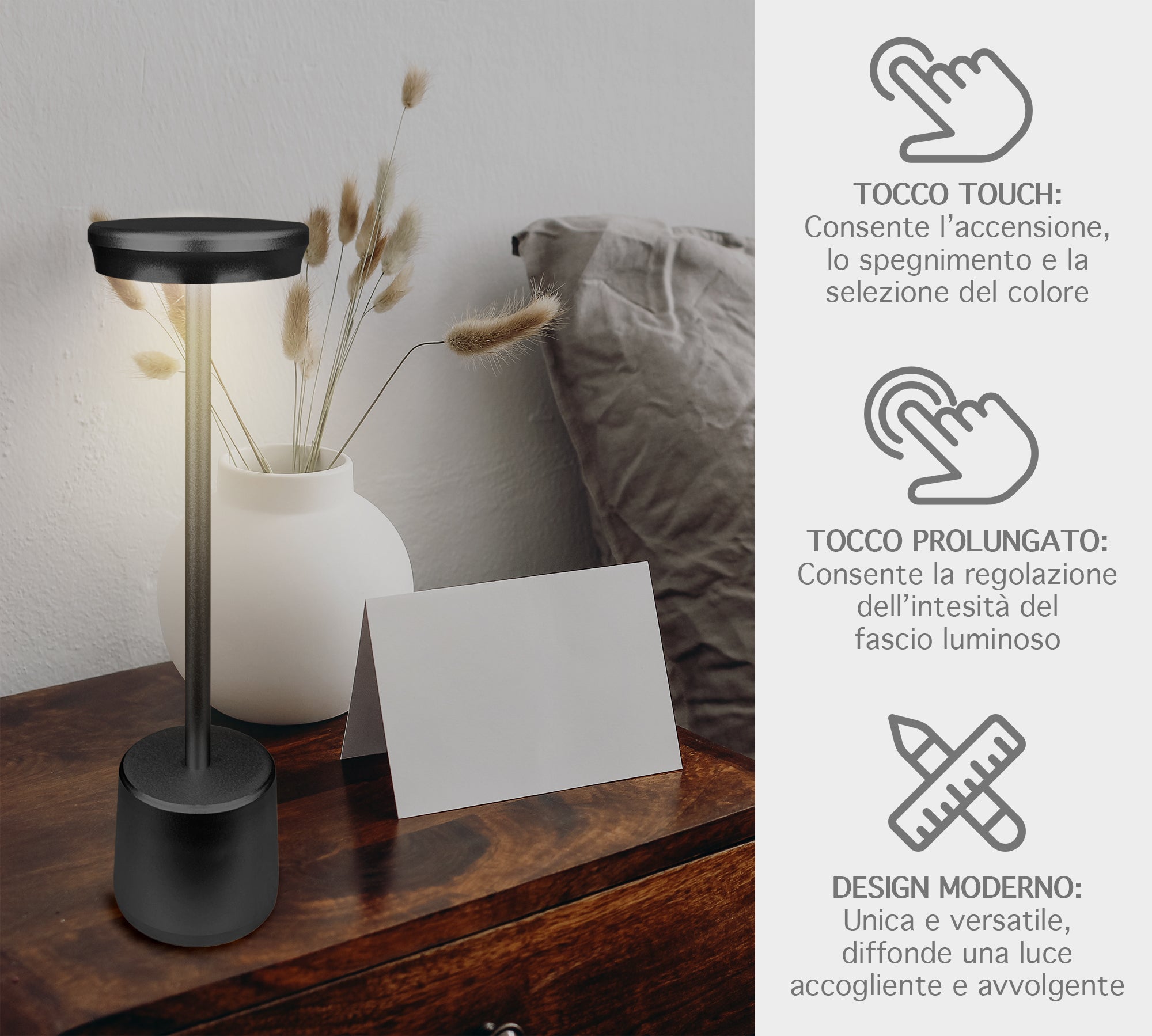 ✔️DESIGNE MODERNO: Bellissima Lampada a led dal design moderno e ricercato realizzata interamente in alluminio senza fili ideale per tavolo o come Abat Jour da Comodino utilizzabile sia per abitazioni o attività commerciali, prodotto di alta qualità.