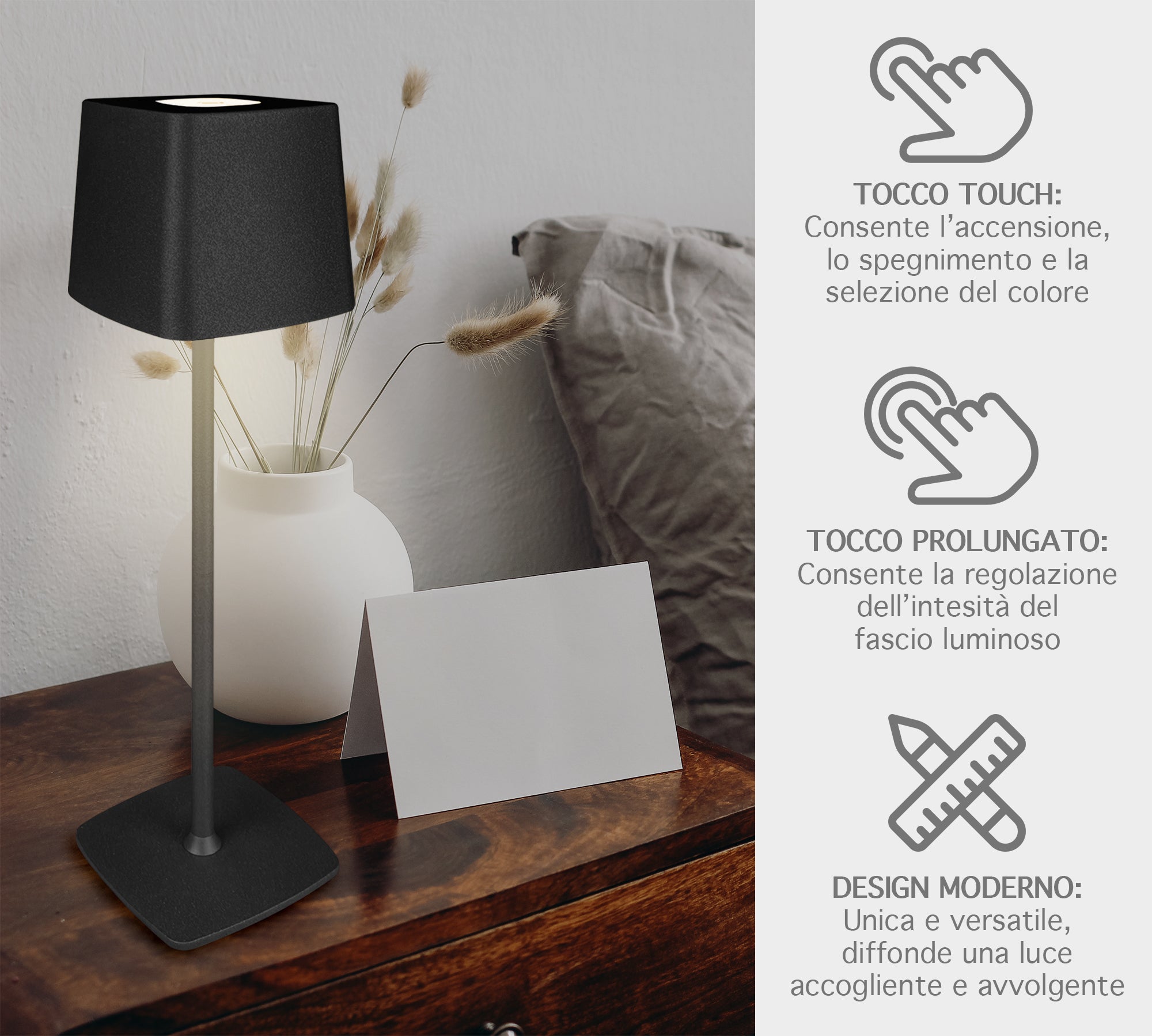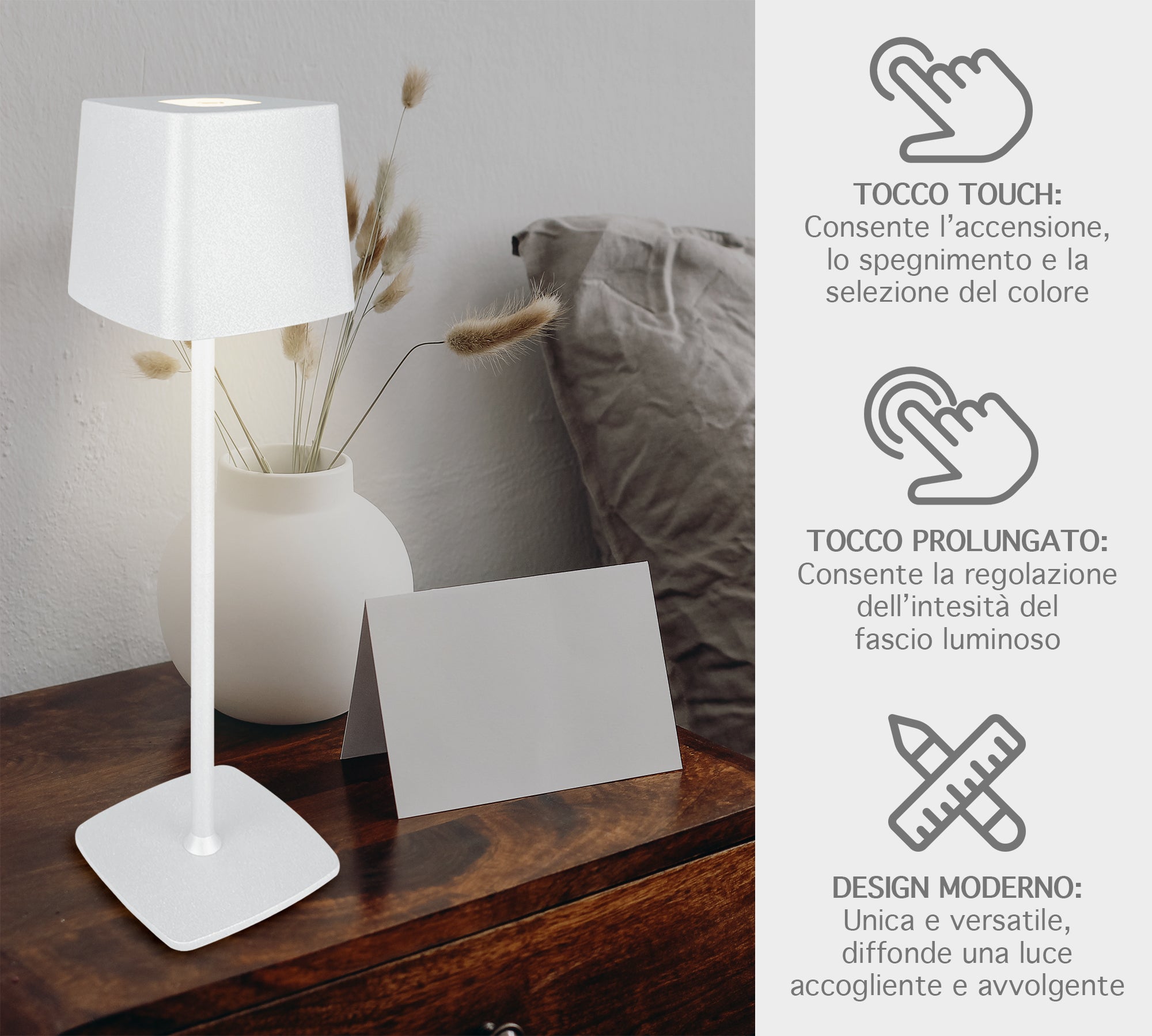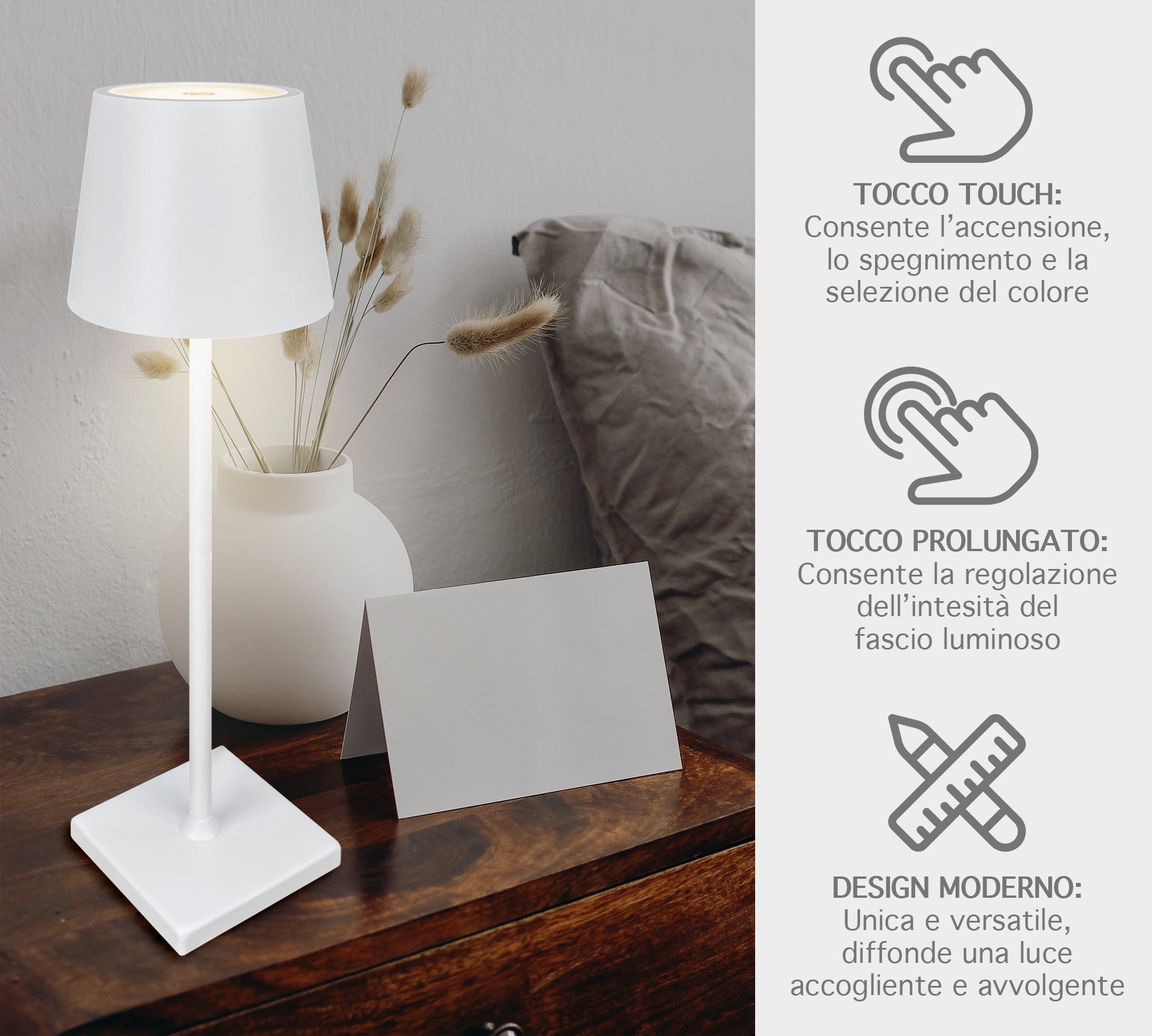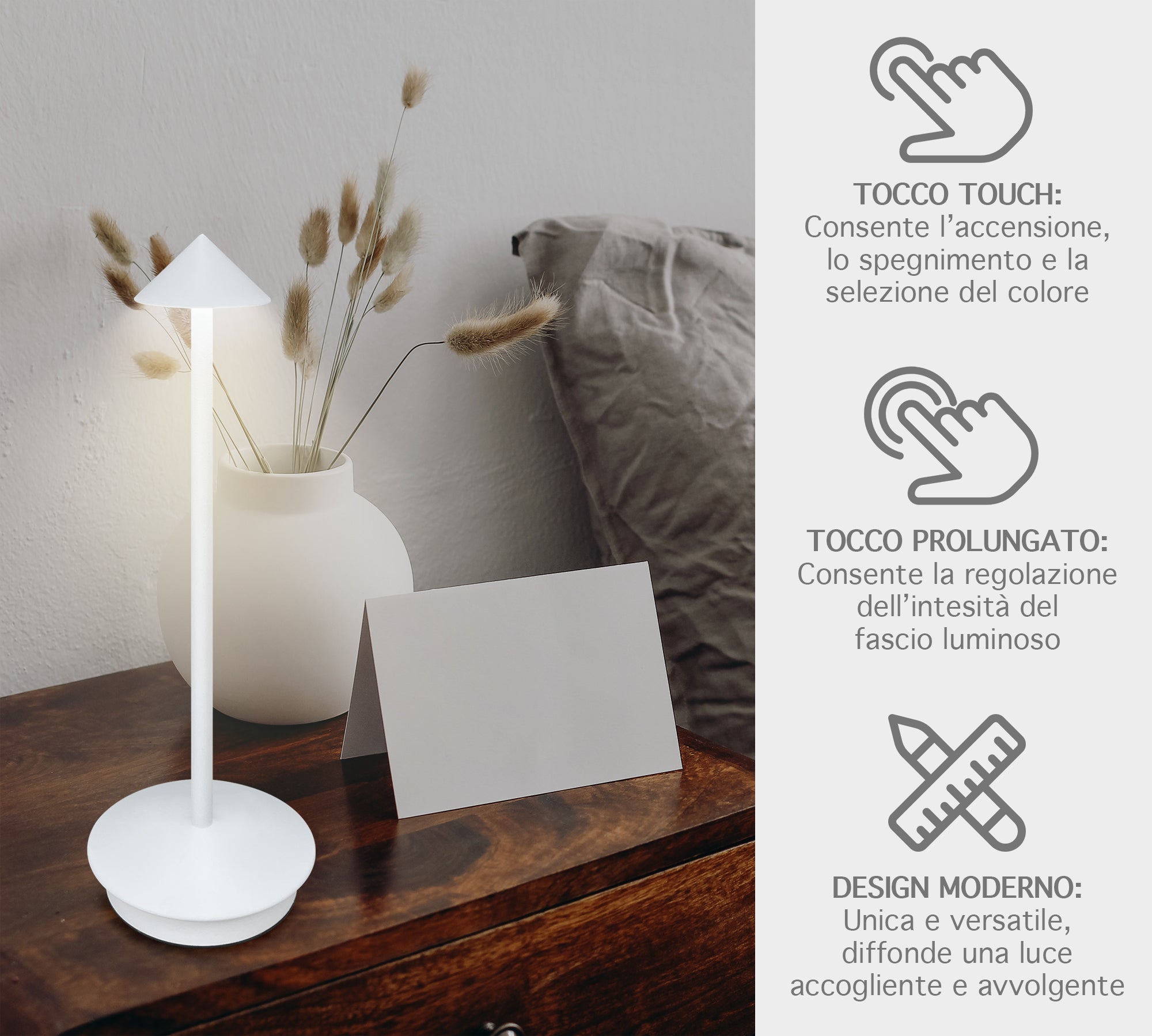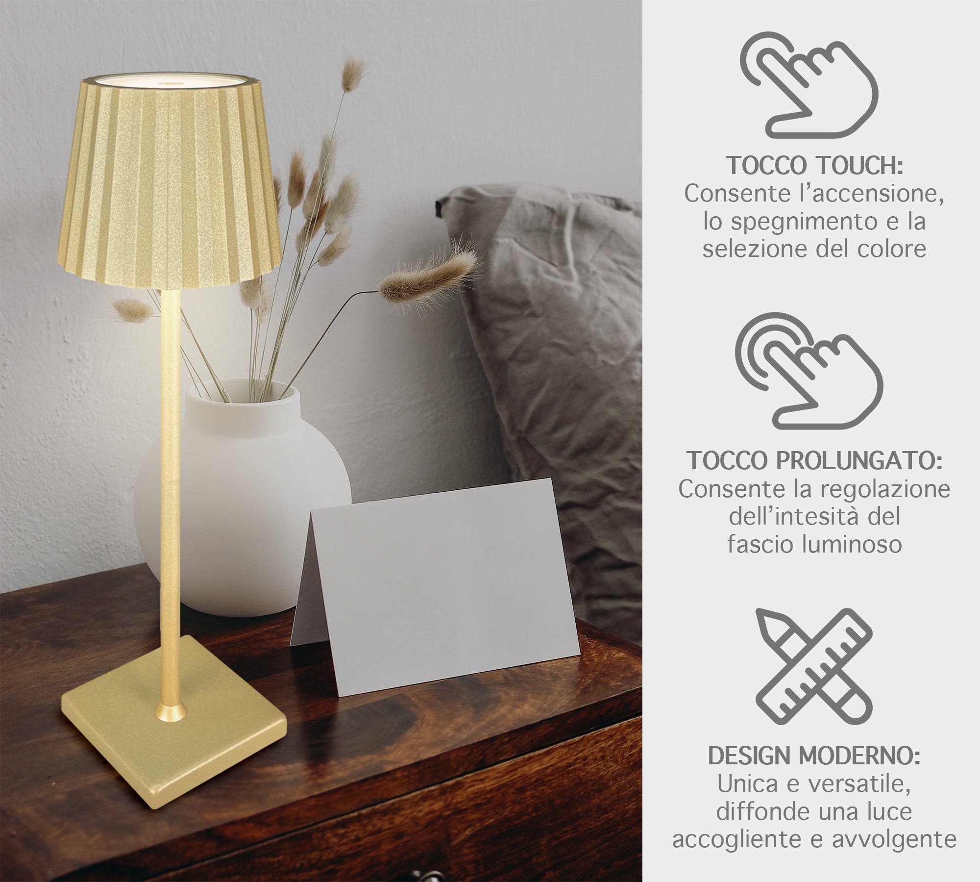 ✔️DESIGNE MODERNO: Bellissima Lampada a led dal design moderno e ricercato realizzata interamente in alluminio senza fili ideale per tavolo o come Abat Jour da Comodino utilizzabile sia per abitazioni o attività commerciali, prodotto di alta qualità.