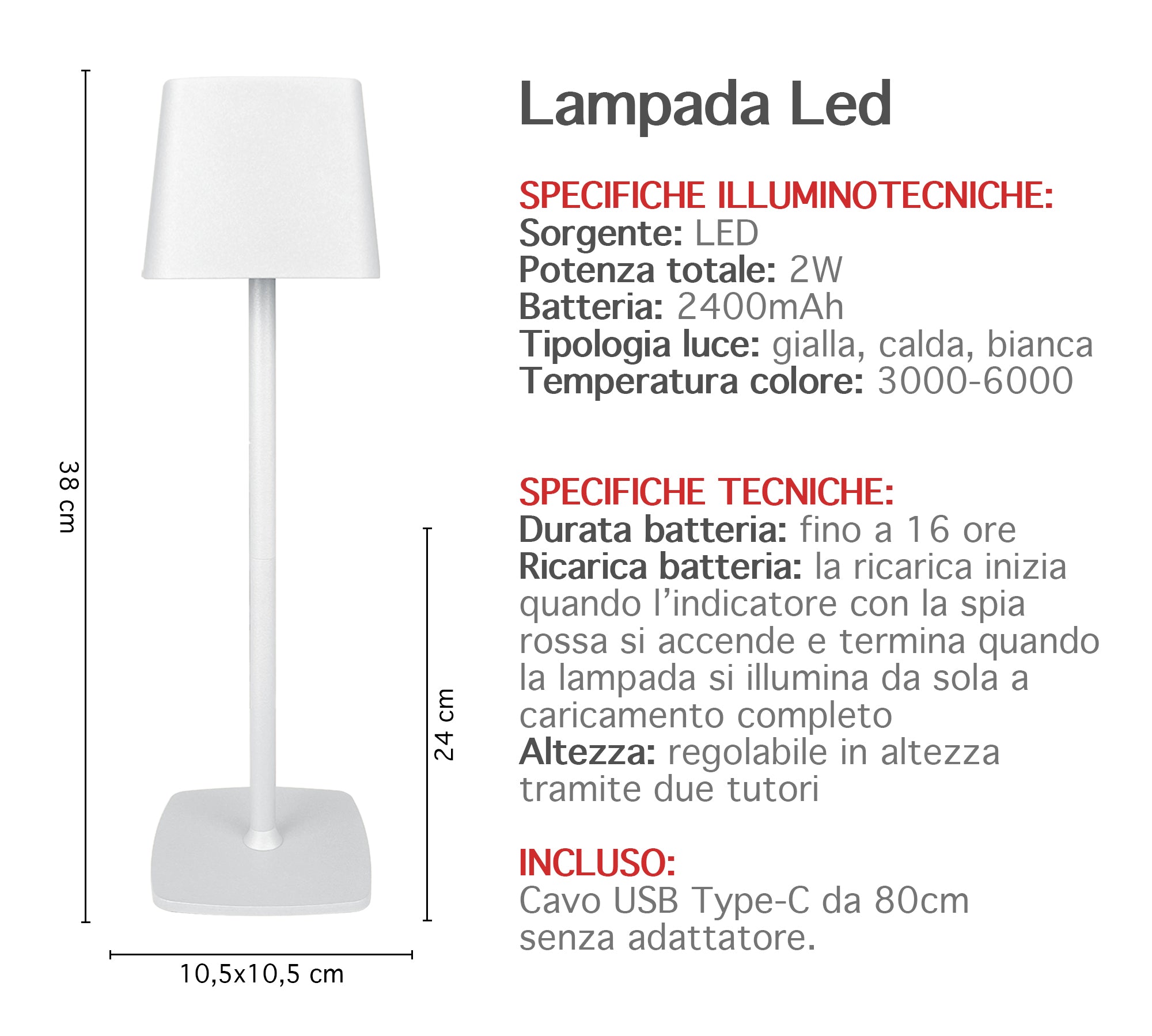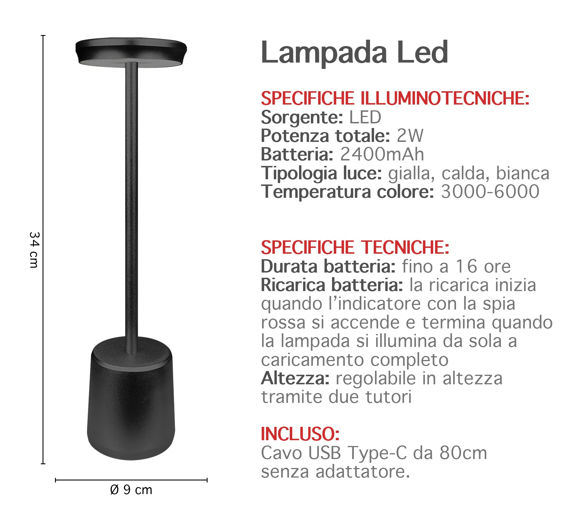 ✔️SENZA FILI RICARICABILE: Potenza 2W - Batteria 2400 MAH-Ricaricabile tramite cavo usb incluso TYPE C di 80 Cm Adattatore da Muro non Incluso - Tempo di ricarica 2/4 ore, durata fino a 16 ore.
