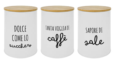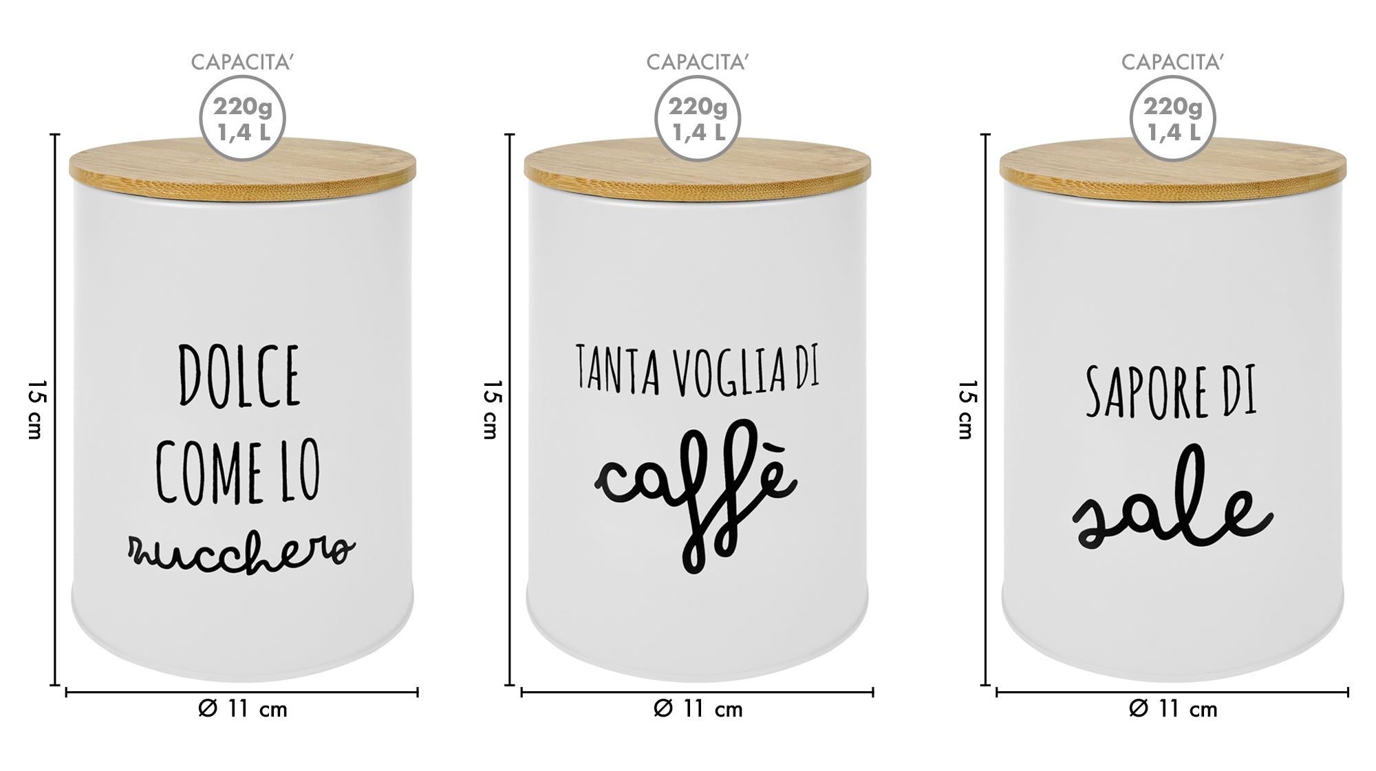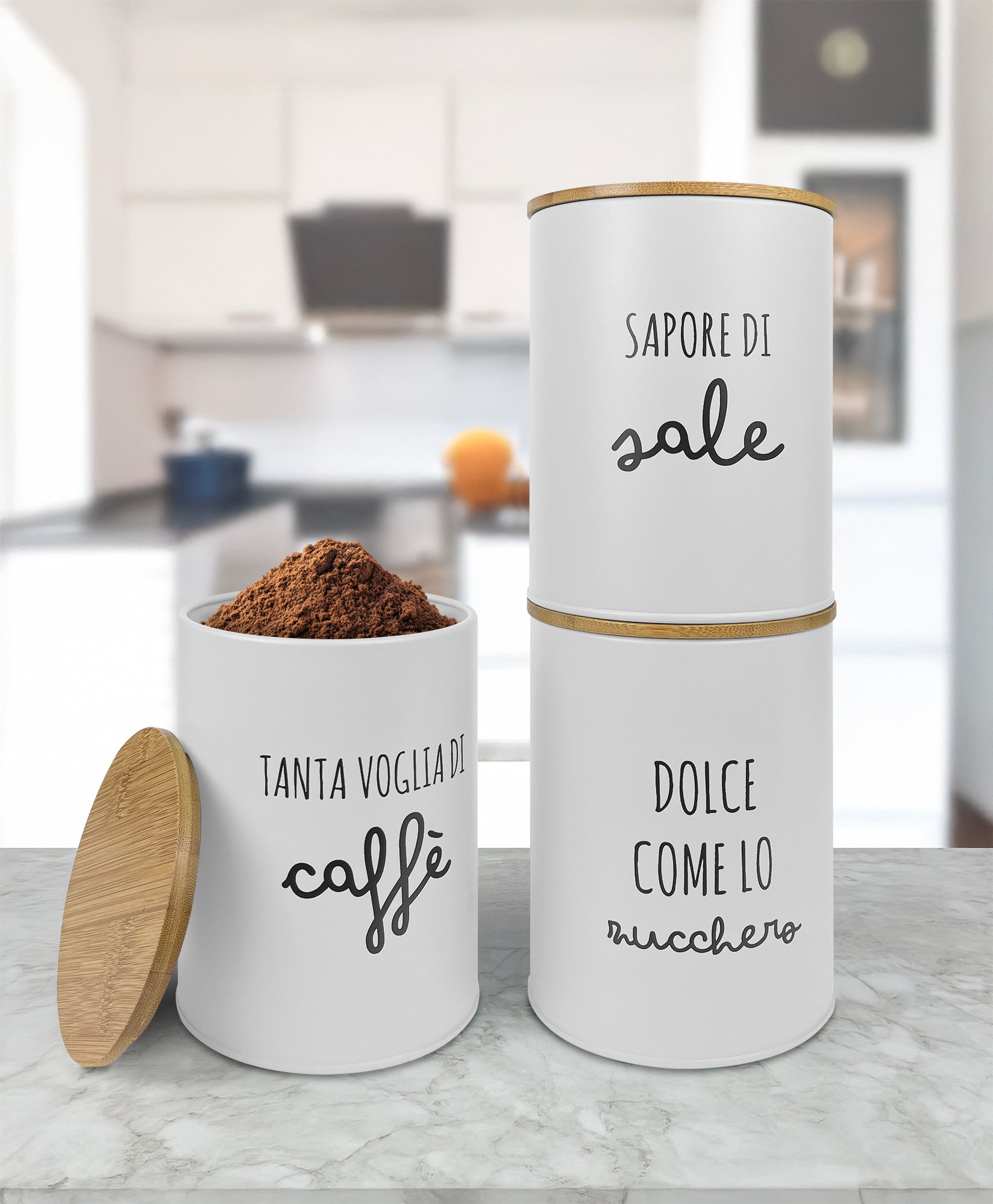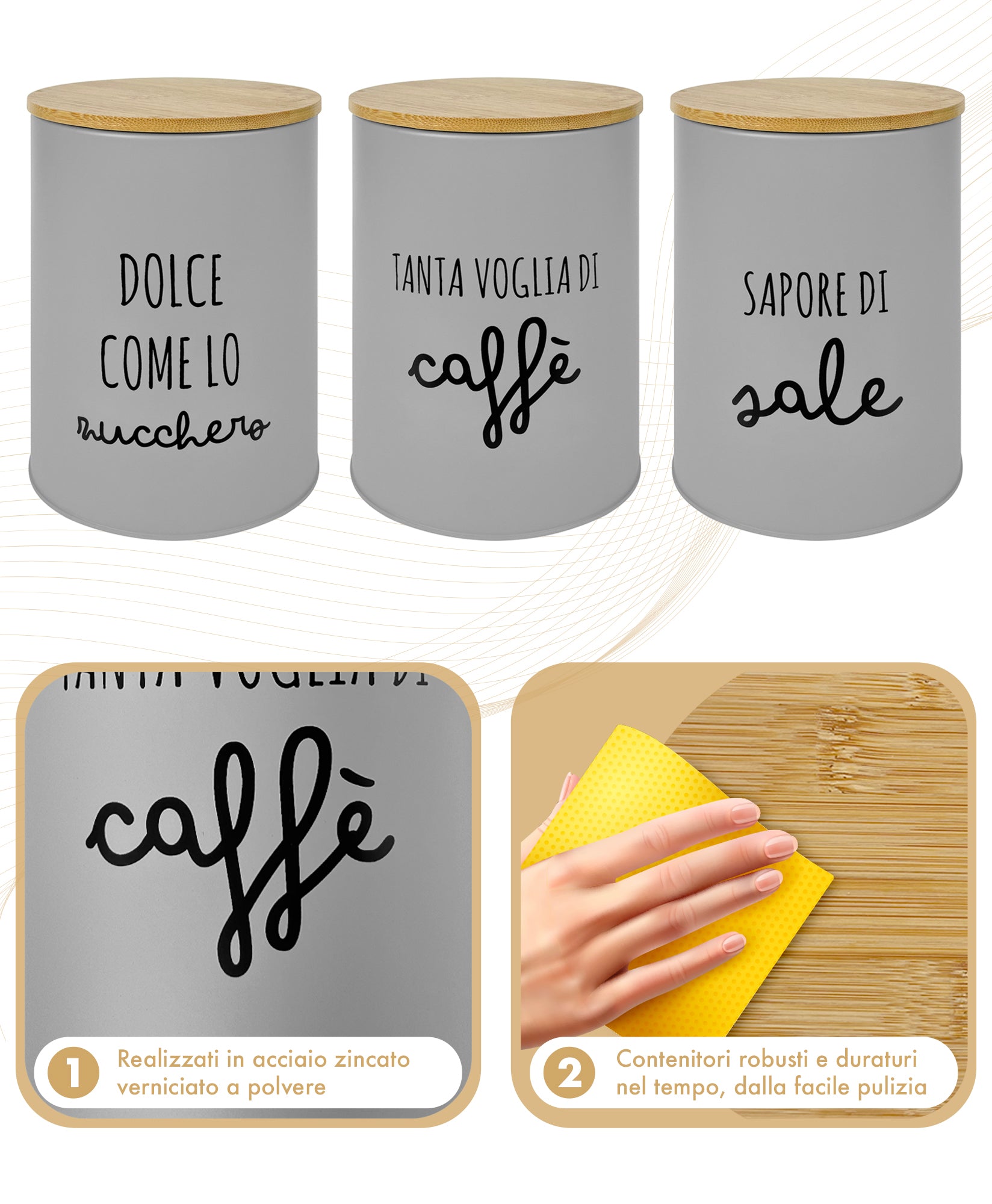 Set 3 Pezzi Barattoli Cucina Contenitori Certificati Contatto Alimentare Contenitore Sale Zucchero Caffè Moderne Scritte Barattolo Con Coperchio Ermetico Legno Bambù Dispenser Organizzatori Alimenti Spezie