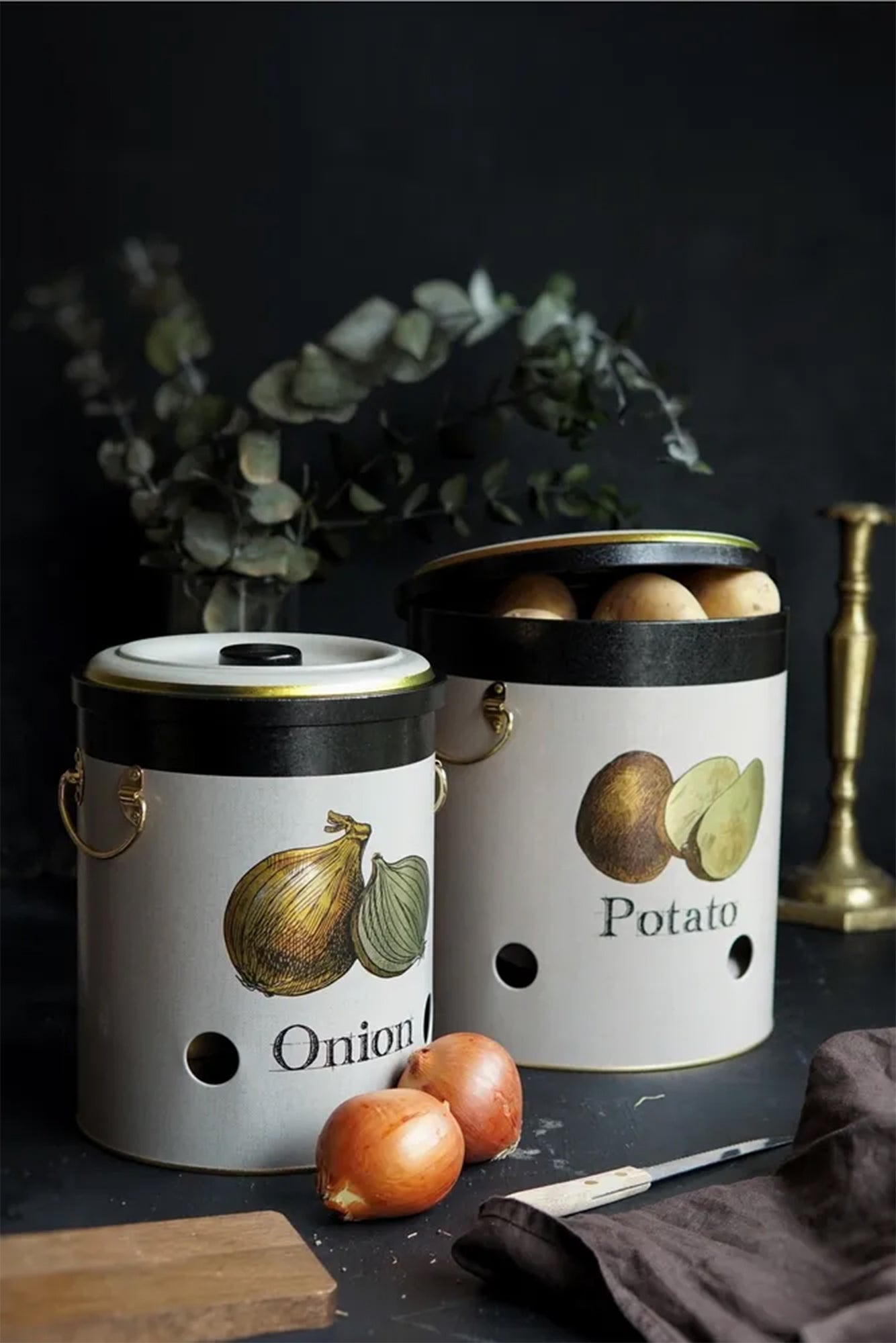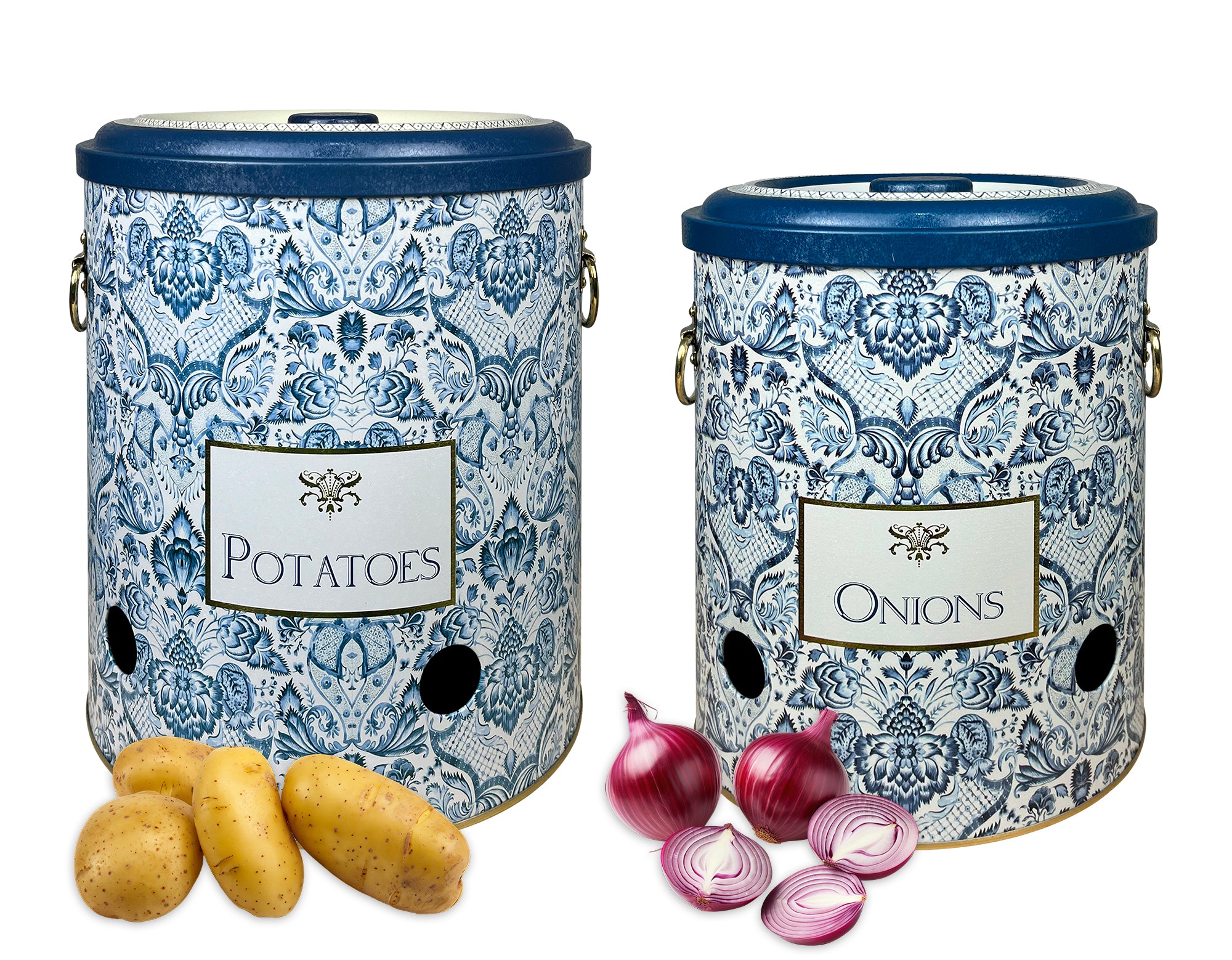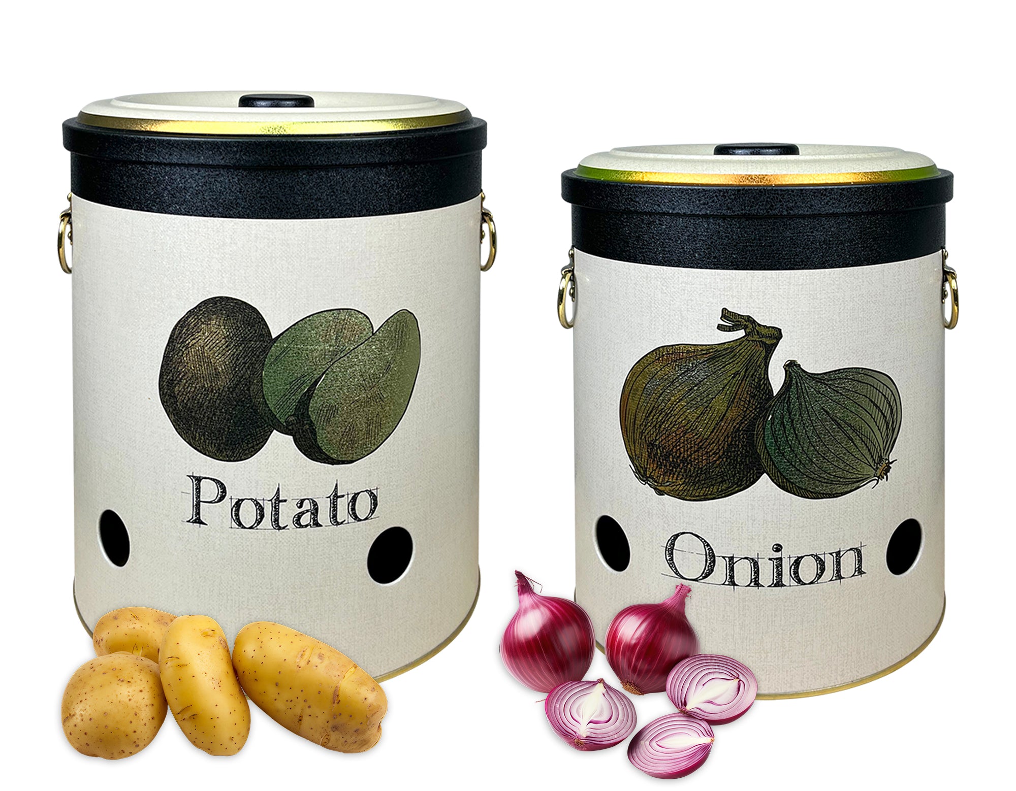 Set 2 Pezzi Contenitore Per Patate Cipolle Aglio Con Coperchio E Prese Aria Salvaspazio Barattoli Cucina Scatola Ventilata Alimenti