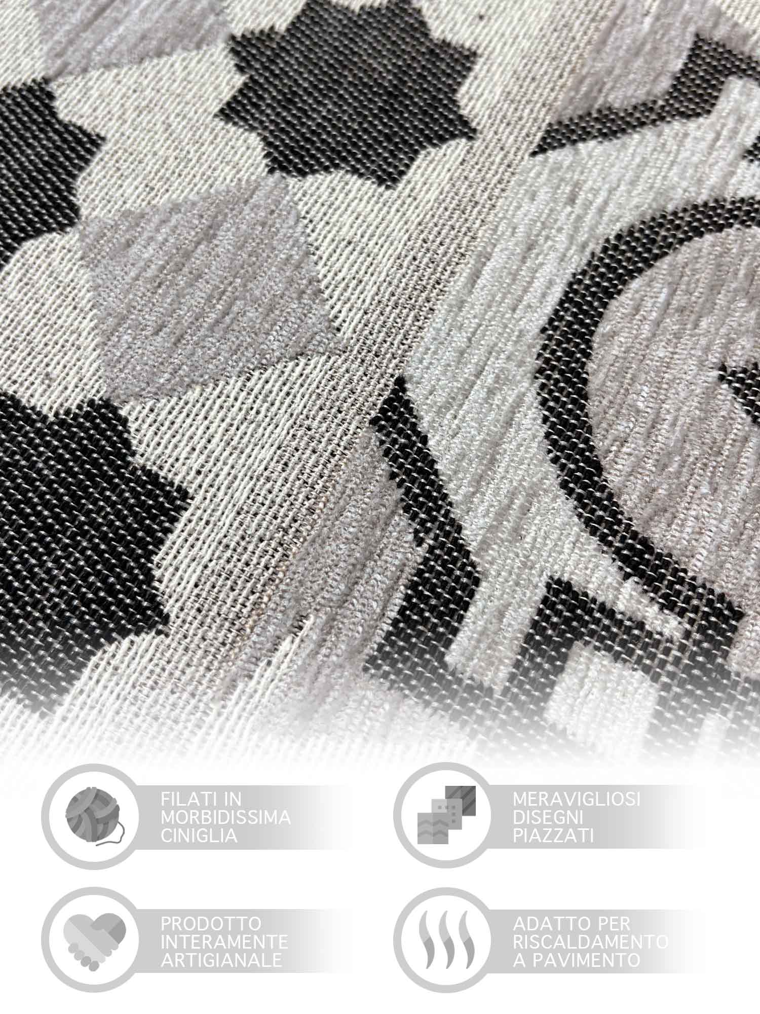Antiscivolo: La Parte posteriore realizzata in Poliestere con lavorazione Antiscivolo rende il tappeto stabile e aderente saldamente a terra su tutte le superfici per evitare il pericoloso effetto slittamento- Consentito anche l'utilizzo anche su pavimenti riscaldati ( Riscaldamento a Pavimento )