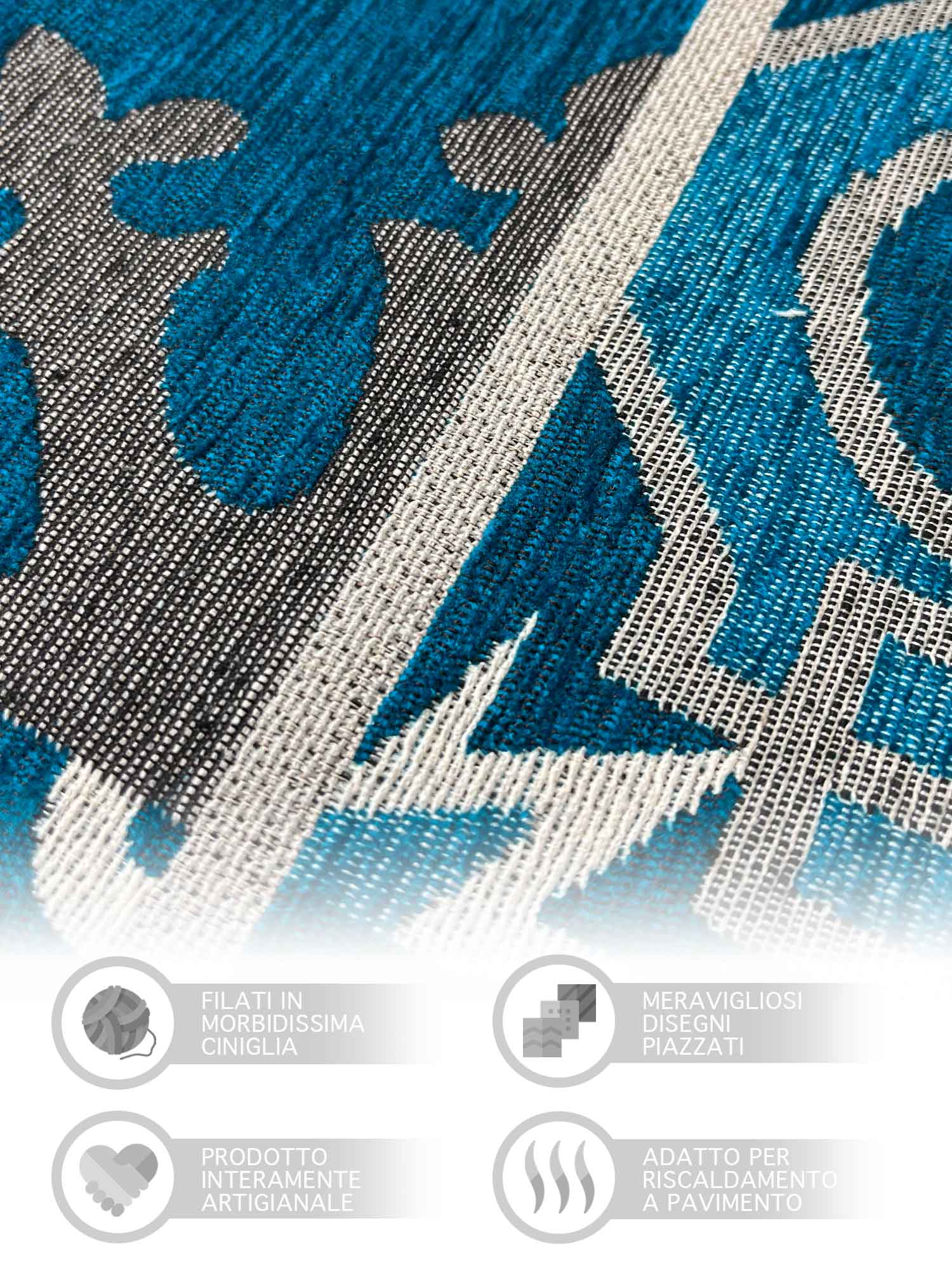 ✔️Antiscivolo: La Parte posteriore realizzata in Poliestere con lavorazione Antiscivolo rende il tappeto stabile e aderente saldamente a terra su tutte le superfici per evitare il pericoloso effetto slittamento- Consentito anche l'utilizzo anche su pavimenti riscaldati ( Riscaldamento a Pavimento )