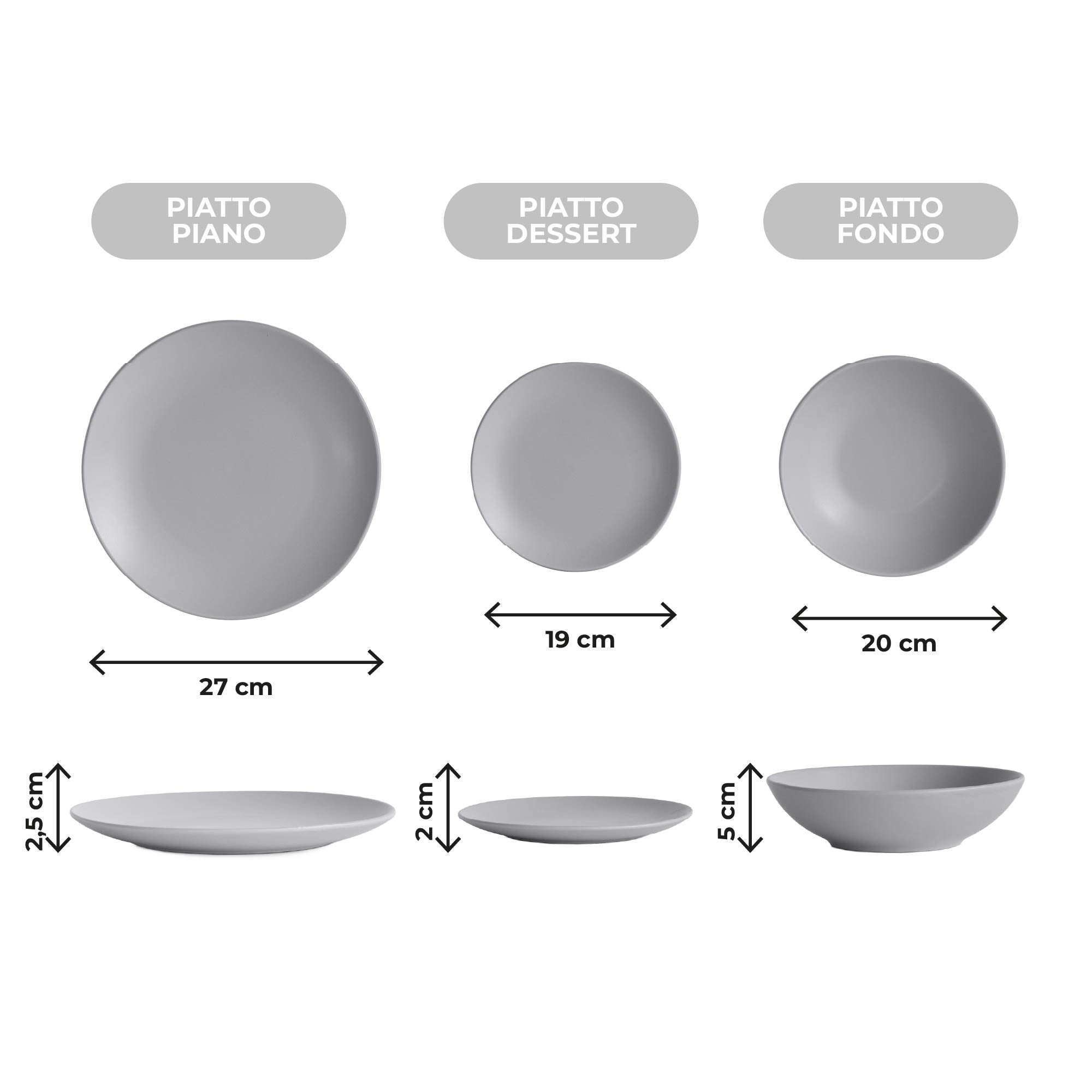 ✔️PRATICITA' QUOTIDIANA : i piatti sono lavabili in lavastoviglie e utilizzabili anche nel microonde, offrendo comodità nelle routine di casa. Disponibilità nelle tre misure—piatti piani da 27 cm, fondi da 20 cm e dessert da 19 cm—permettono un servizio completo e coordinato per antipasti, primi, minestre e dessert.
