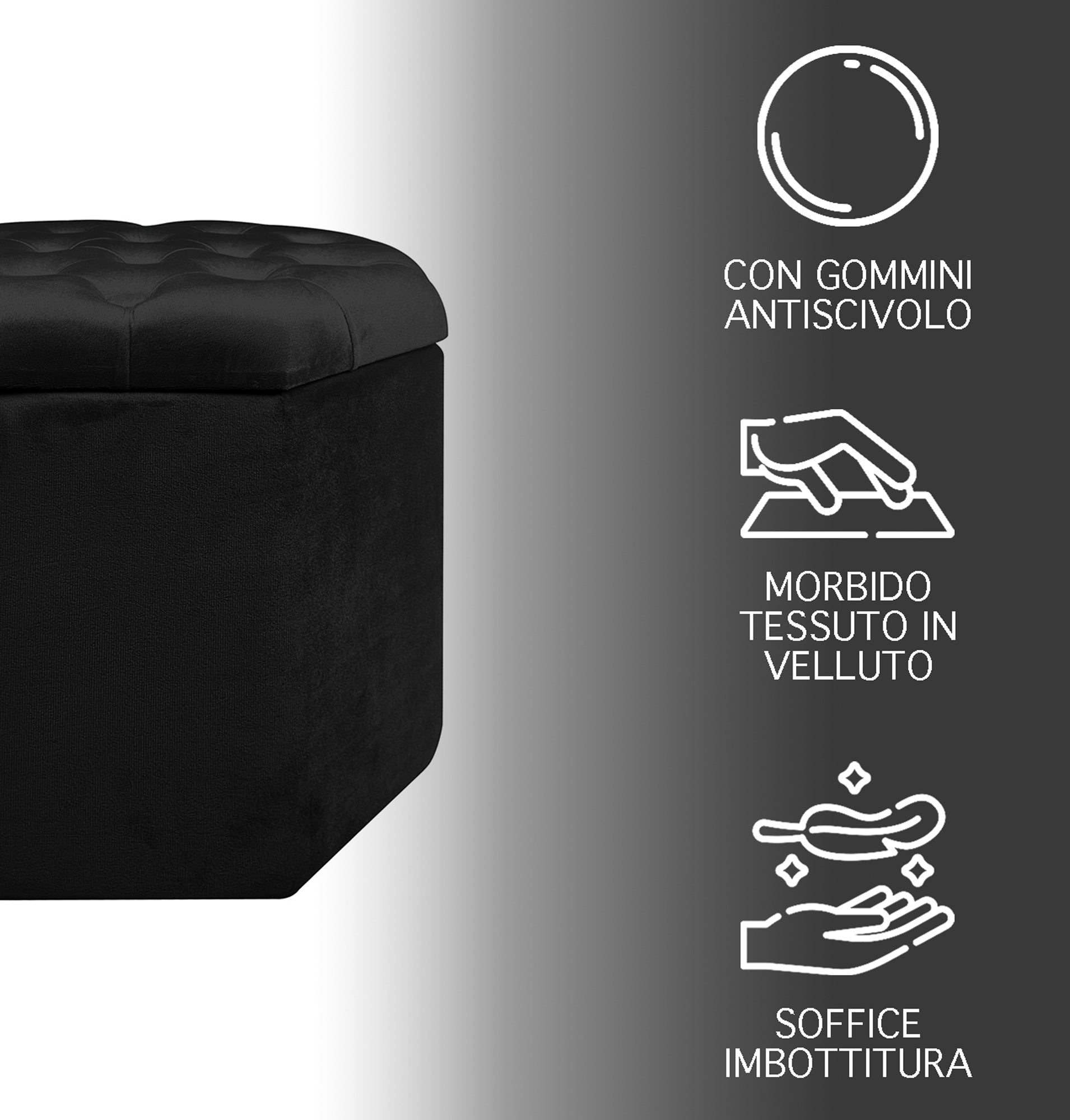 Contenitore: Oltre la bellezza e l'eleganza al suo interno potete riporre oggetti come coperte, cuscini ,ecc una volta riposizionato il coperchio la seduta resta stabile e sicura