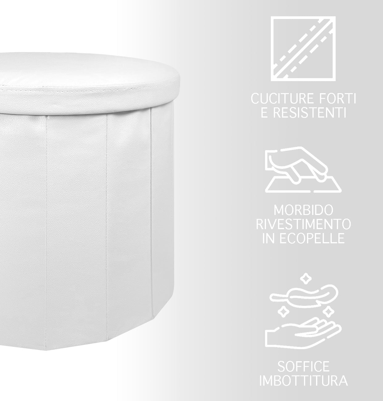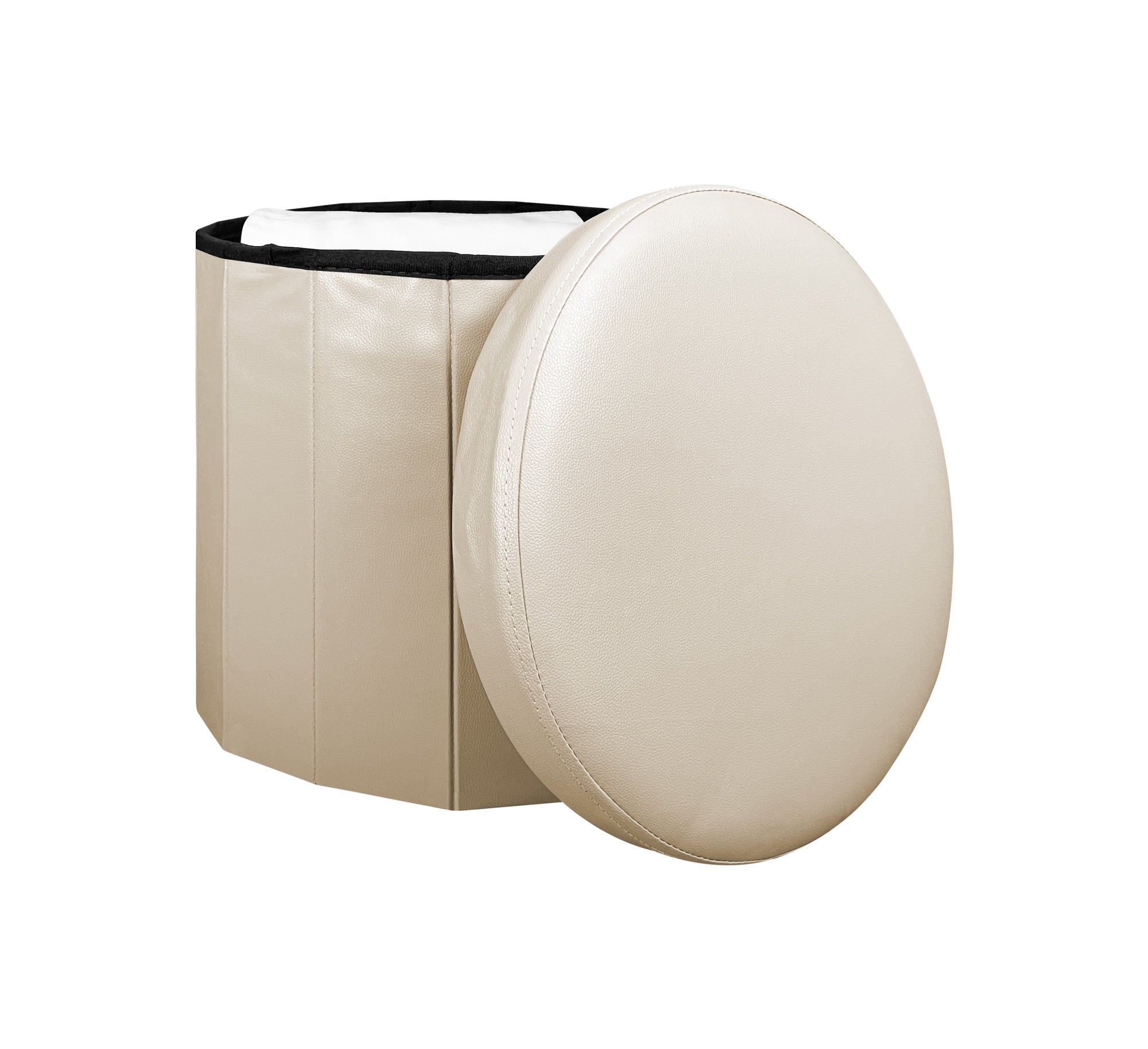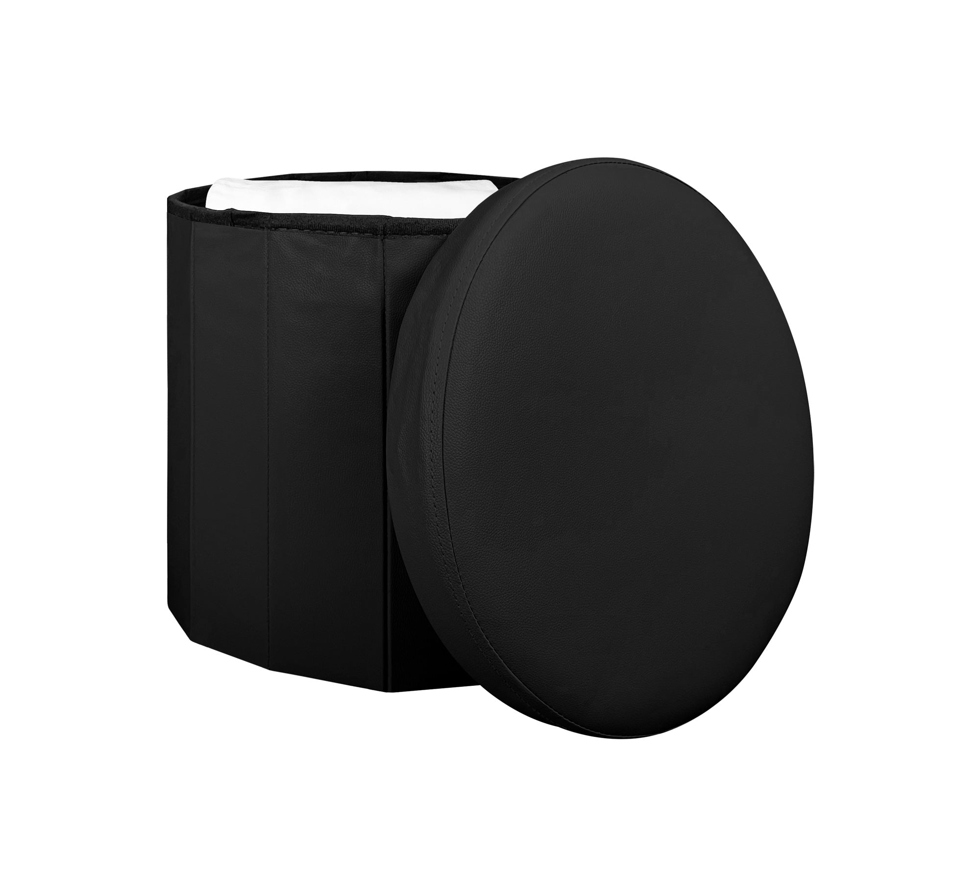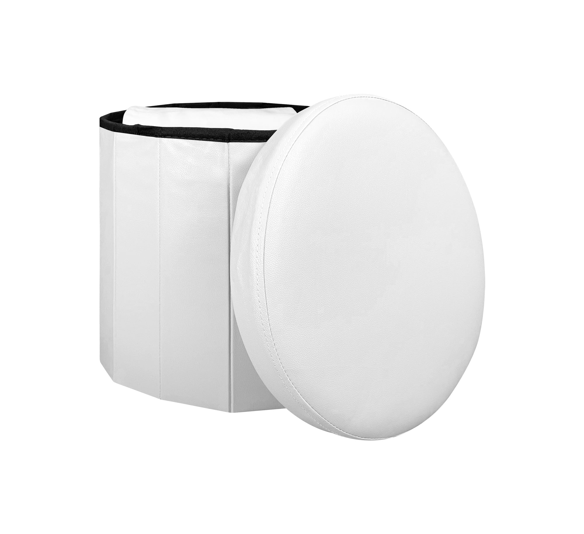 Pouf Contenitore Rotondo Portaoggetti In Ecopelle Poggiapiedi Salotto Sgabello Pouff Camera Design Con Coperchio