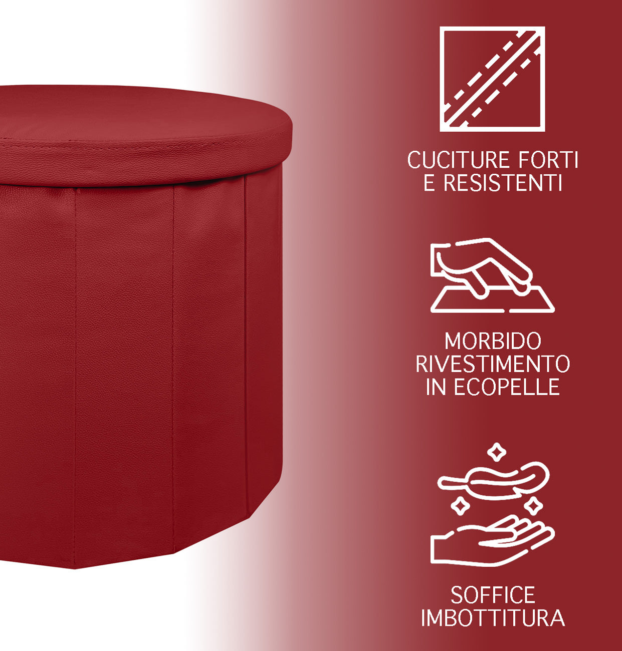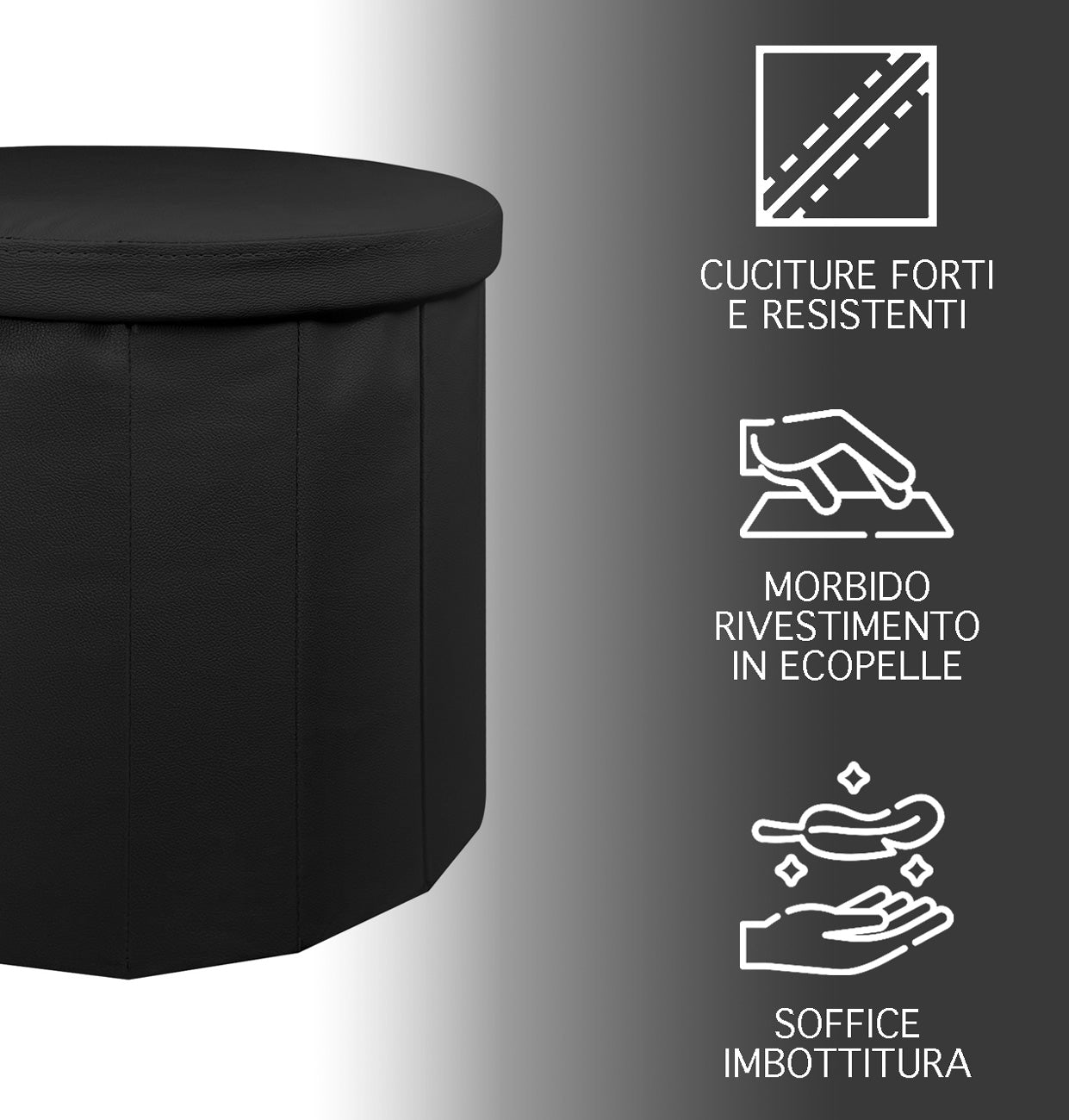 Contenitore: Oltre la bellezza e l'eleganza al suo interno potete riporre oggetti come coperte, cuscini ,ecc una volta riposizionato il coperchio la seduta resta stabile e sicura