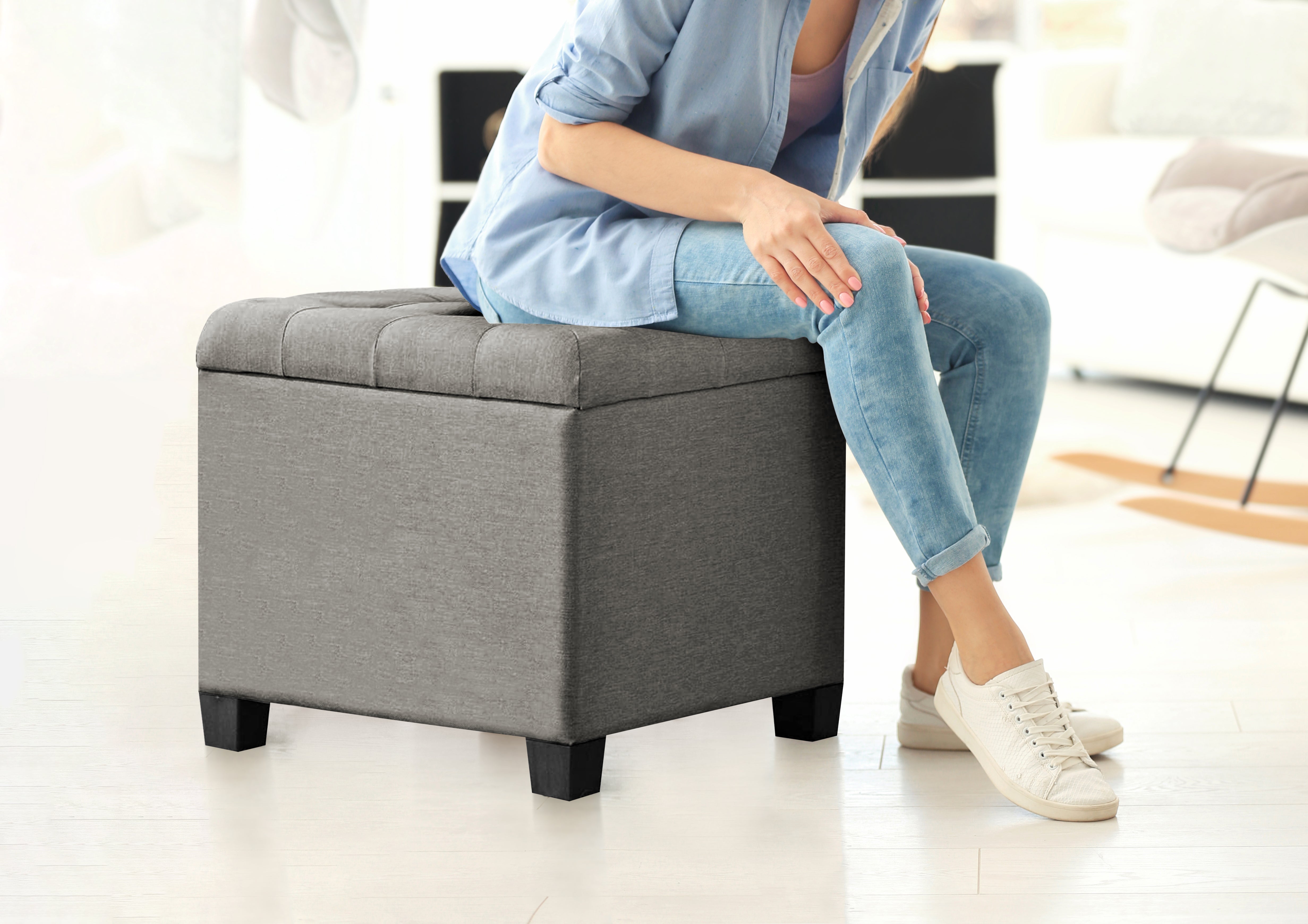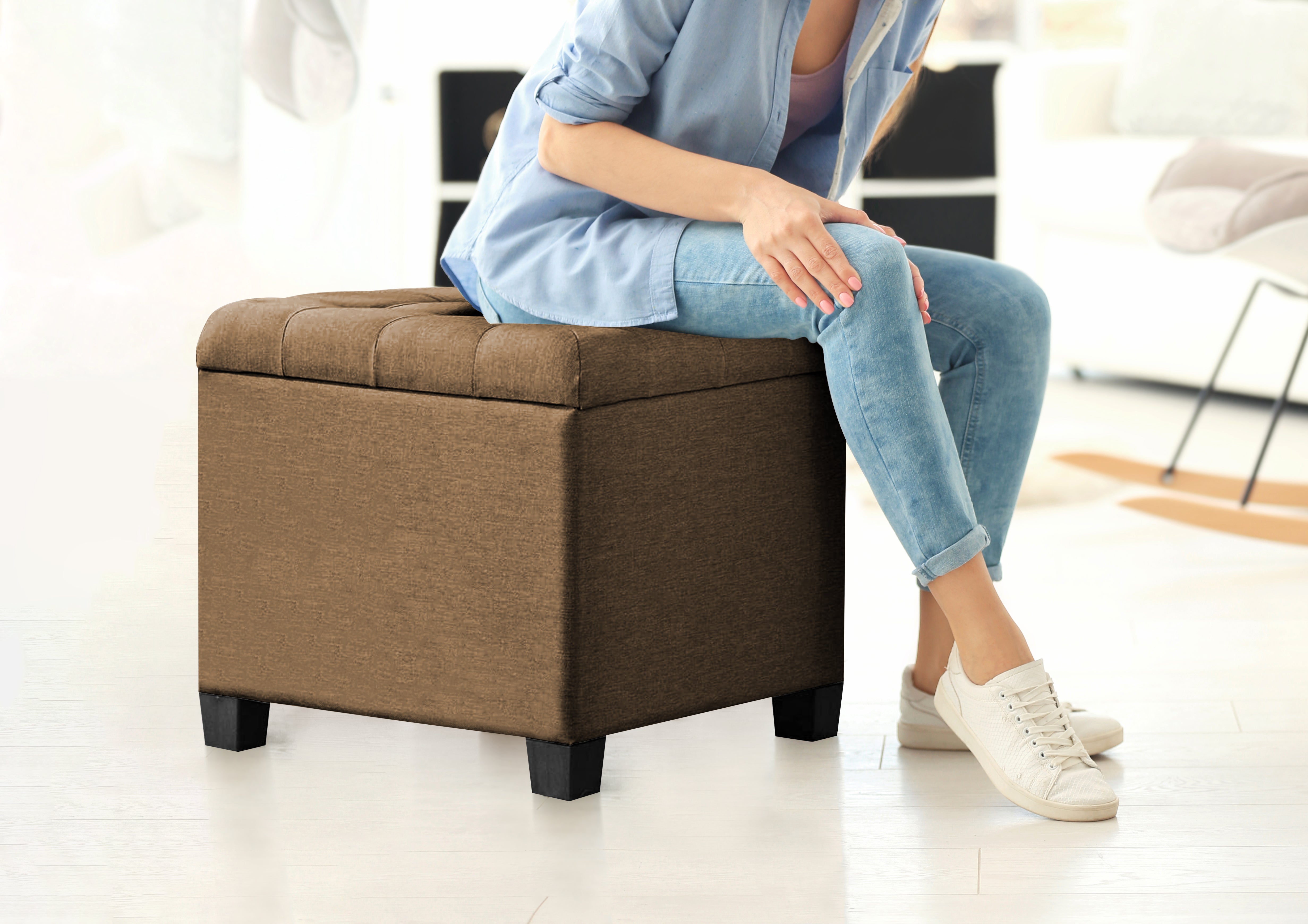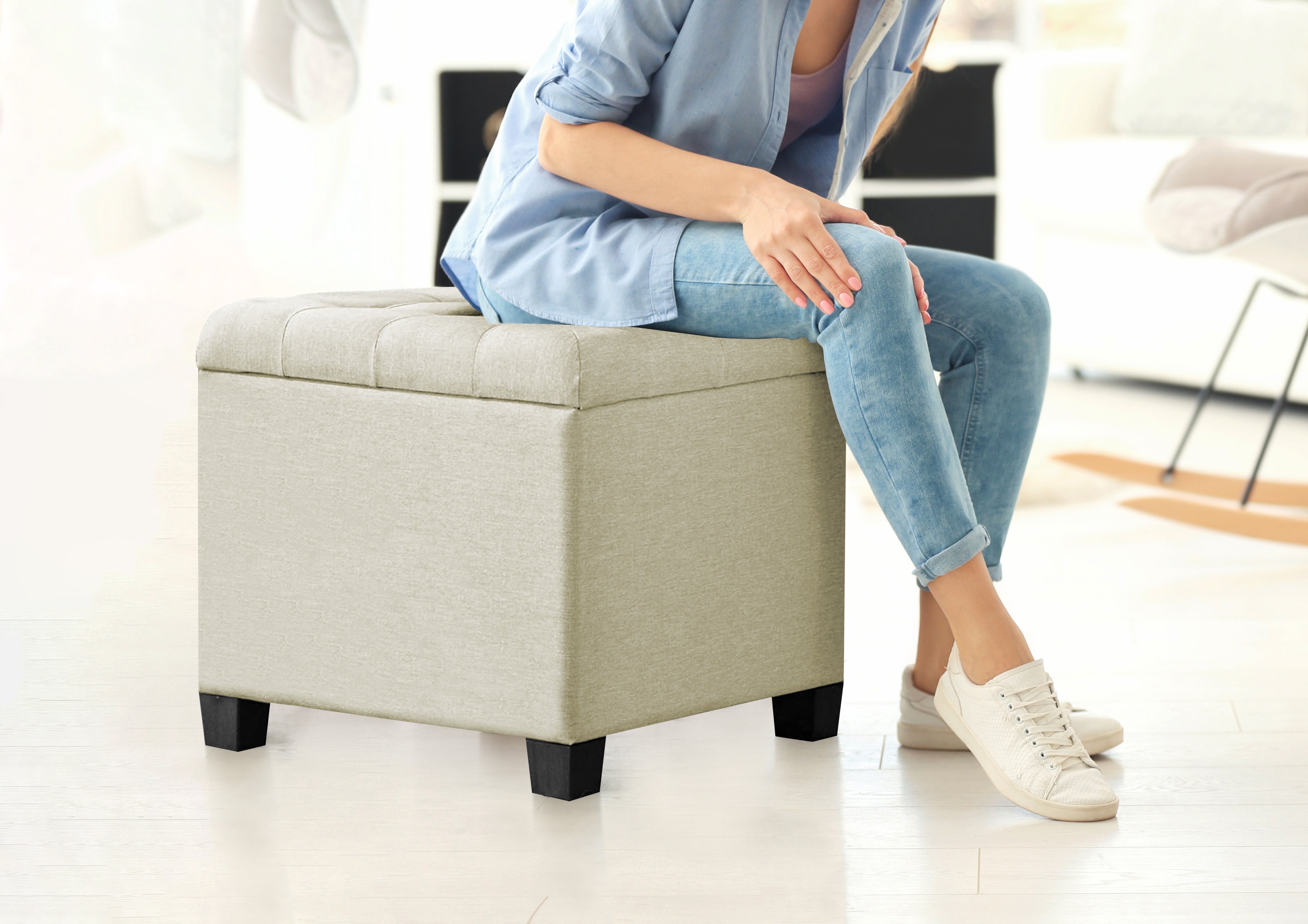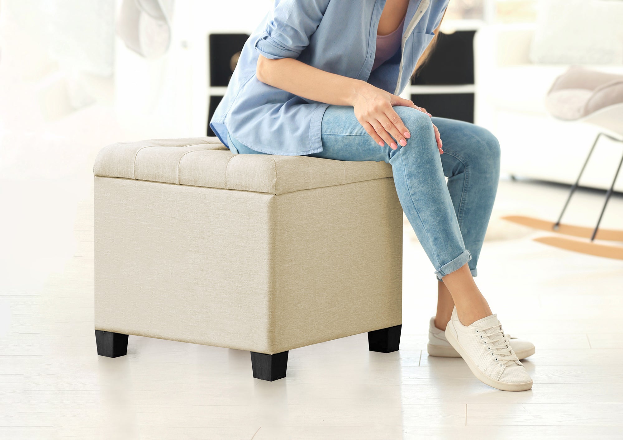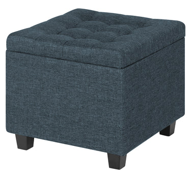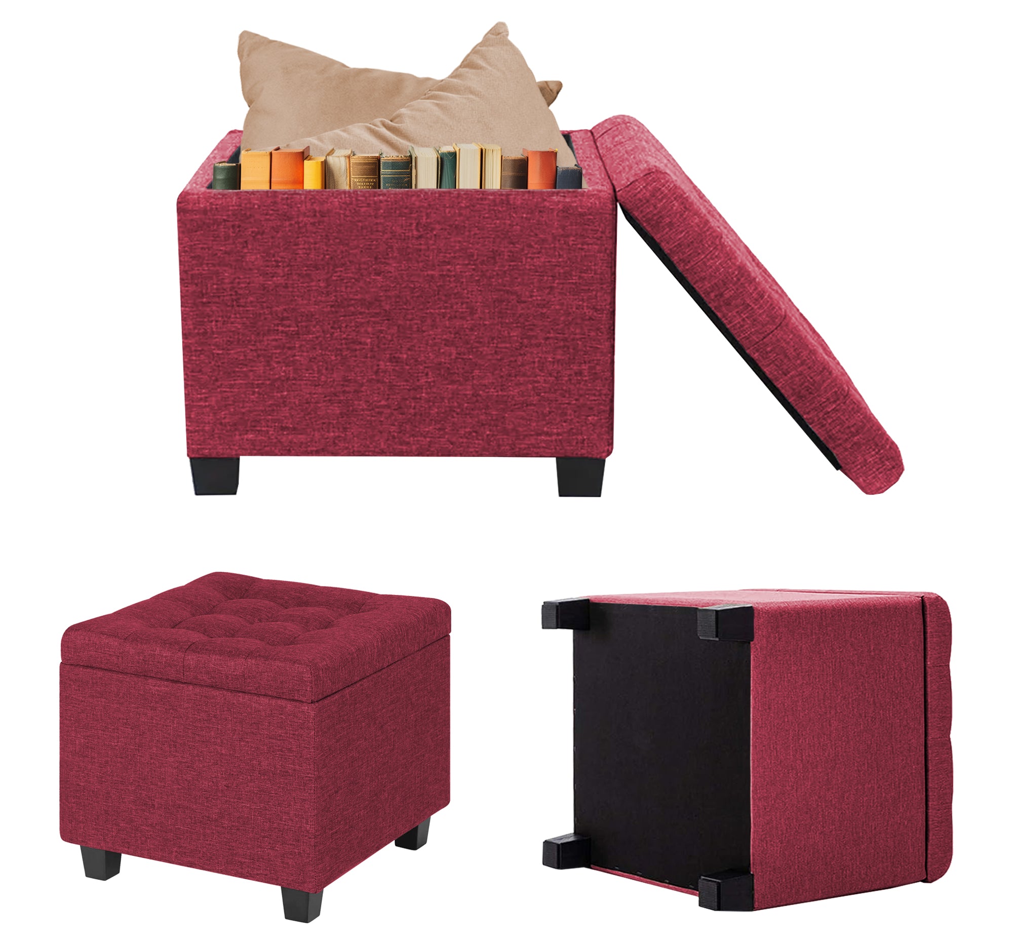 Pouf Poggiapiedi Cubico XXL Con Contenitore Integrato Cubo Imbottito Lino 45Cm Piedini legno Panca Moderna Cassapanca