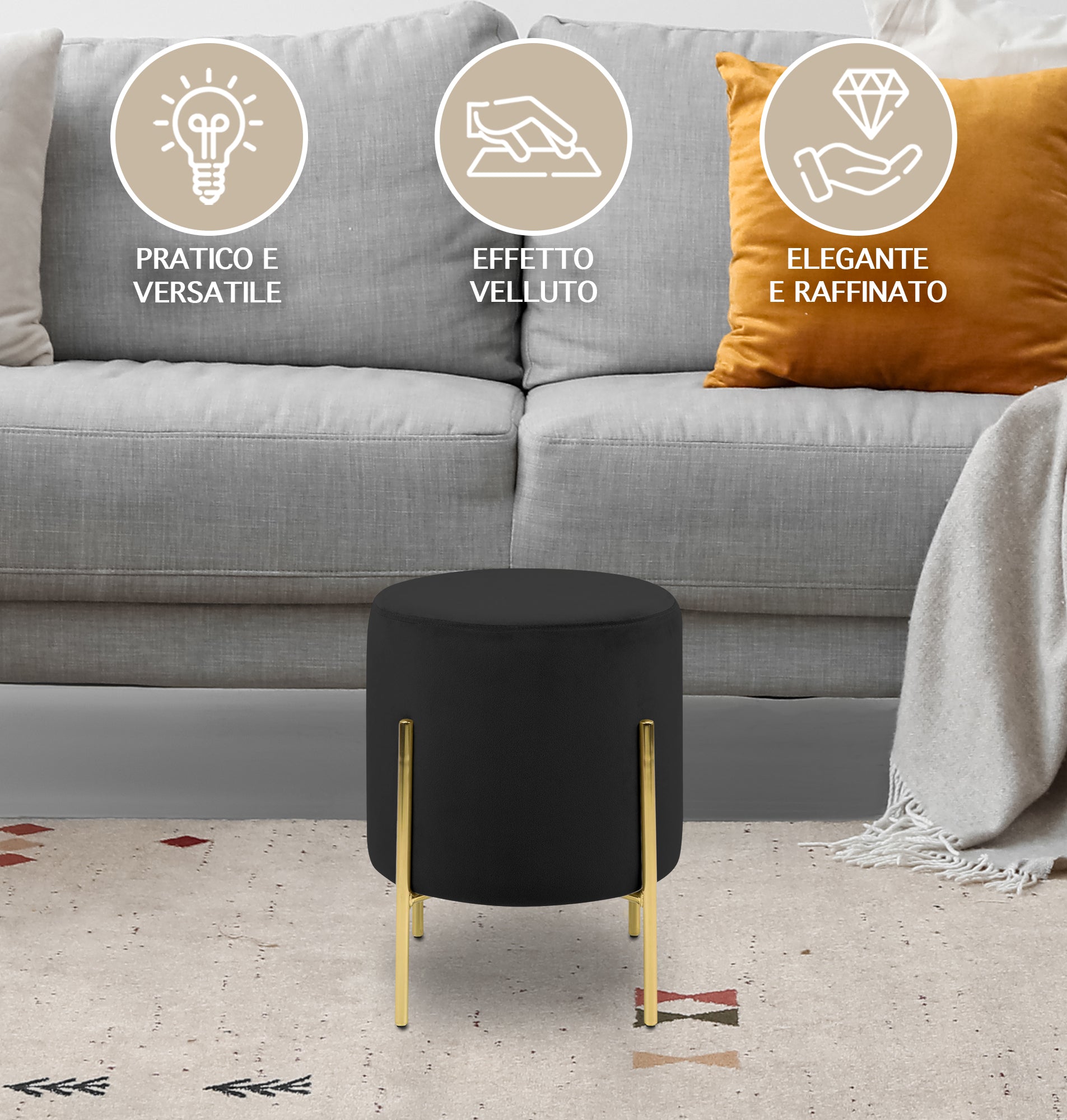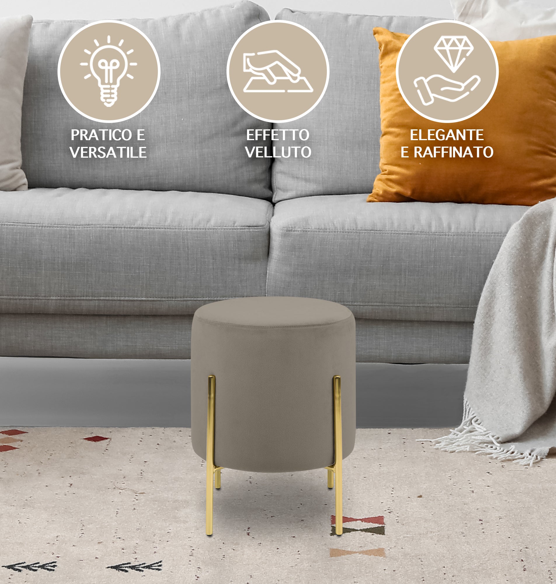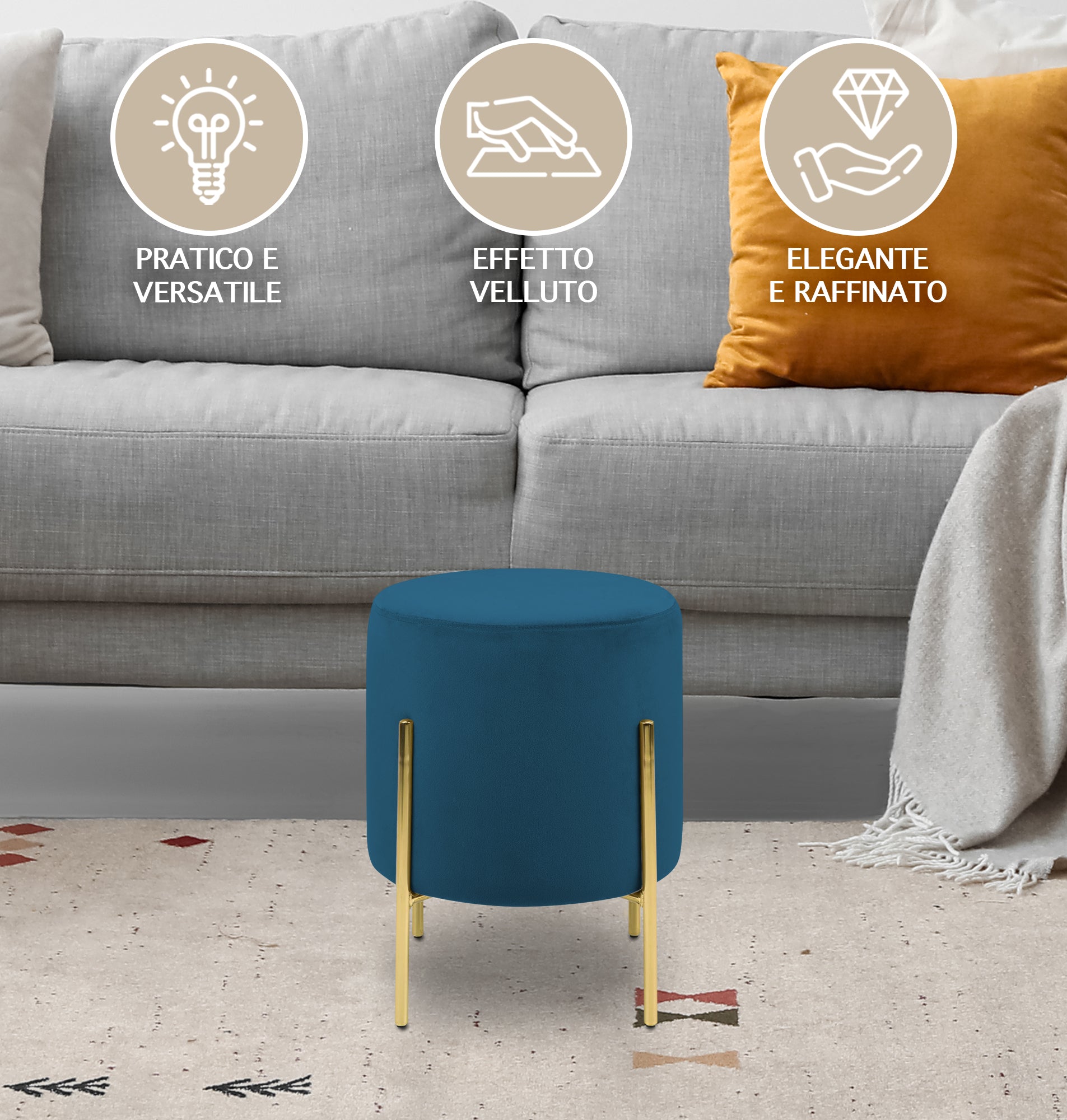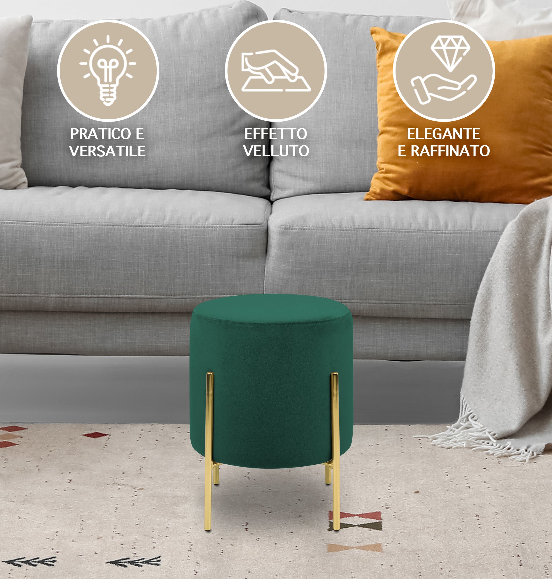 ✔️Unico: Con il suo rivestimento in velluto e le gambe in metallo dorato, questo pouf rotondo è un oggetto pratico e decorativo a tutti gli effetti velluto e metallo color oro, simboli di lusso e raffinatezza, sono ideali per rendere il tuo interno unico ed invidiabile
