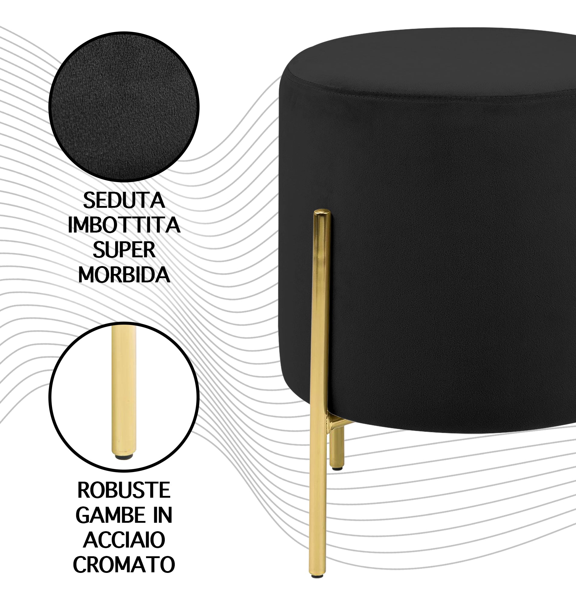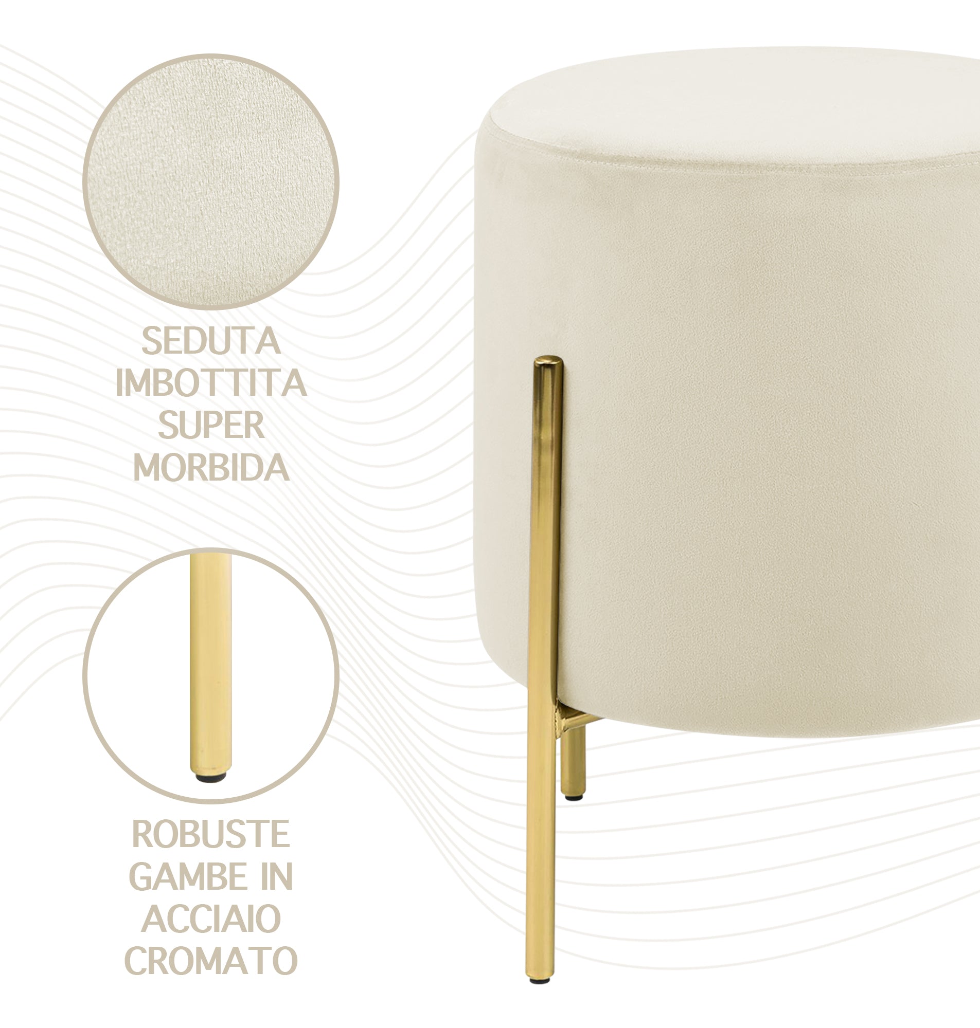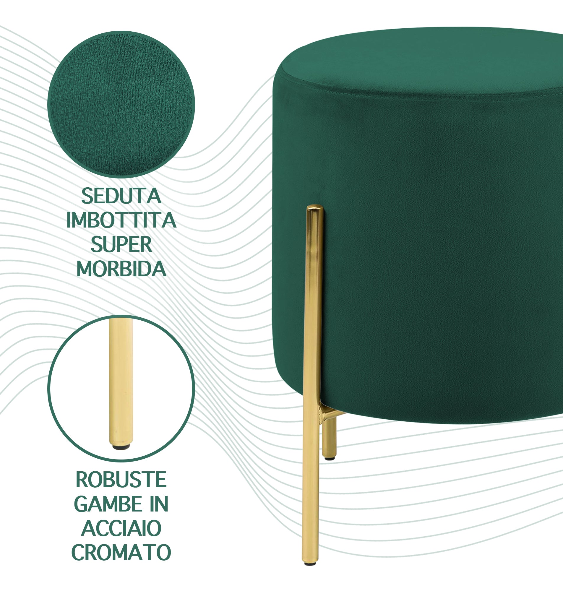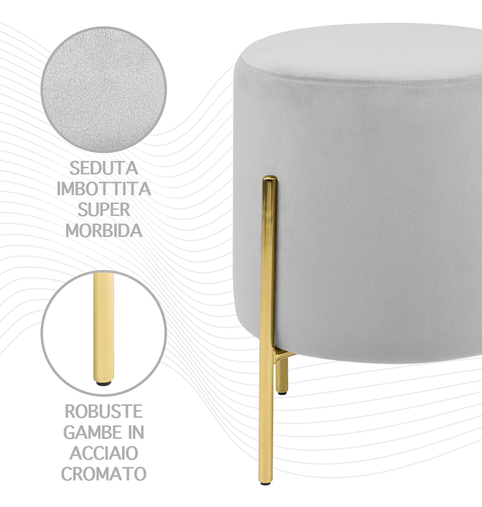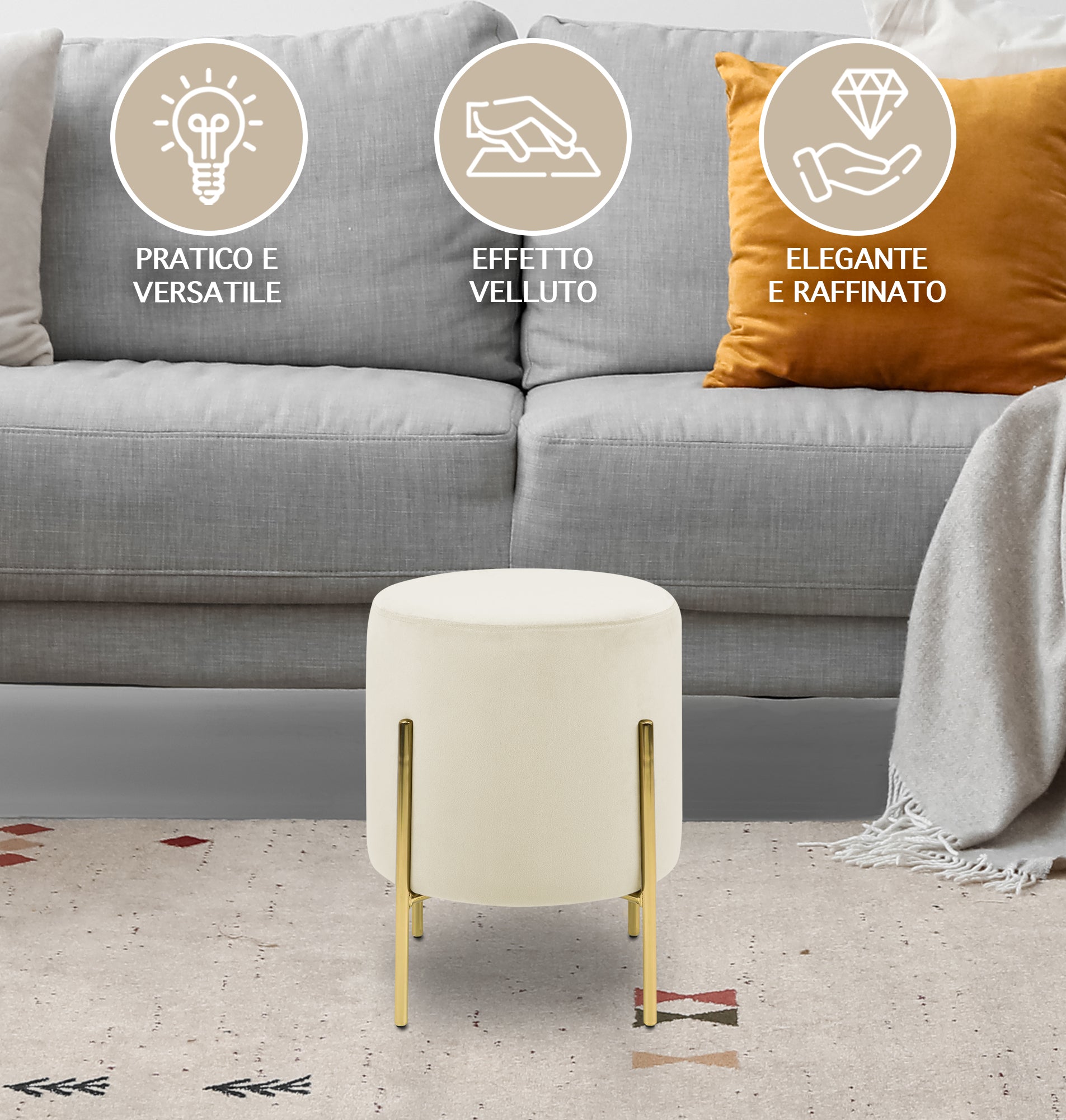 ✔️Unico: Con il suo rivestimento in velluto e le gambe in metallo dorato, questo pouf rotondo è un oggetto pratico e decorativo a tutti gli effetti velluto e metallo color oro, simboli di lusso e raffinatezza, sono ideali per rendere il tuo interno unico ed invidiabile