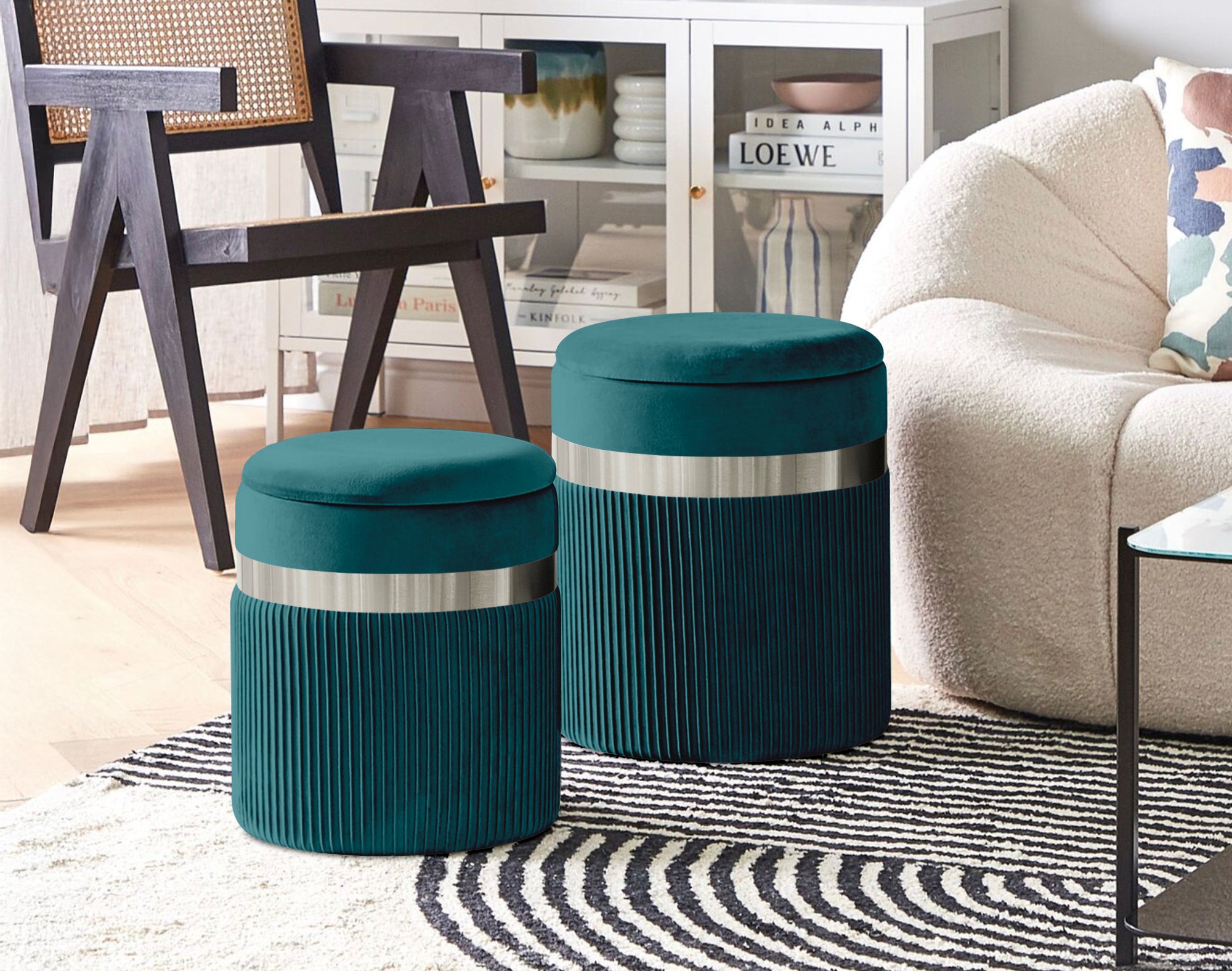 Set Di 2 Pouf Contenitori In Velluto Design Moderno Poggiapiedi,Sgabello Tondo con Coperchio Rimovibile e Seduta Imbottita Alta Densità Con Fascia In Metallo Contenitore Capiente Storage Box