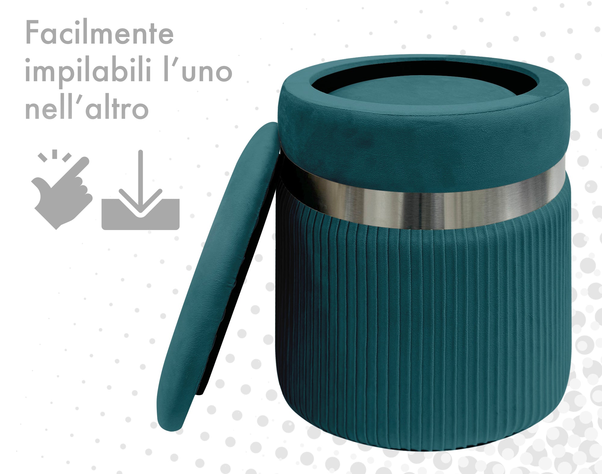 ✔️Qualità: Interamente realizzati selezionando materiali di qualità in morbido tessuto di velluto che dona una piacevole luminosità all'ambiente. La fascia in metallo contribuisce alla stabilità, alla durabilità e alla sicurezza dell utilizzatore il coperchio rimovibile ad alta densità garantisce una seduta comoda e sicura.
